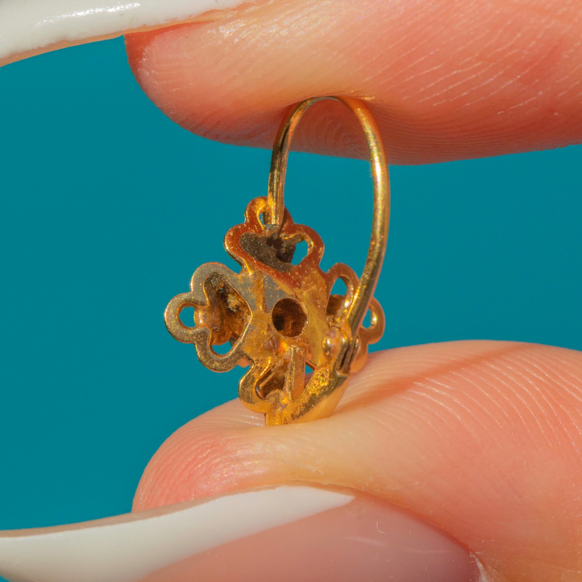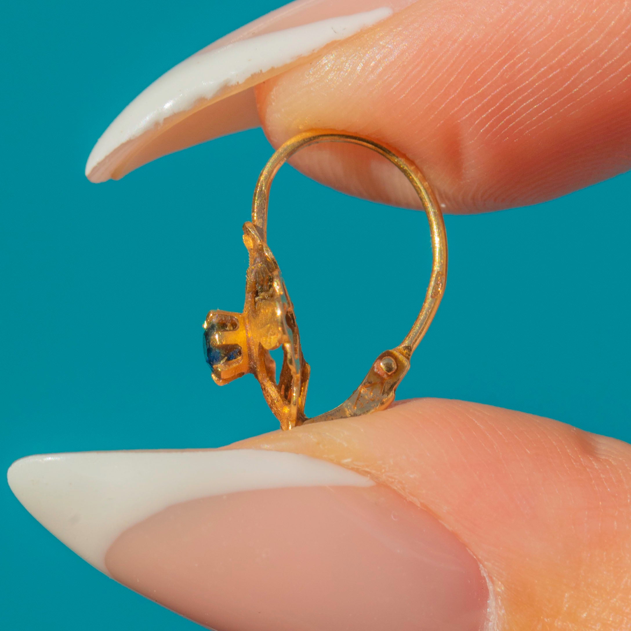 Petite French 18ct Gold Sapphire Lever-Back Flower Earrings