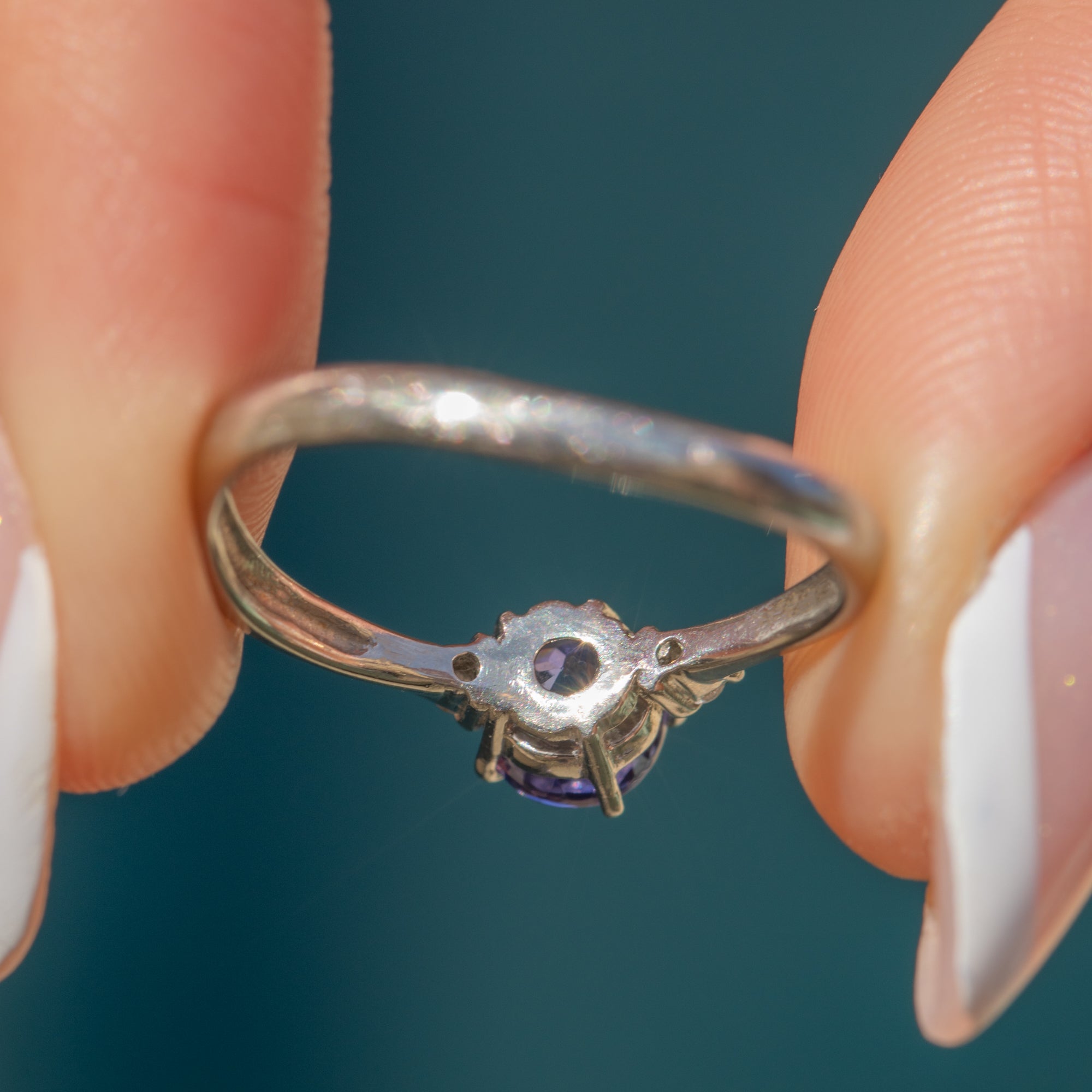 Great for stacking or worn as a stand-alone piece, this vintage Platinum Tanzanite ring is a must-have!