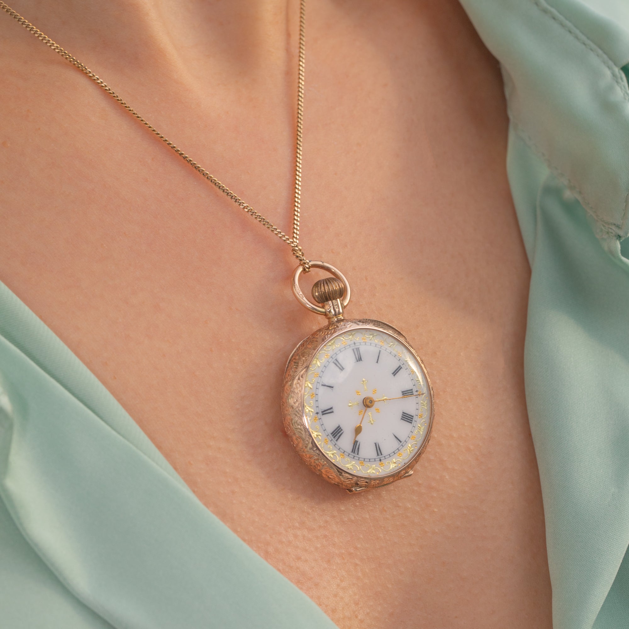 Worn on a chain as a pendant or enjoyed as part of a timepiece collection, it’s a wonderfully decorative object that embodies the elegance of the 1910s.