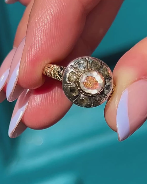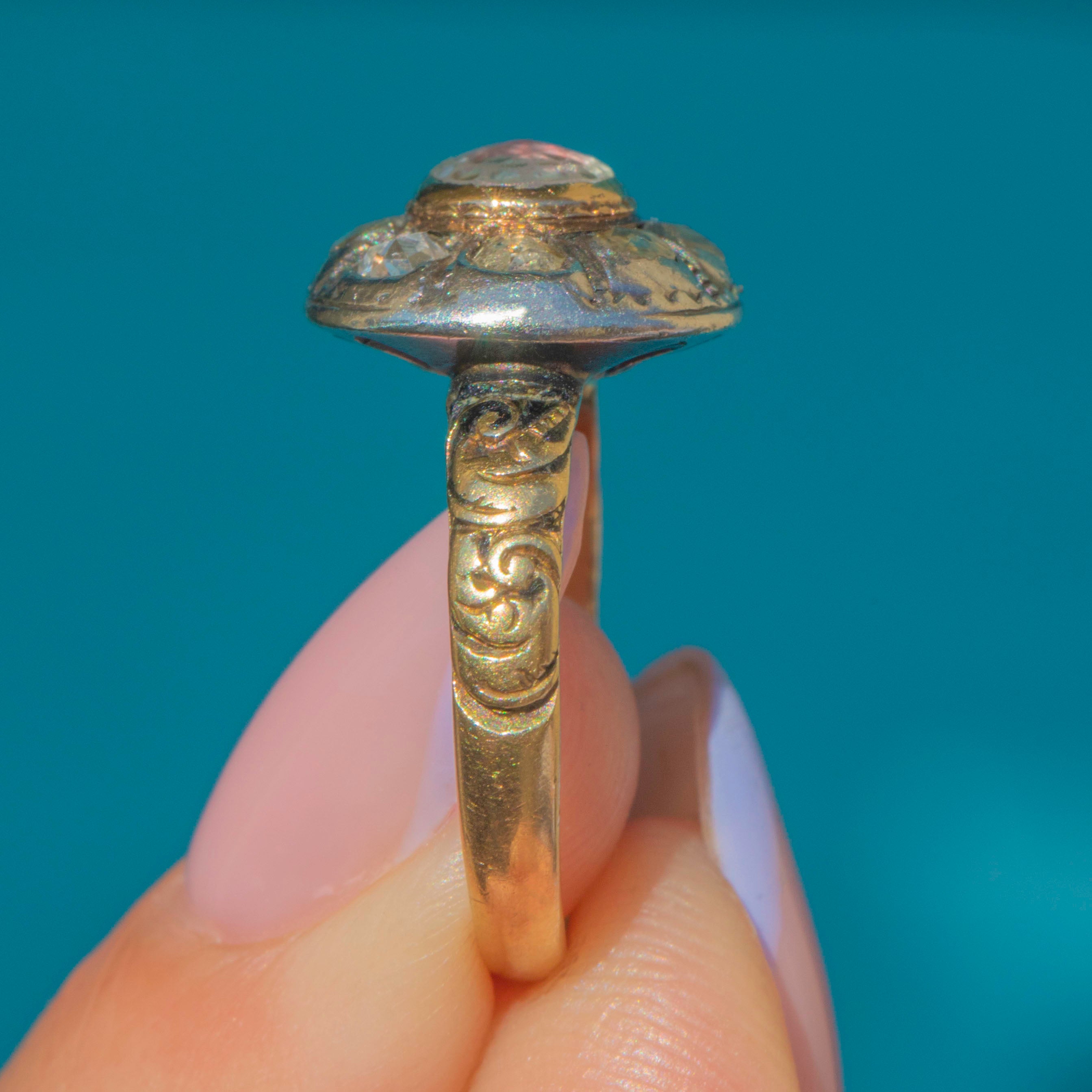 Rare 17th Century 18ct Gold Stuart Crystal Diamond Cluster Iberian Ring