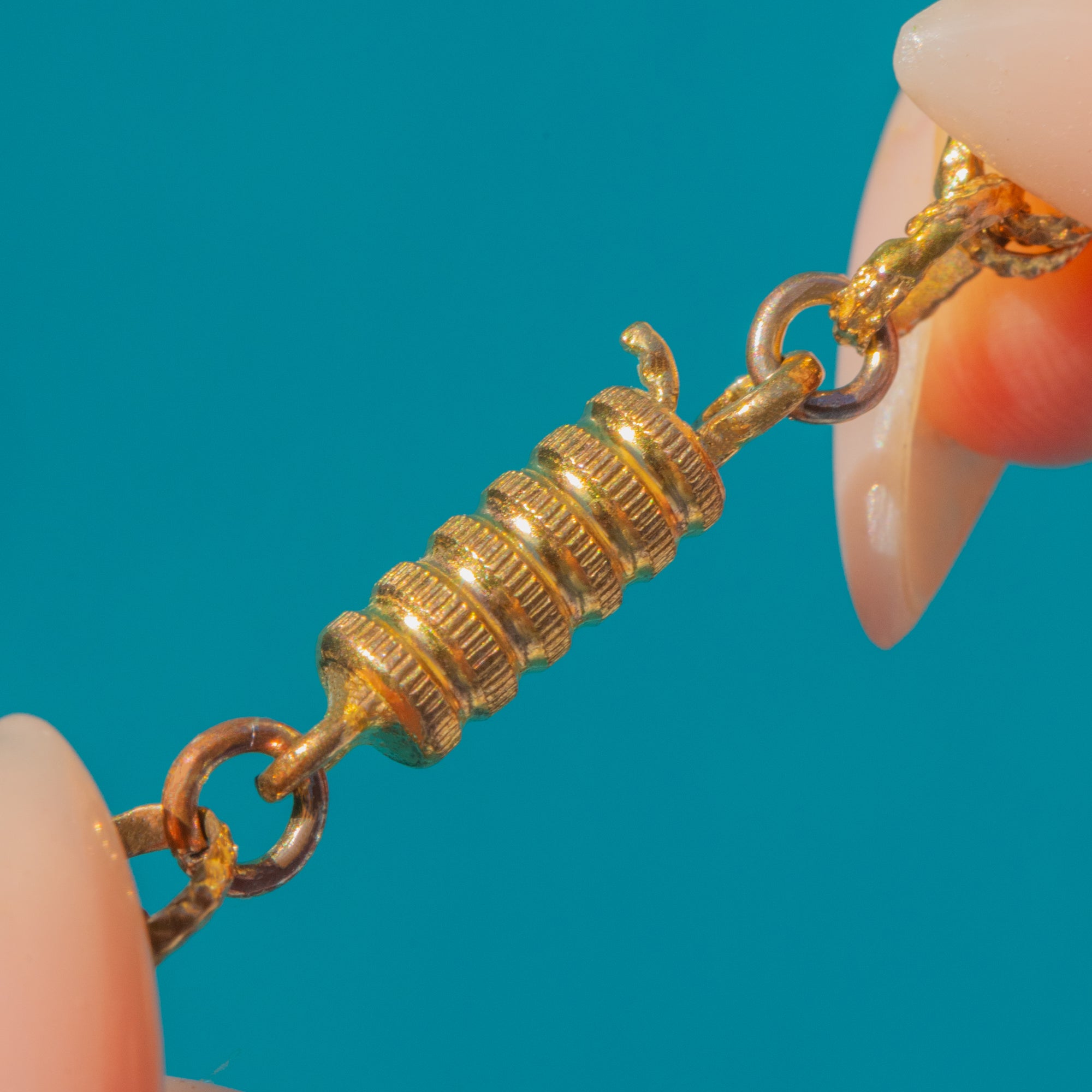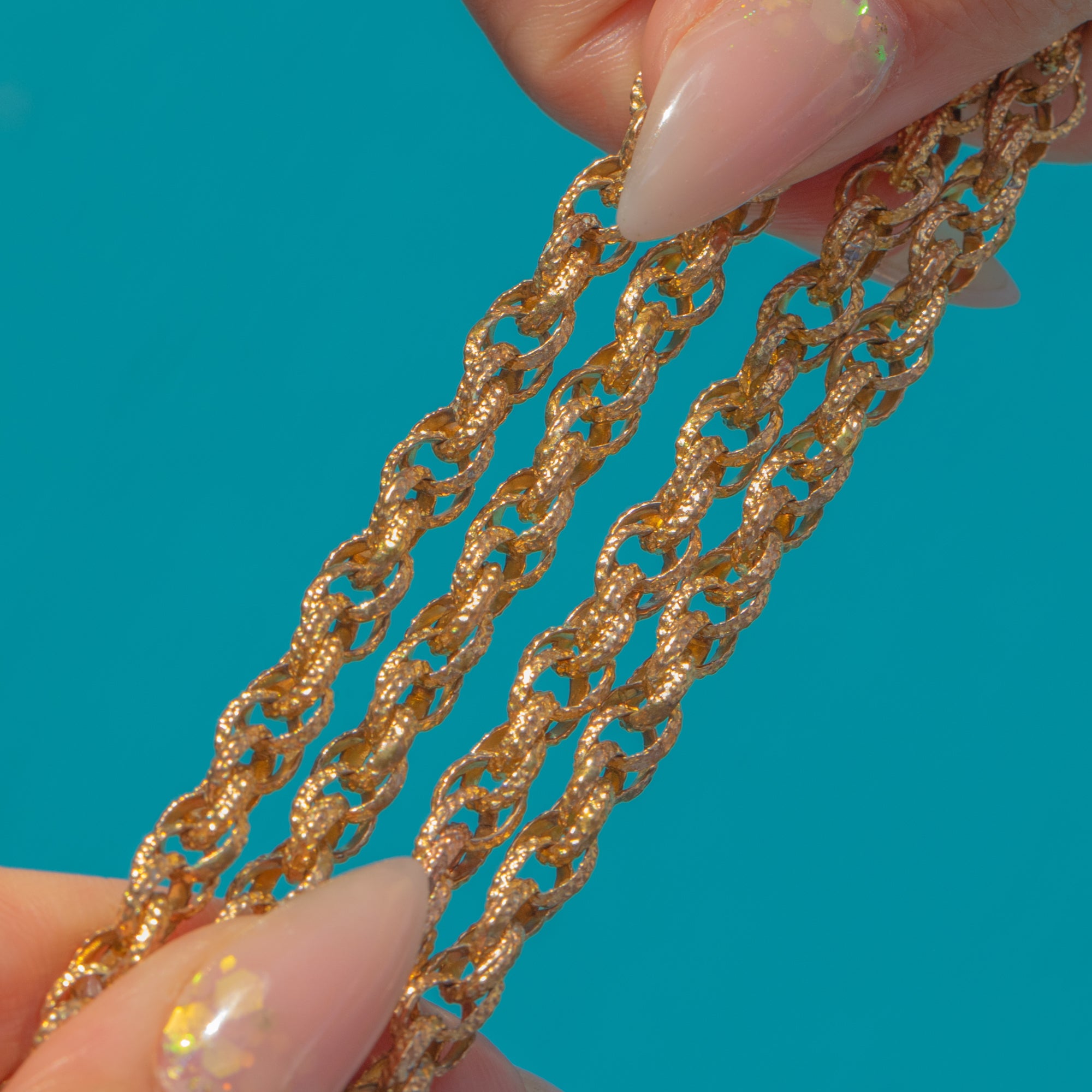 The rope-like textured links are wonderfully tactile, catching the light with every movement. At 43.1g, it has a luxurious weight, and the subtle signs of age add to its authenticity and antique charm. A versatile and collectable piece of Georgian jewellery history.