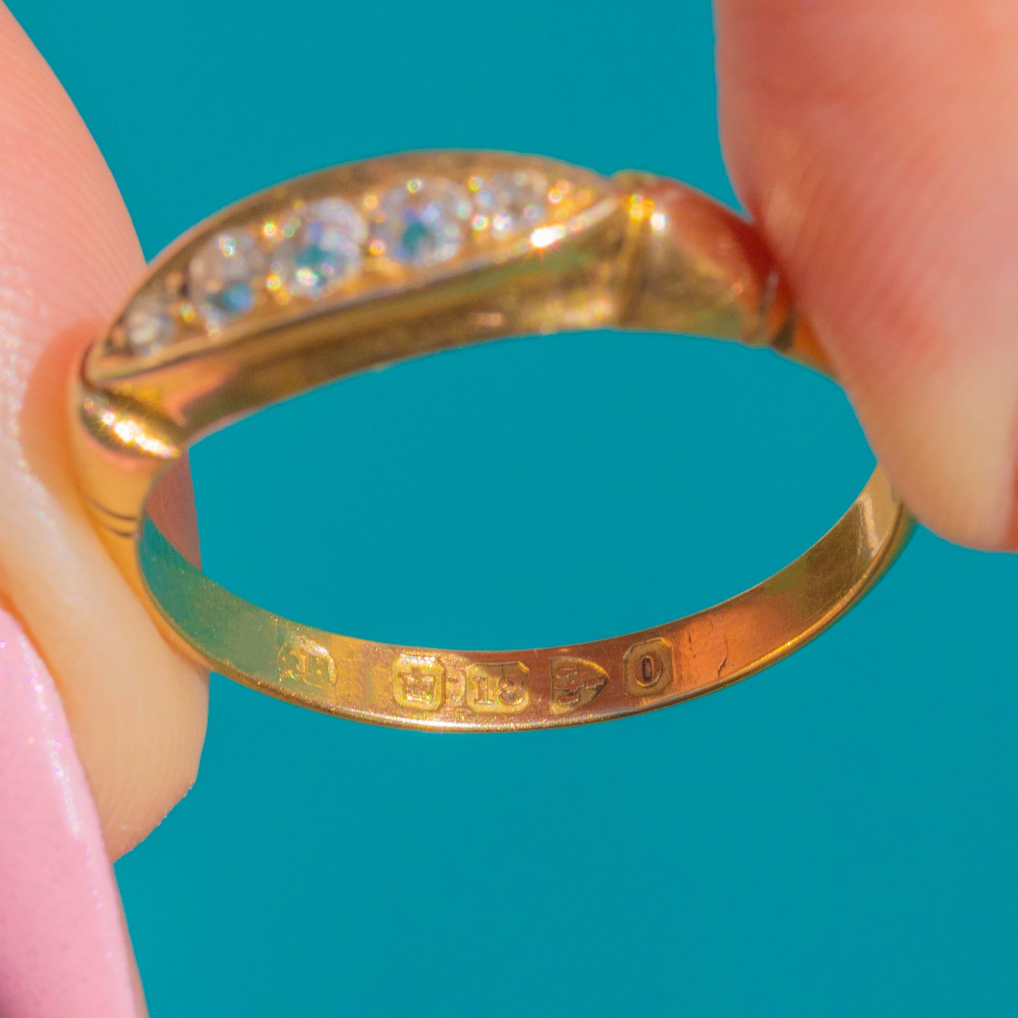 18ct Gold Diamond Five Stone Boat Ring Hallmarked c.1897 Chester