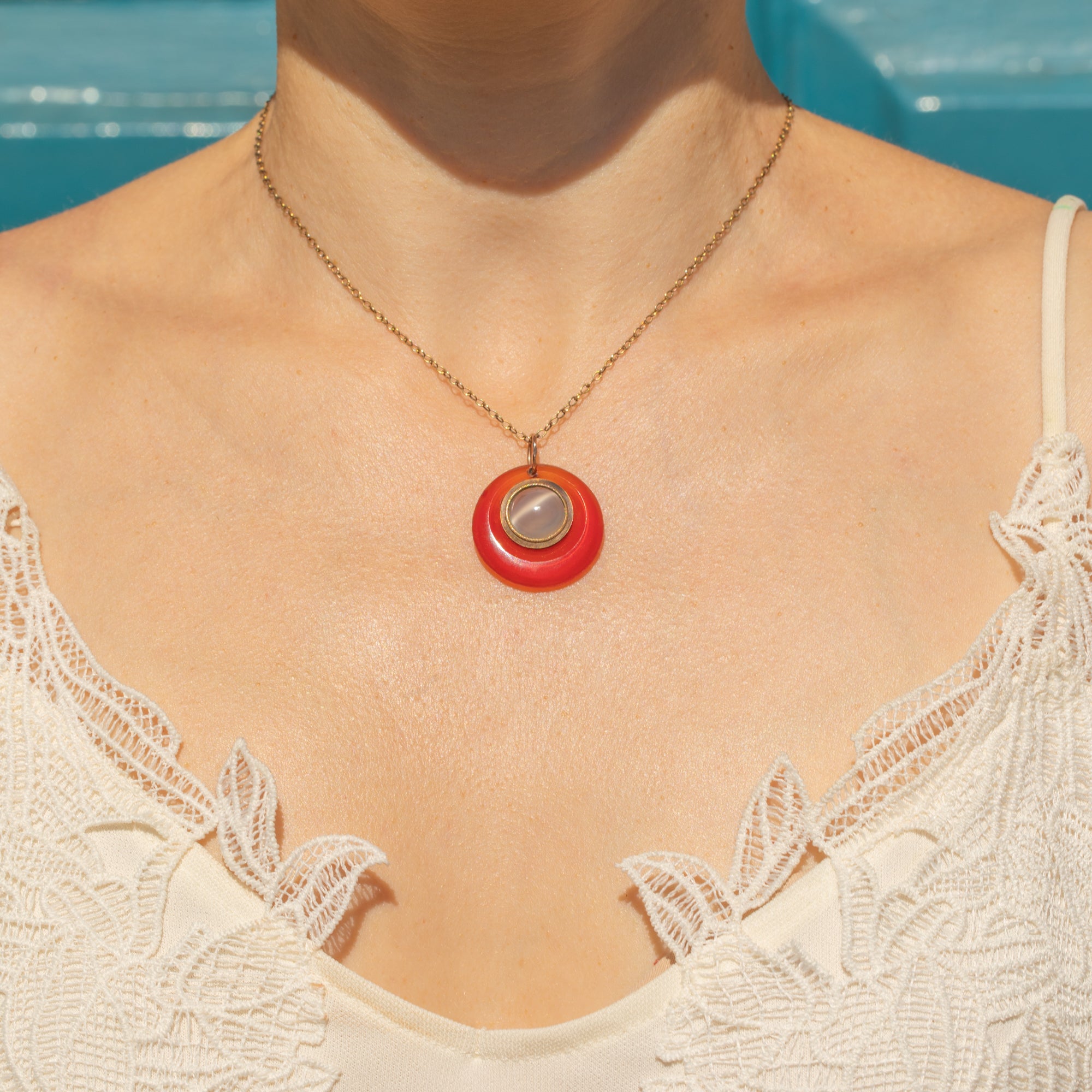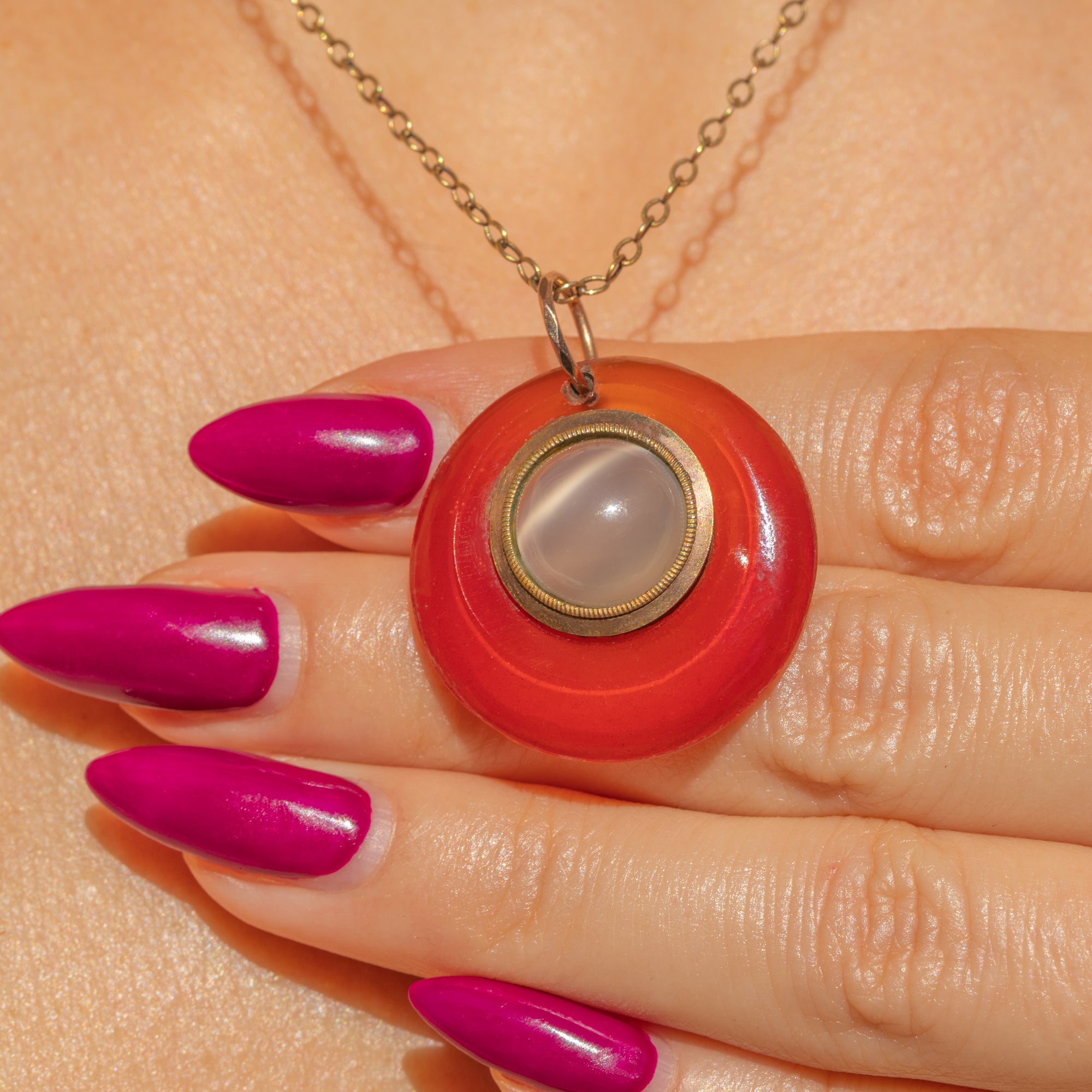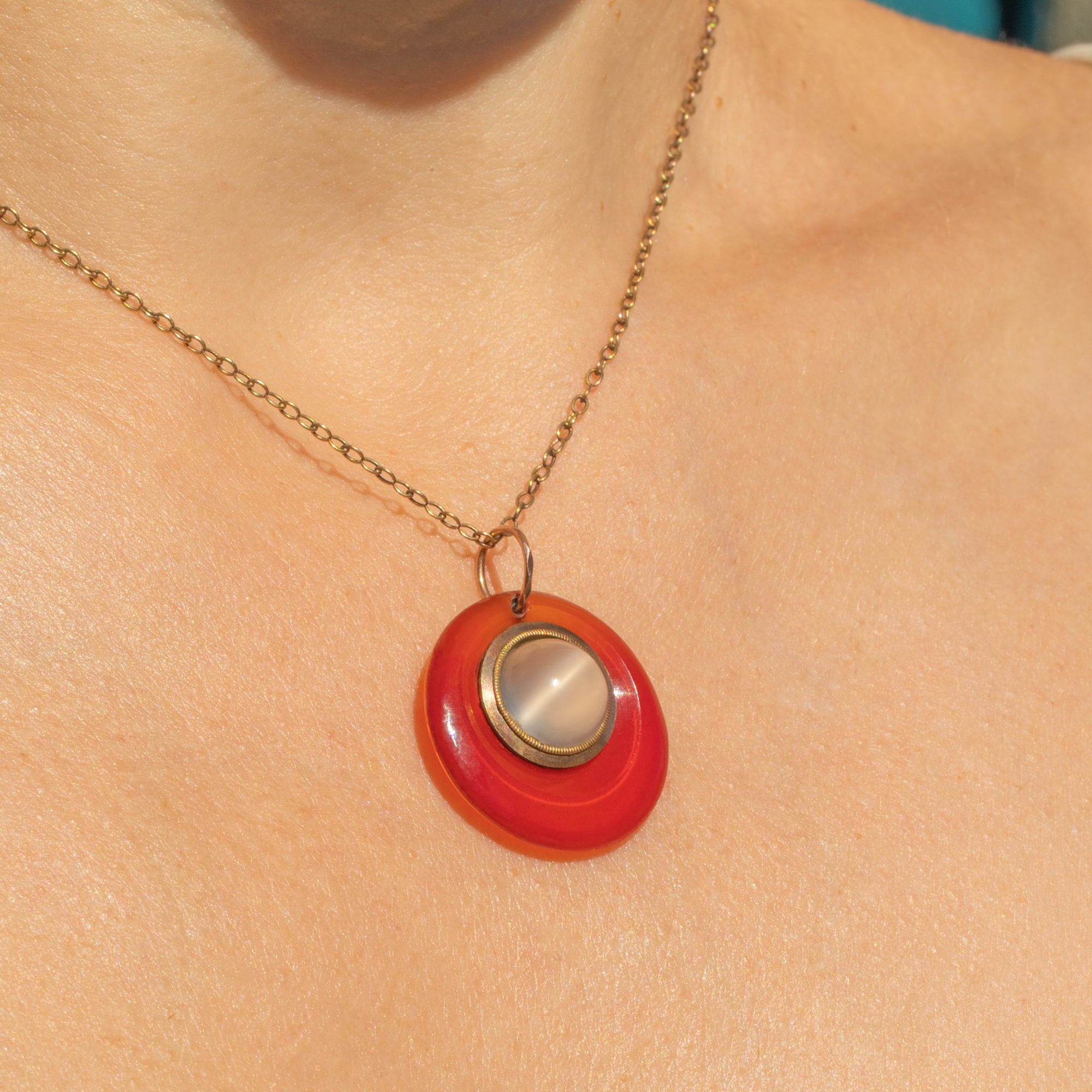 RARE Georgian Carnelian Moonstone Round Locket-Back Pendant, 8.00ct