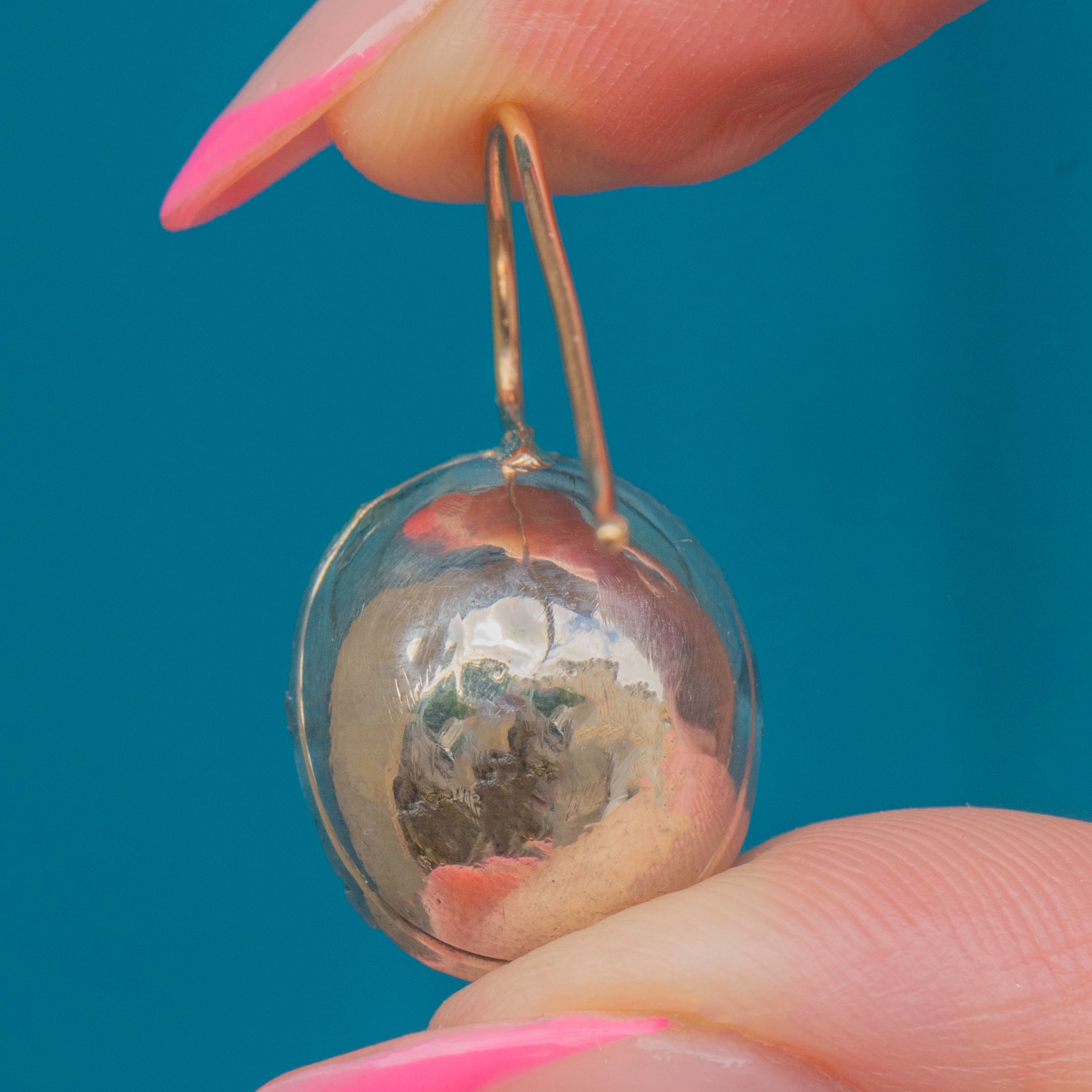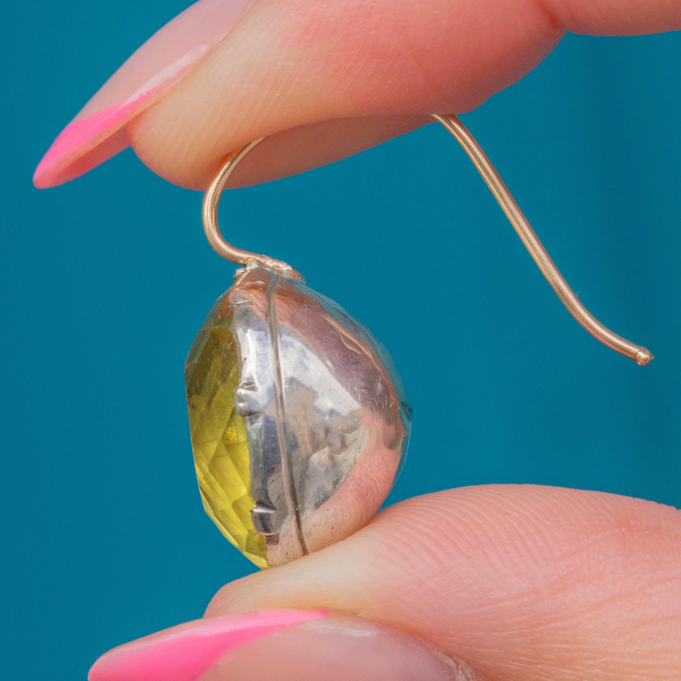 RARE Georgian Chartreuse Green Paste Button Earrings, 9ct Gold Hooks