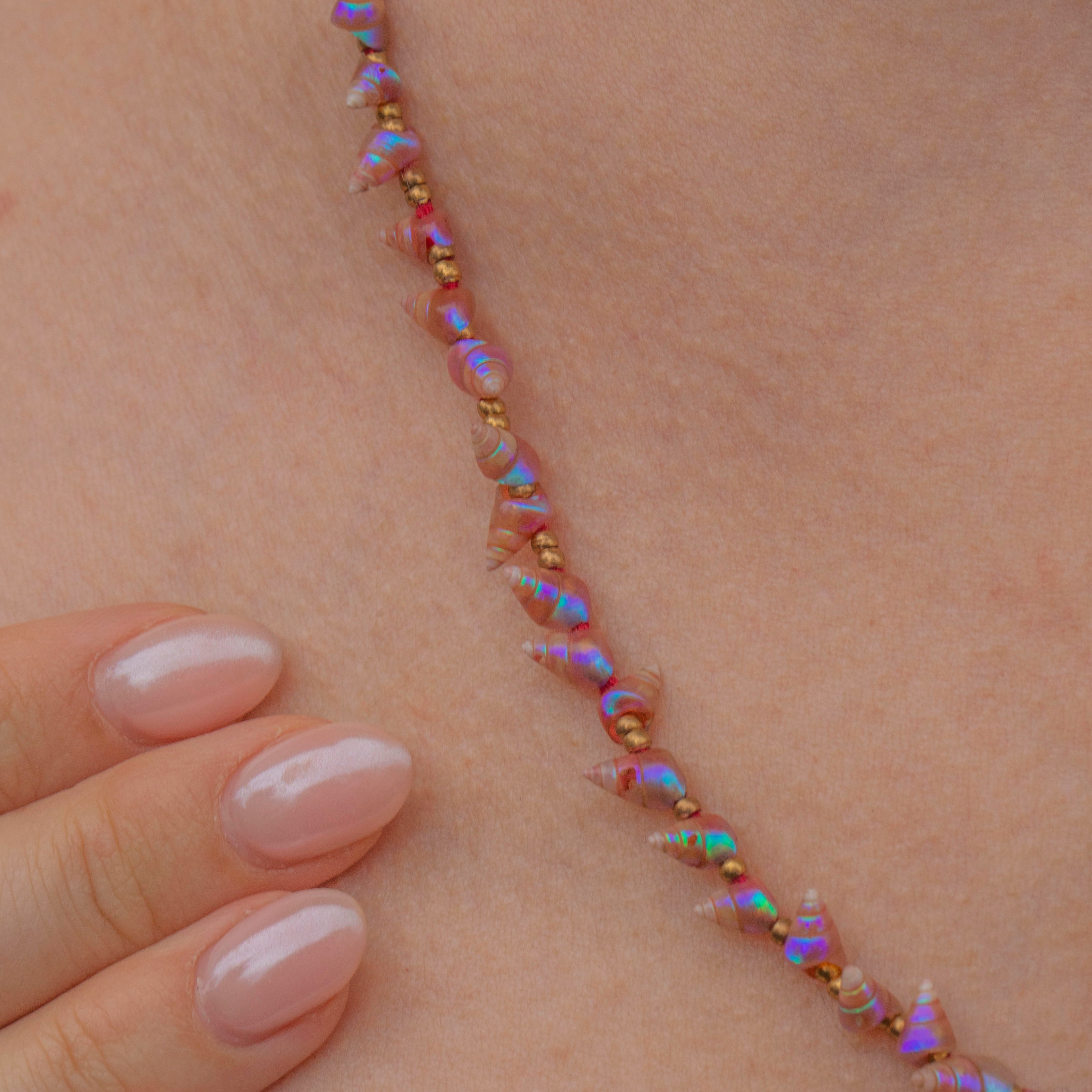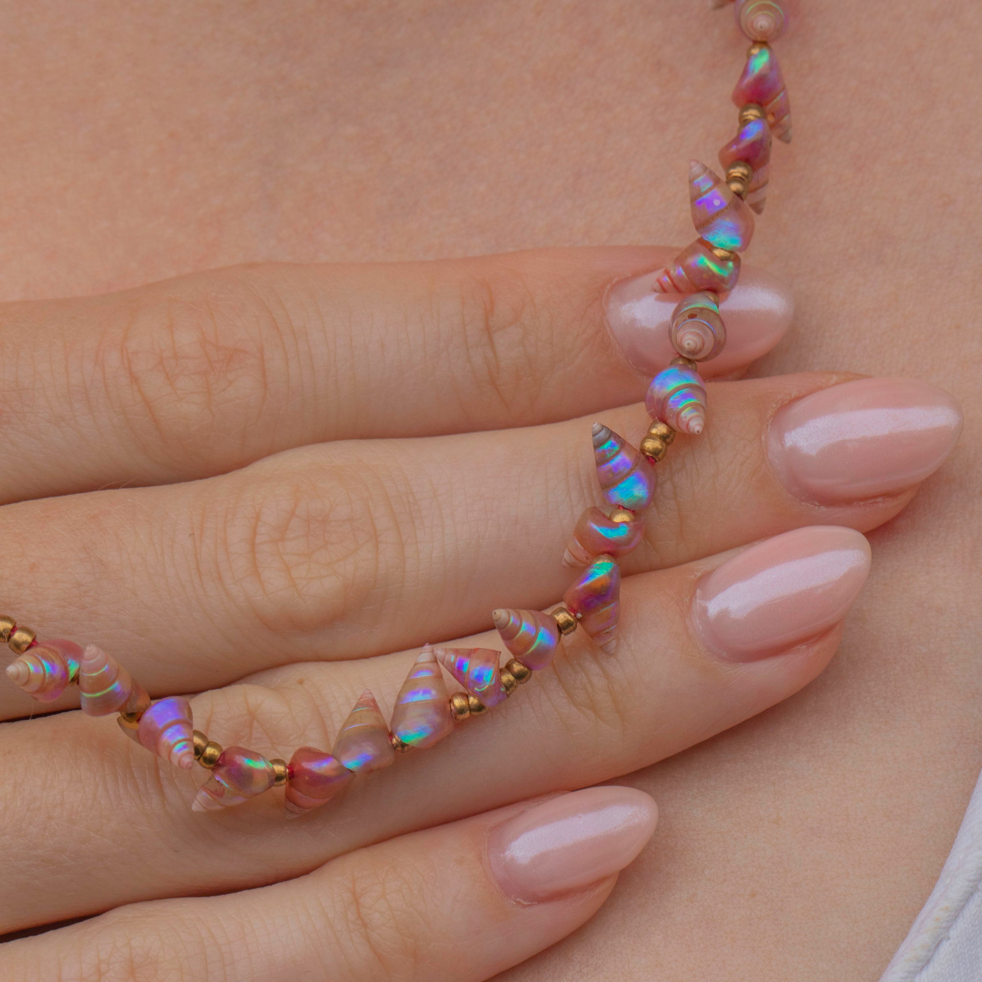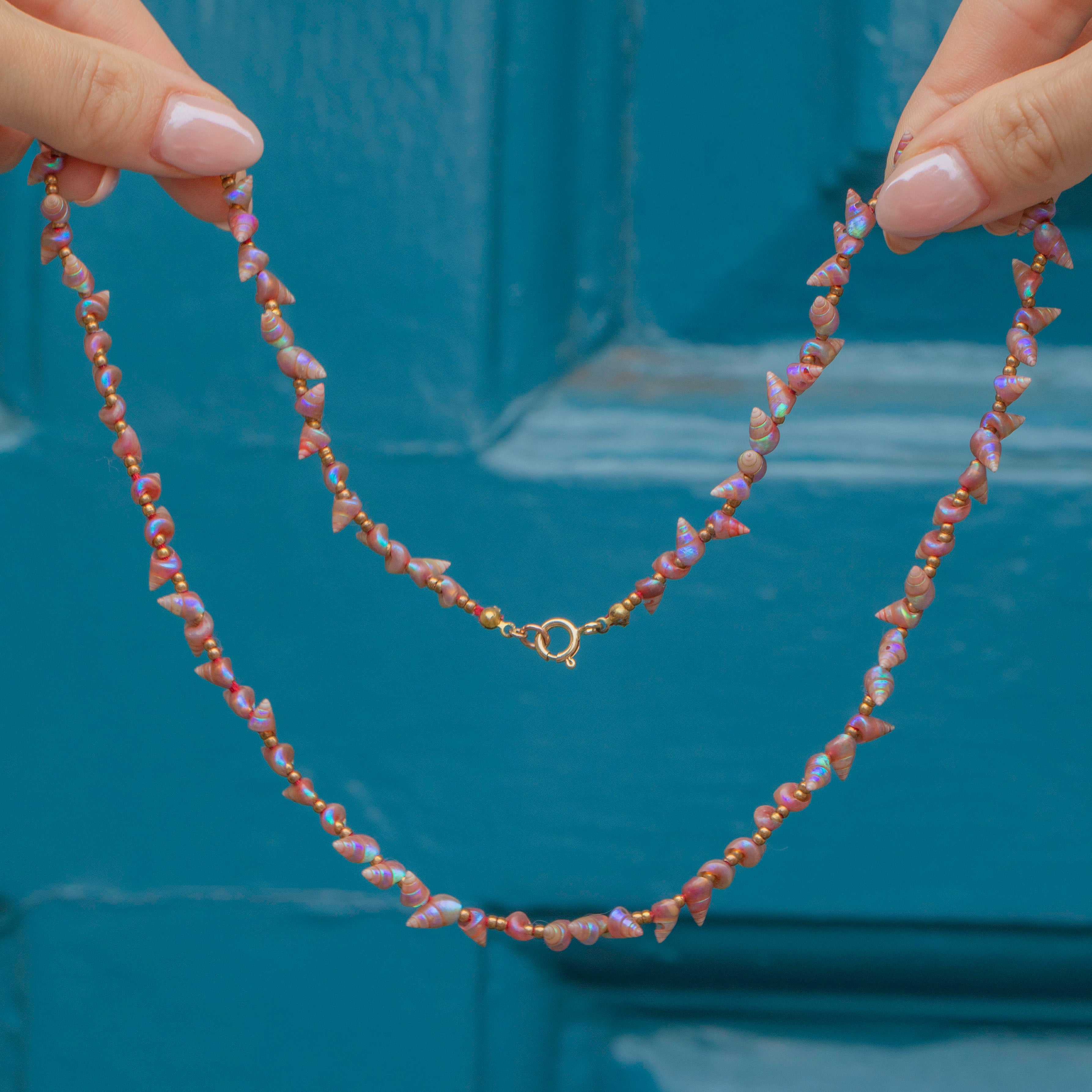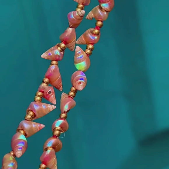 Rare Pink Iridescent Maireener Tasmanian Shell Necklace, 9ct Gold Clasp