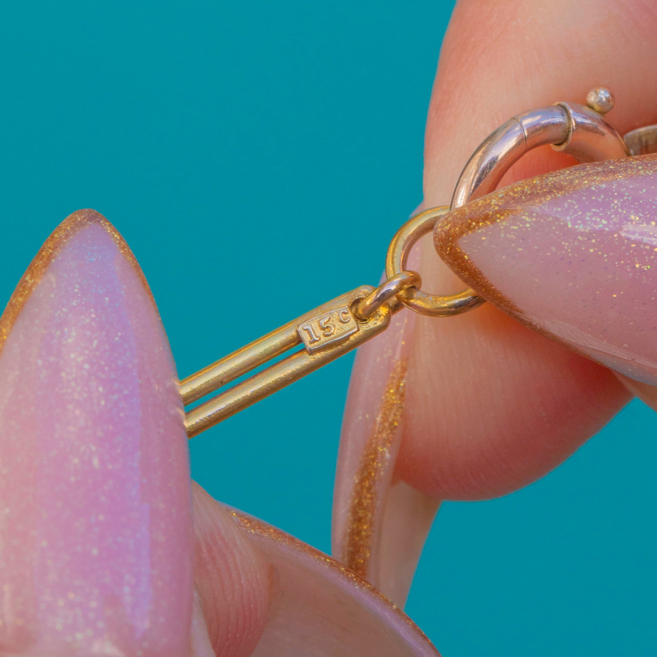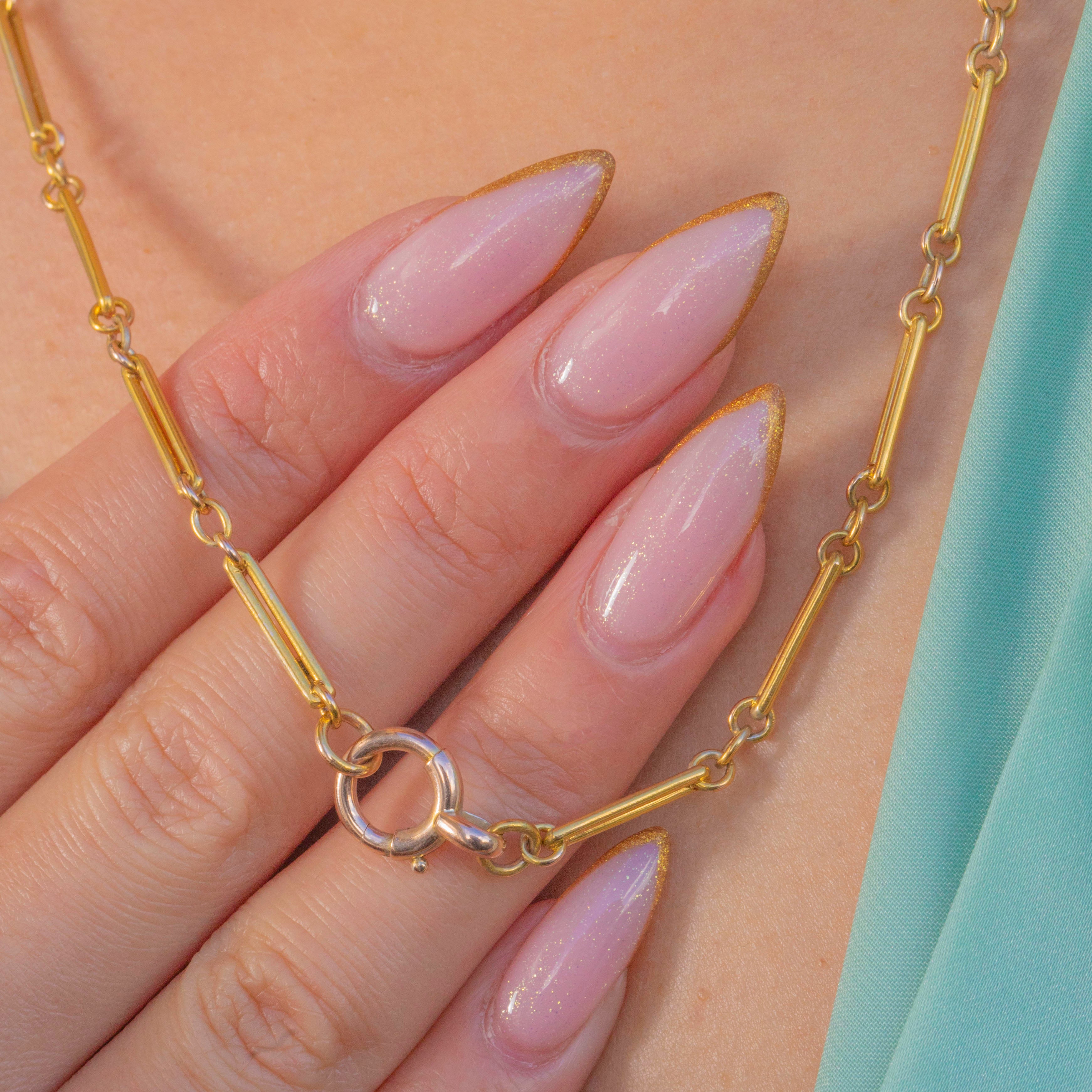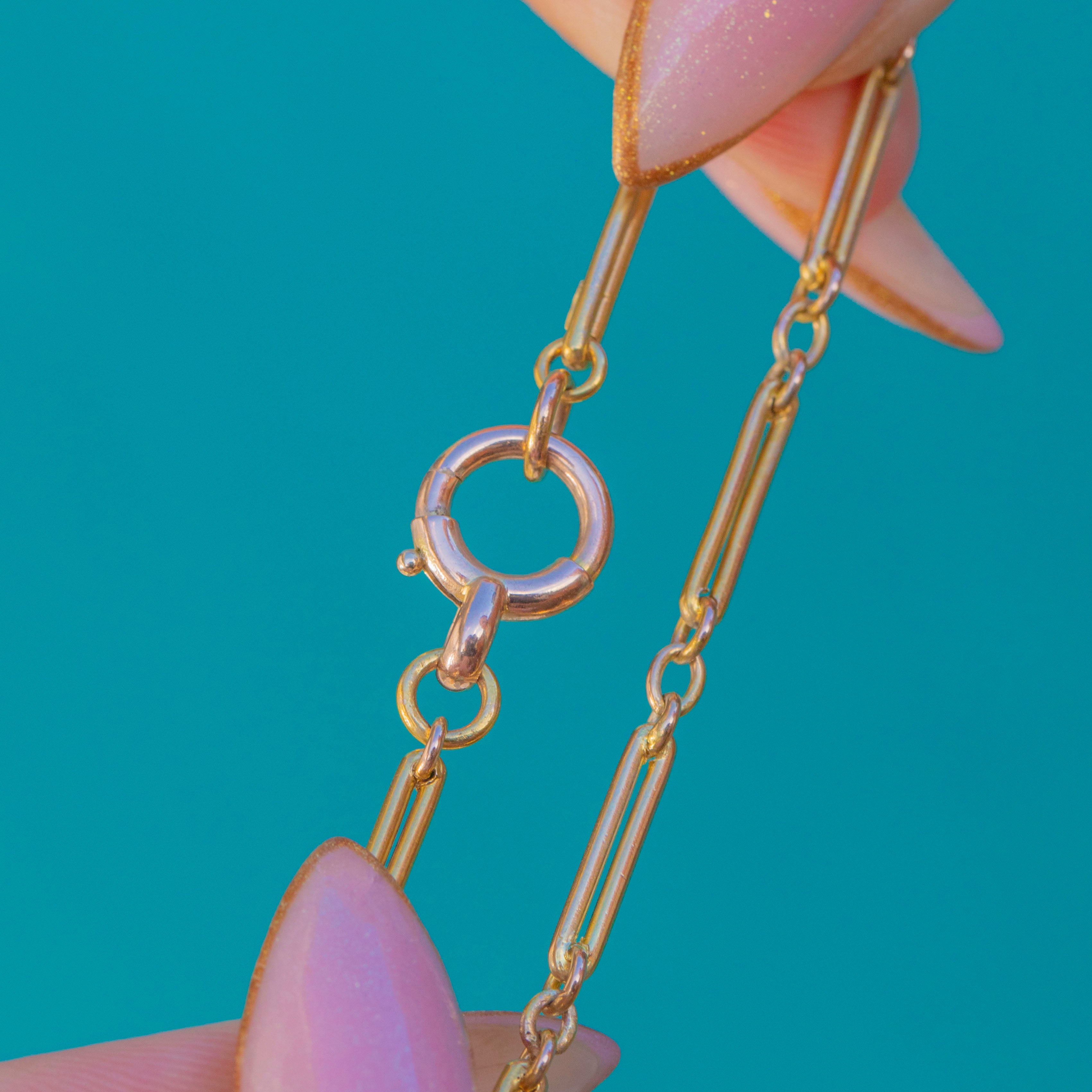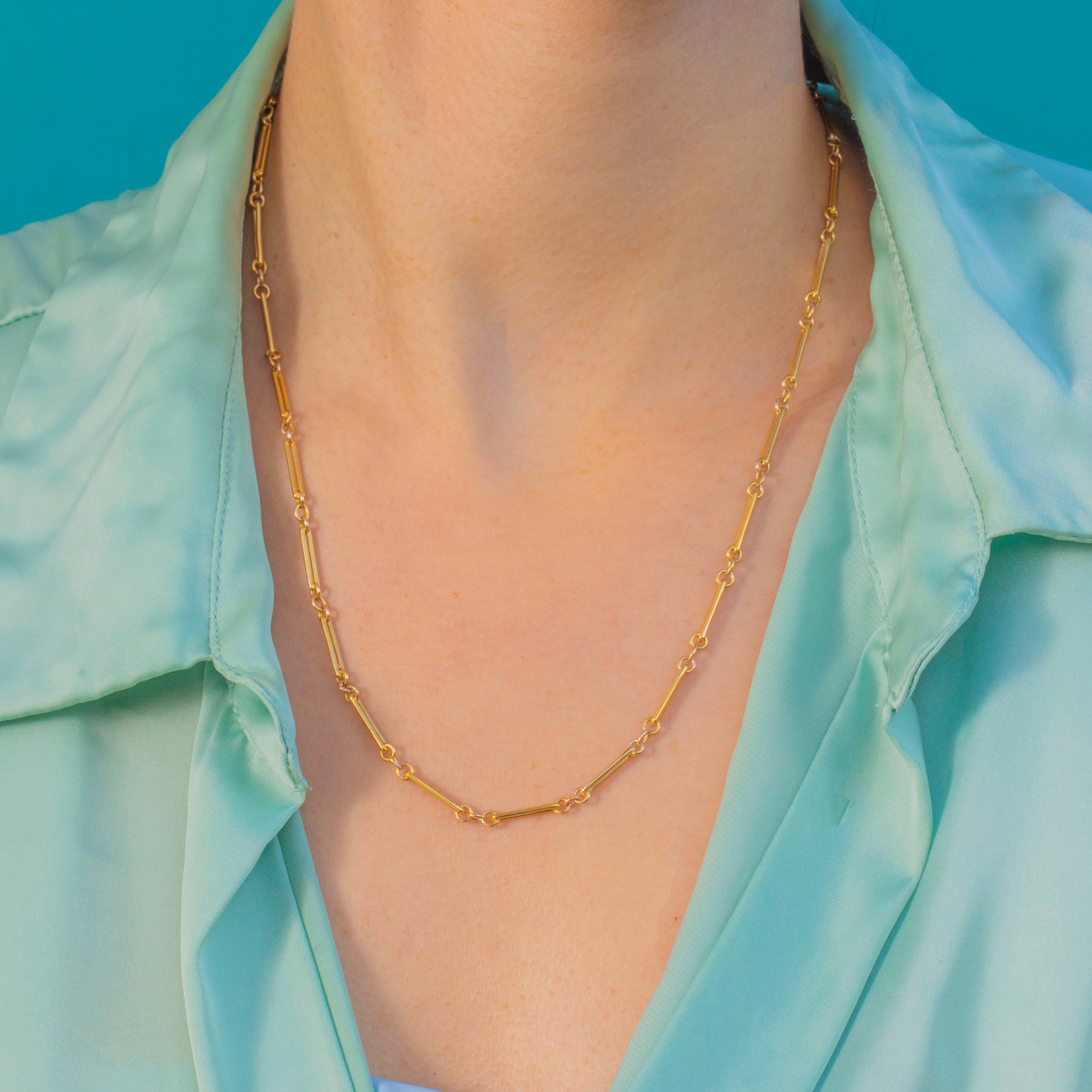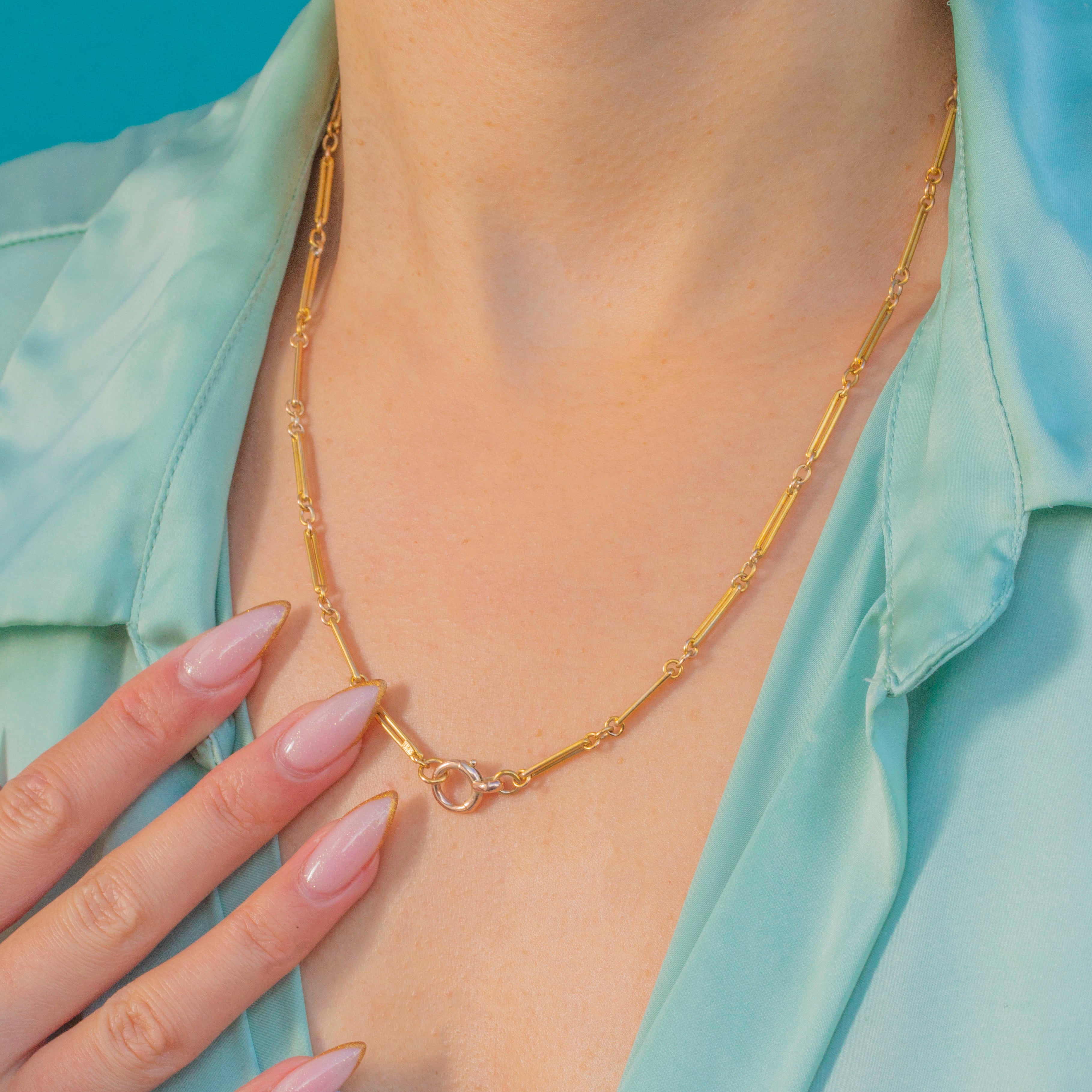 Rare chaîne à maillons trombone en or 15 carats ancienne étiquetée - 18"