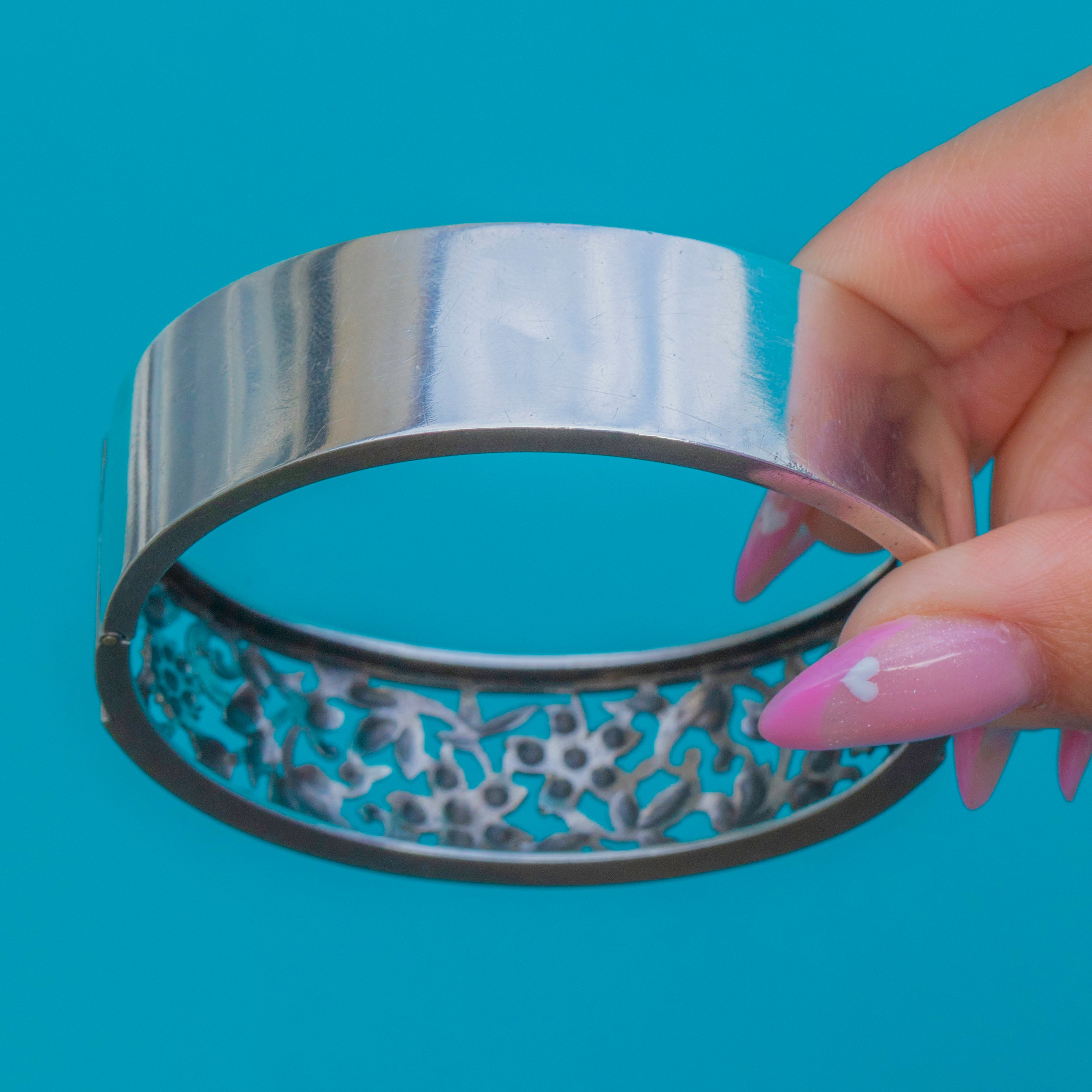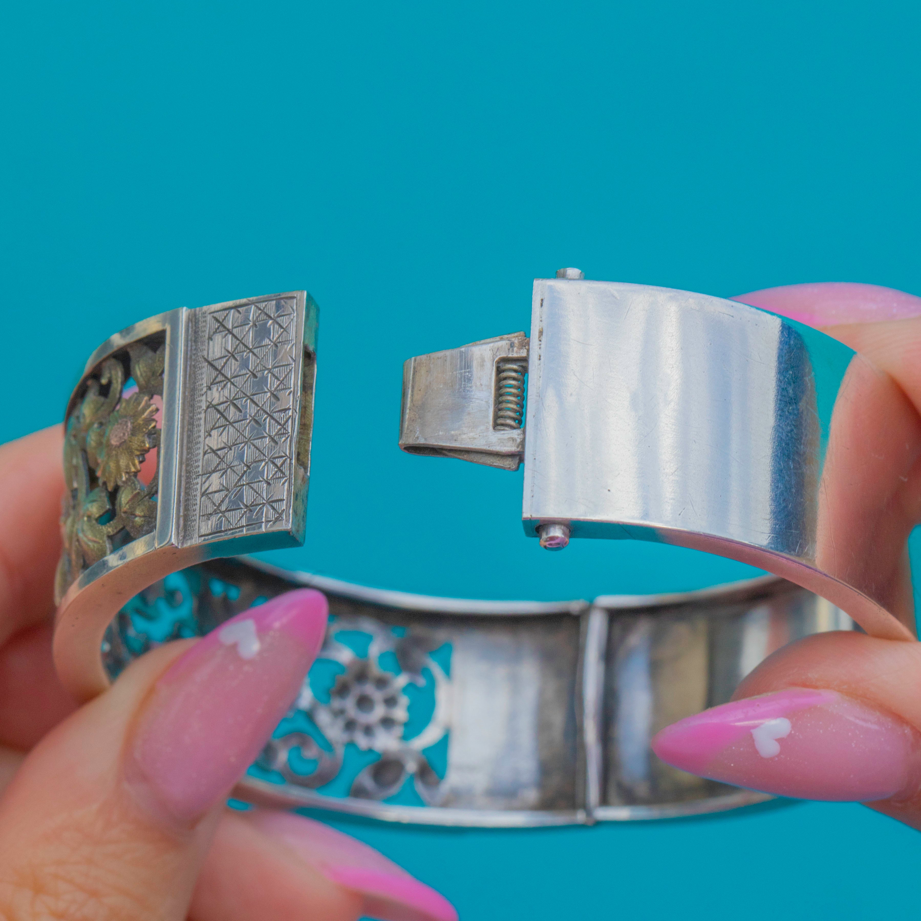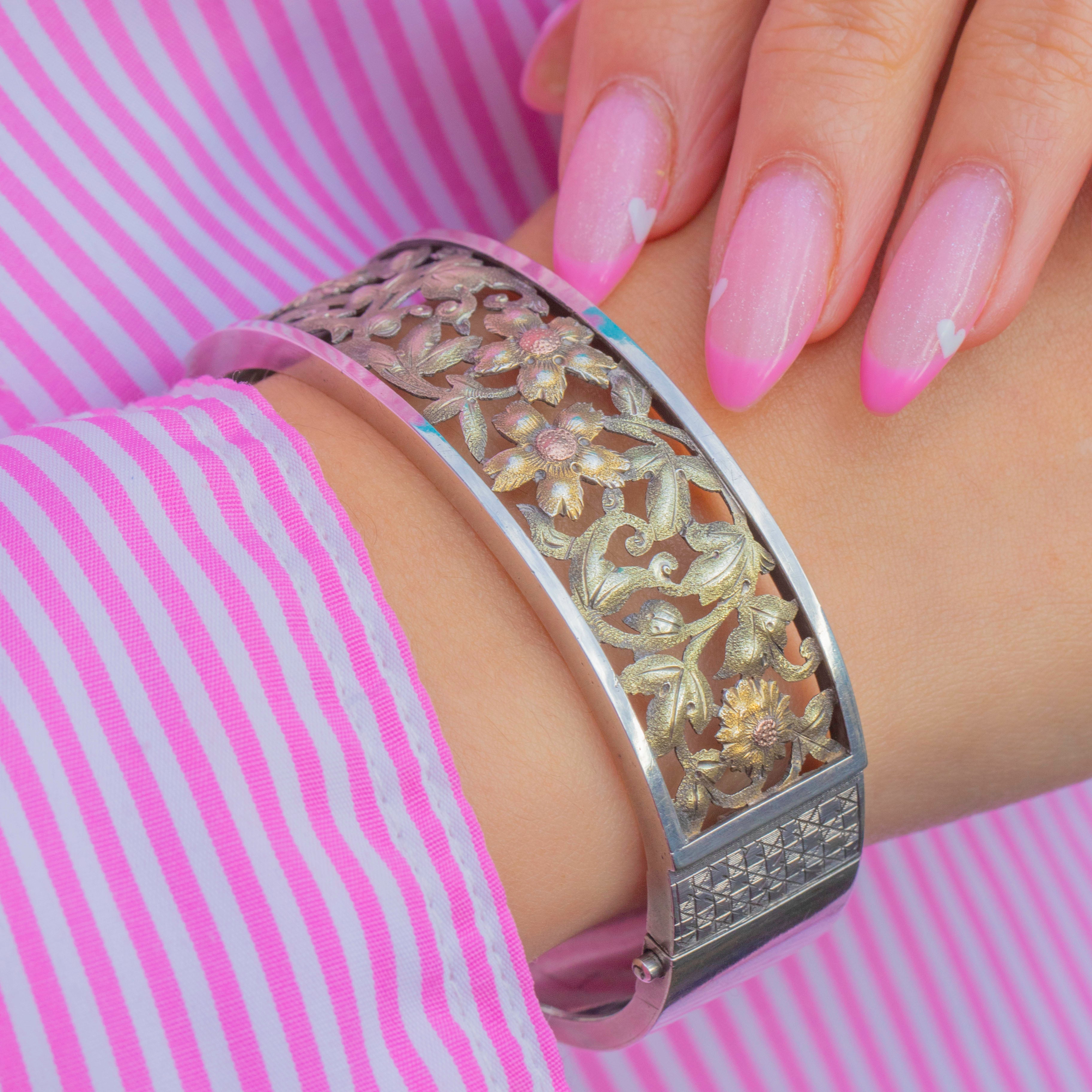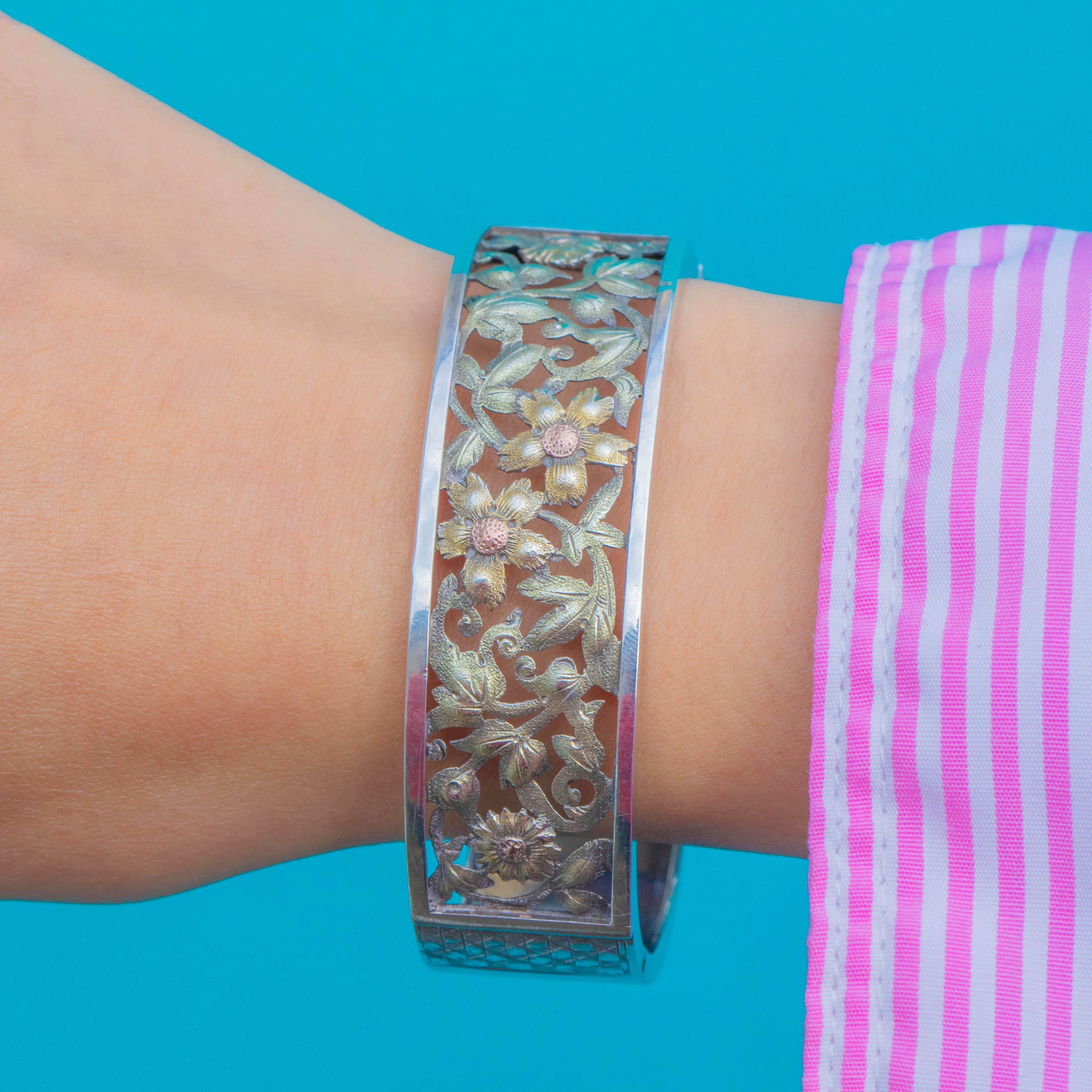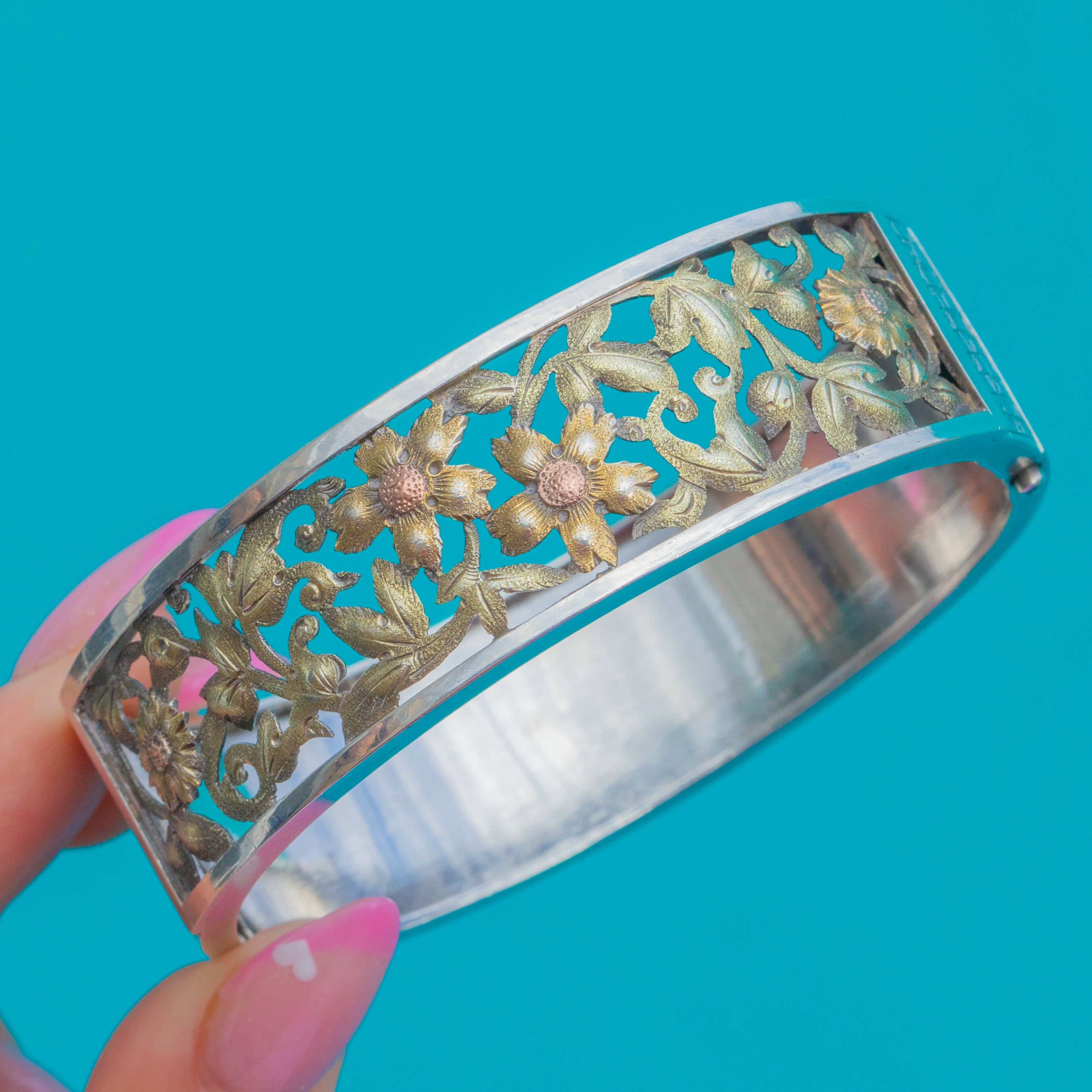 Silver Art Nouveau Flower Bangle with Gold Details – John Millward Banks