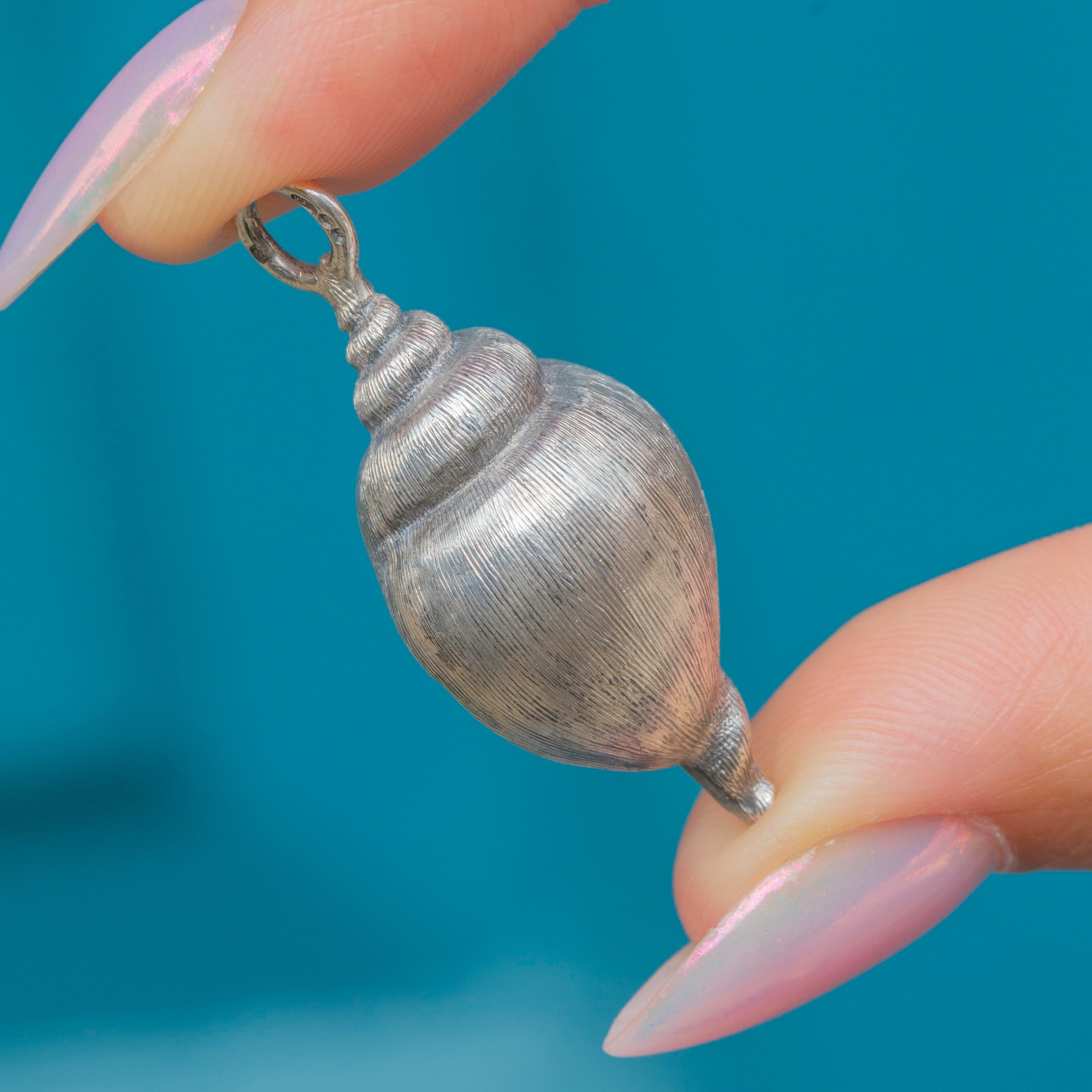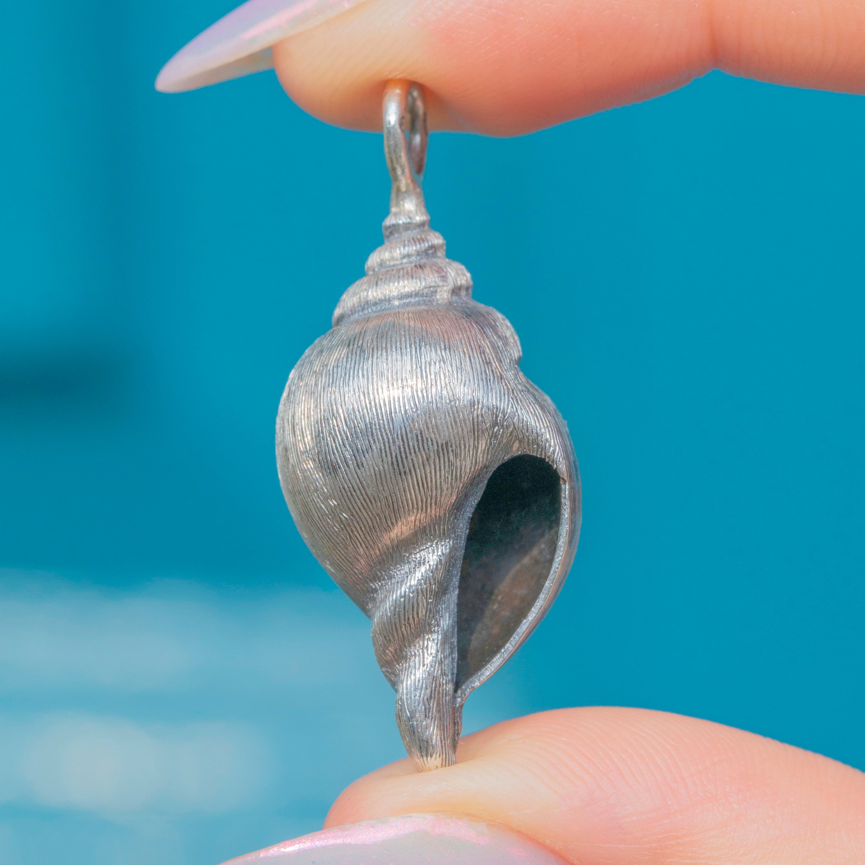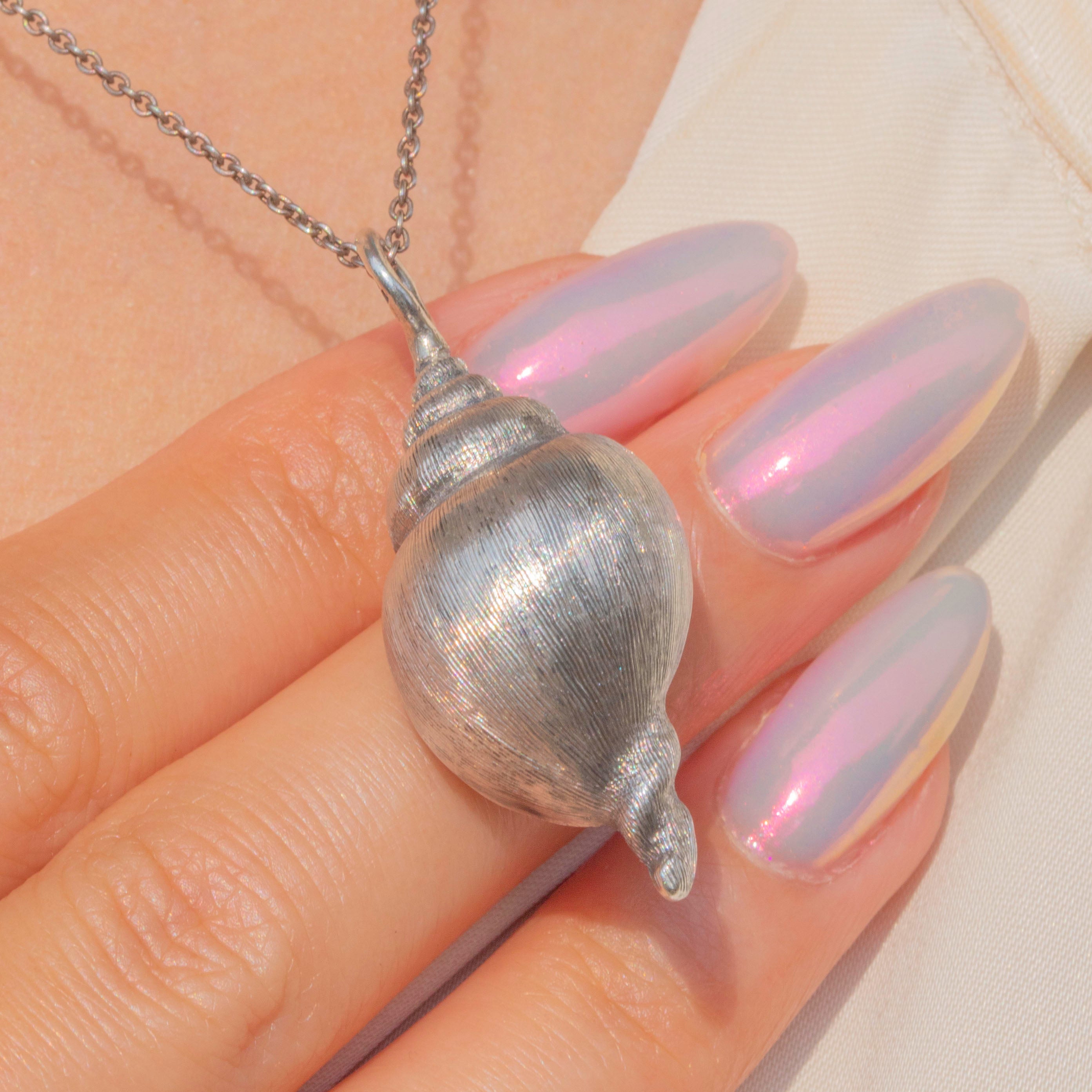 This stunning Silver conch shell pendant is a timeless piece that captures the beauty of the sea. Crafted from solid Sterling Silver, she features intricate detailing that highlights the natural curves and textures of a real conch shell.