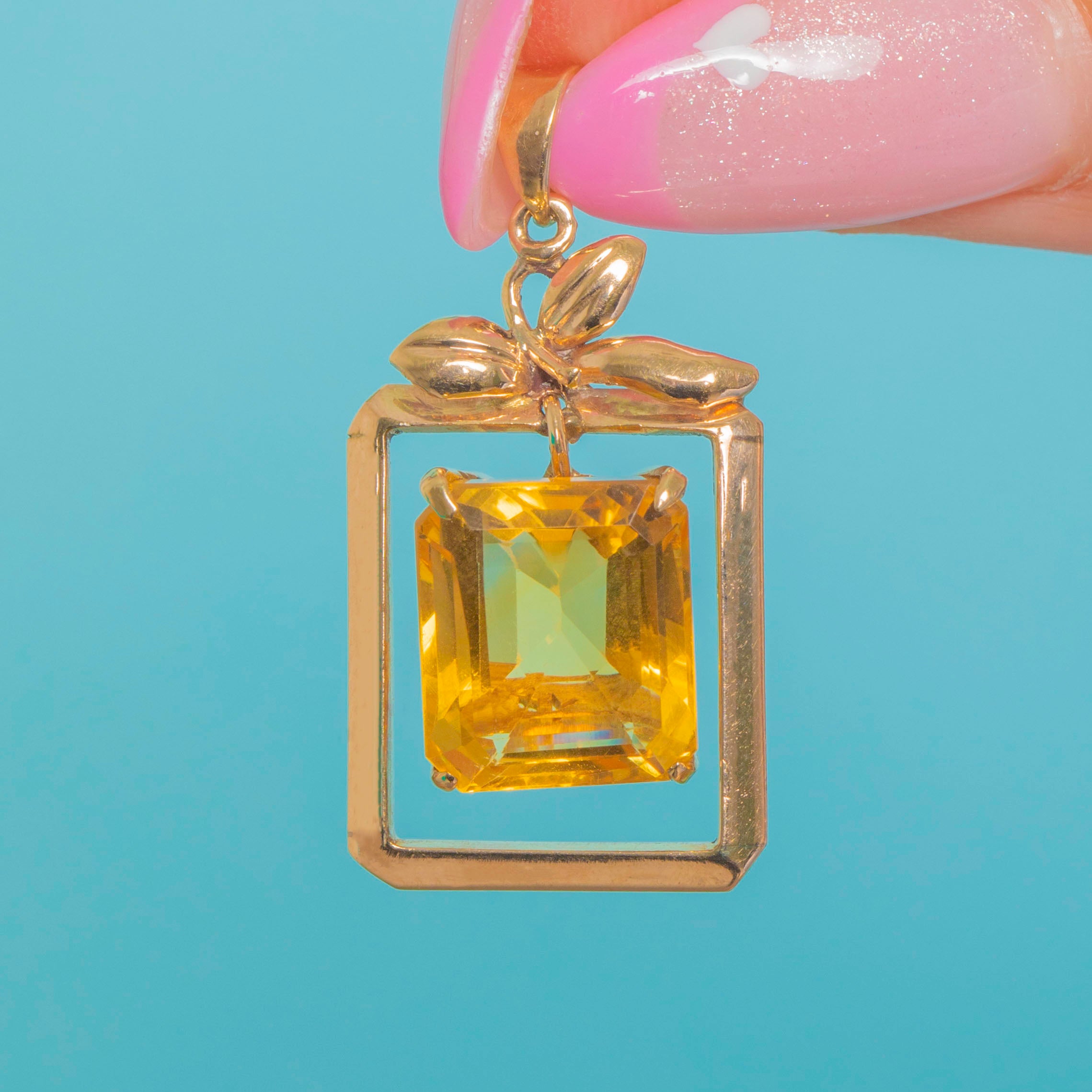 Sleek Mid-Century Vintage 14 Carat Citrine Pendant