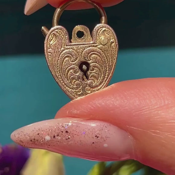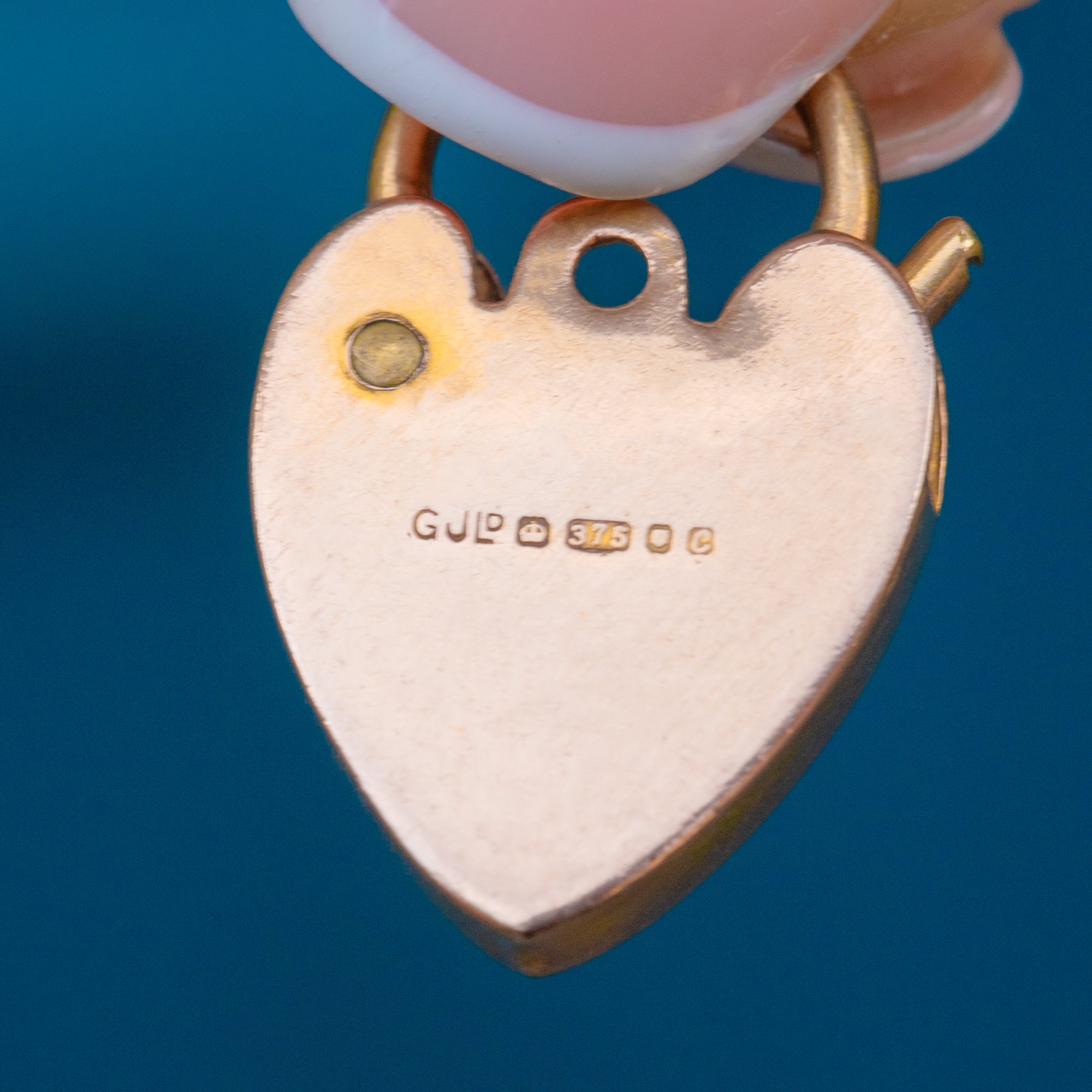 EXCELLENT This solid 9ct Gold engraved heart padlock is in perfect condition. The engravings are crisp and the padlock function is in perfect working order. All in all, this vintage heart pendant is in superb condition!