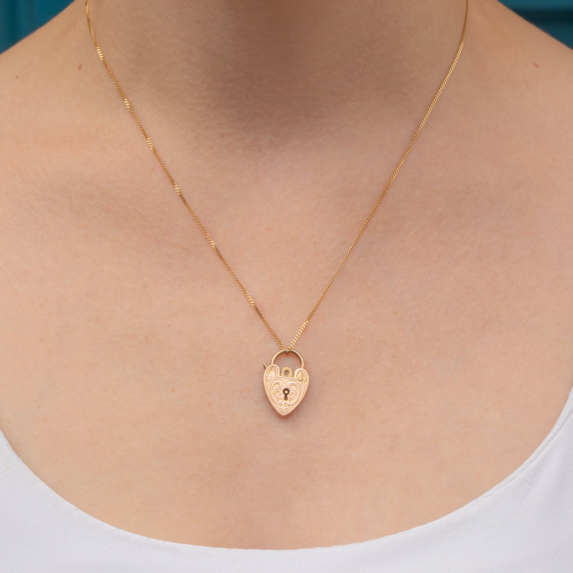 This solid 9ct Gold engraved heart padlock is the perfect pick to add a flash of romance to any attire!