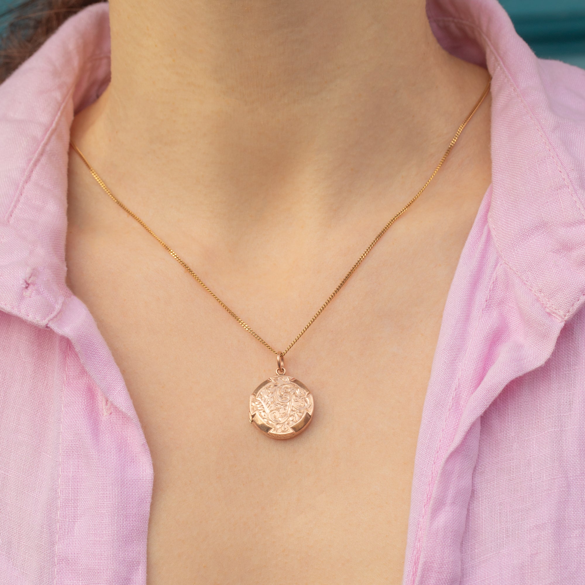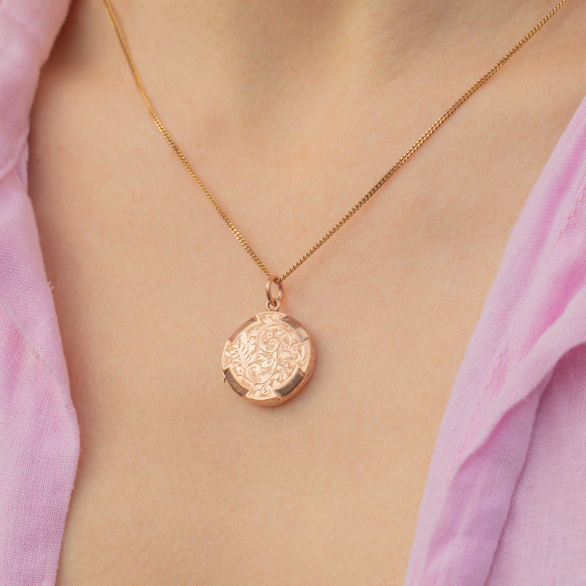 This antique Gold locket would make the perfect sentimental gift, with a blank cartouche, to which you could add a personal engraving, and space for two photos to be added inside. A robust and decorative piece, you can enjoy wearing this solid Gold locket every day!