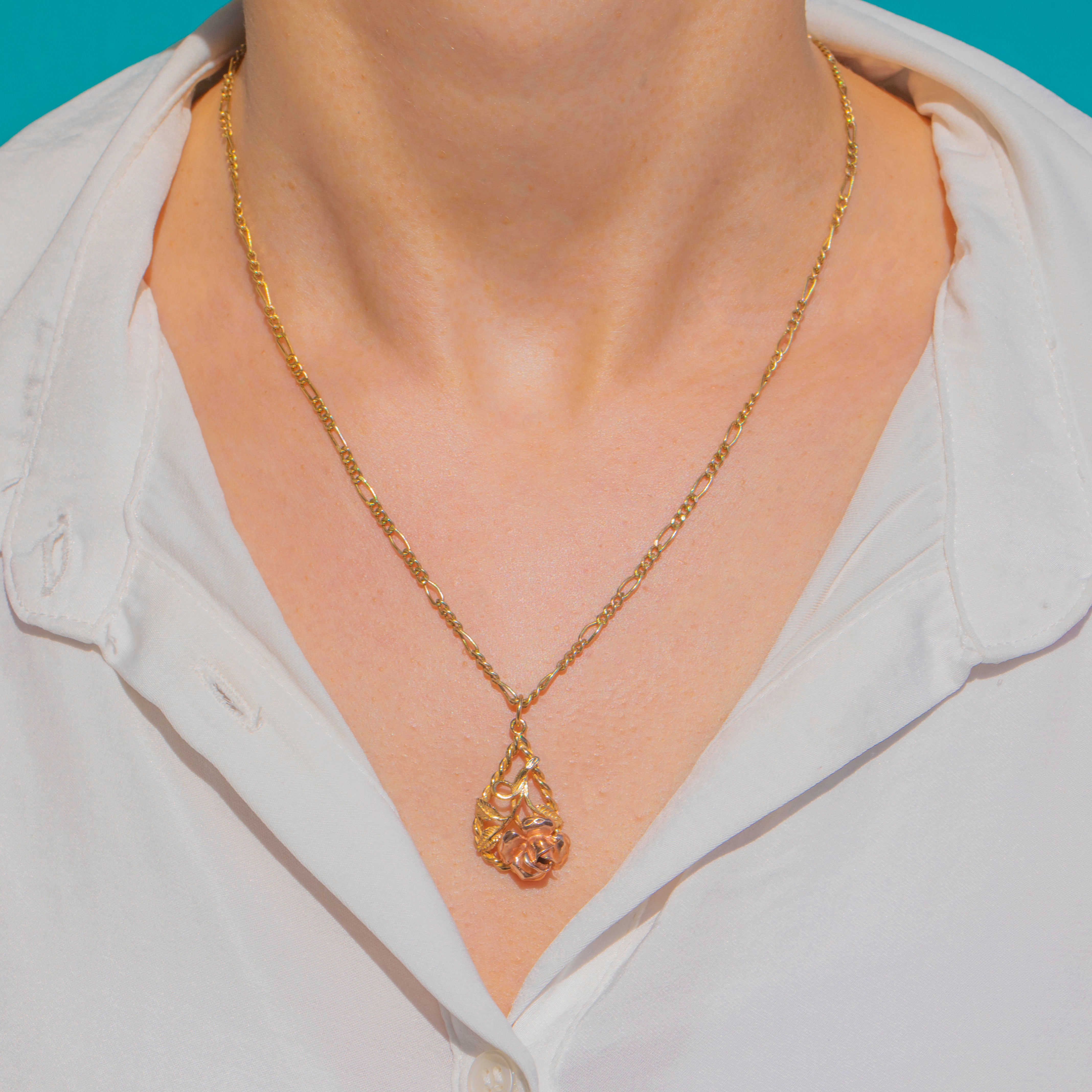 Solid 9ct Gold Rose Motif Pendant, 9ct Yellow & 9ct Rose Gold