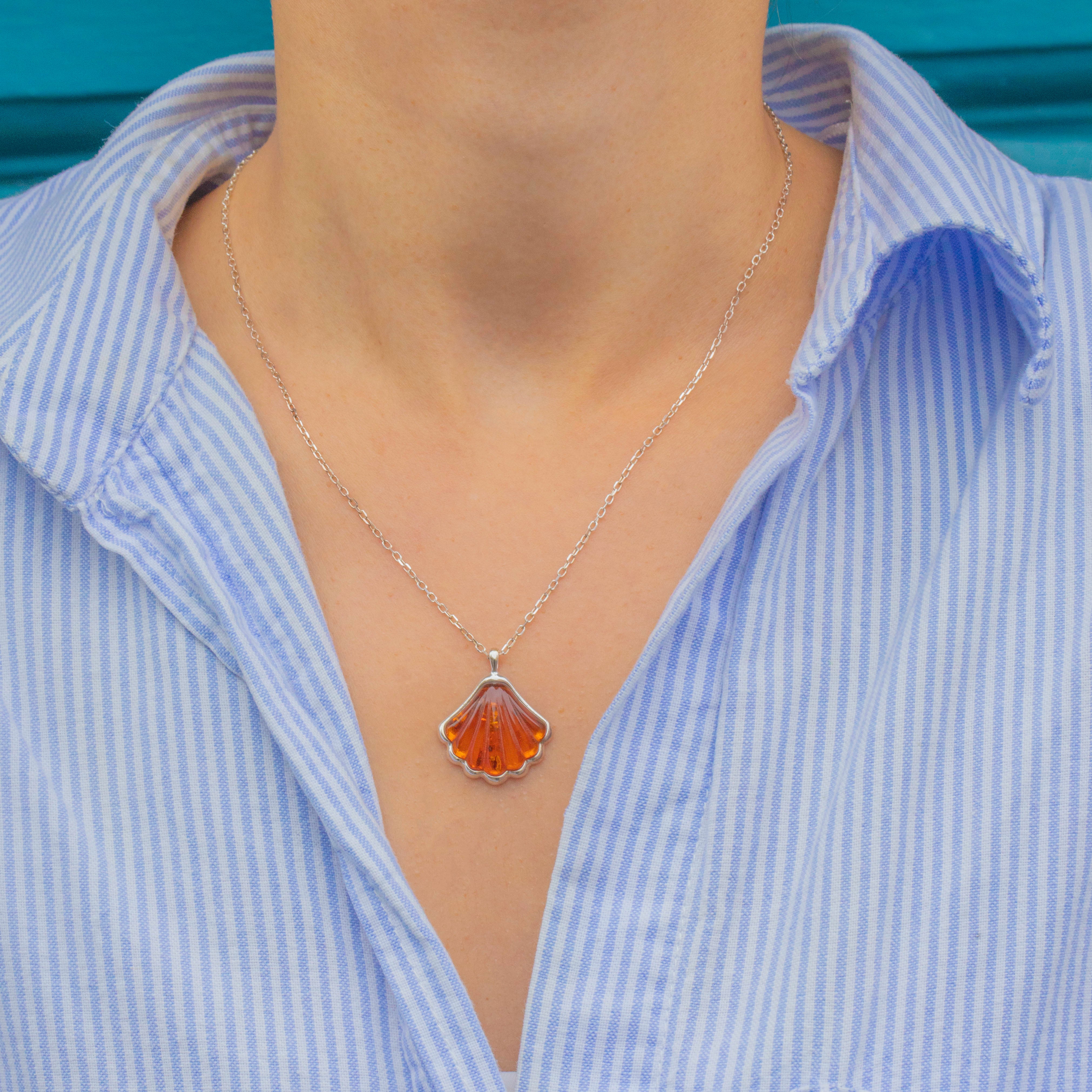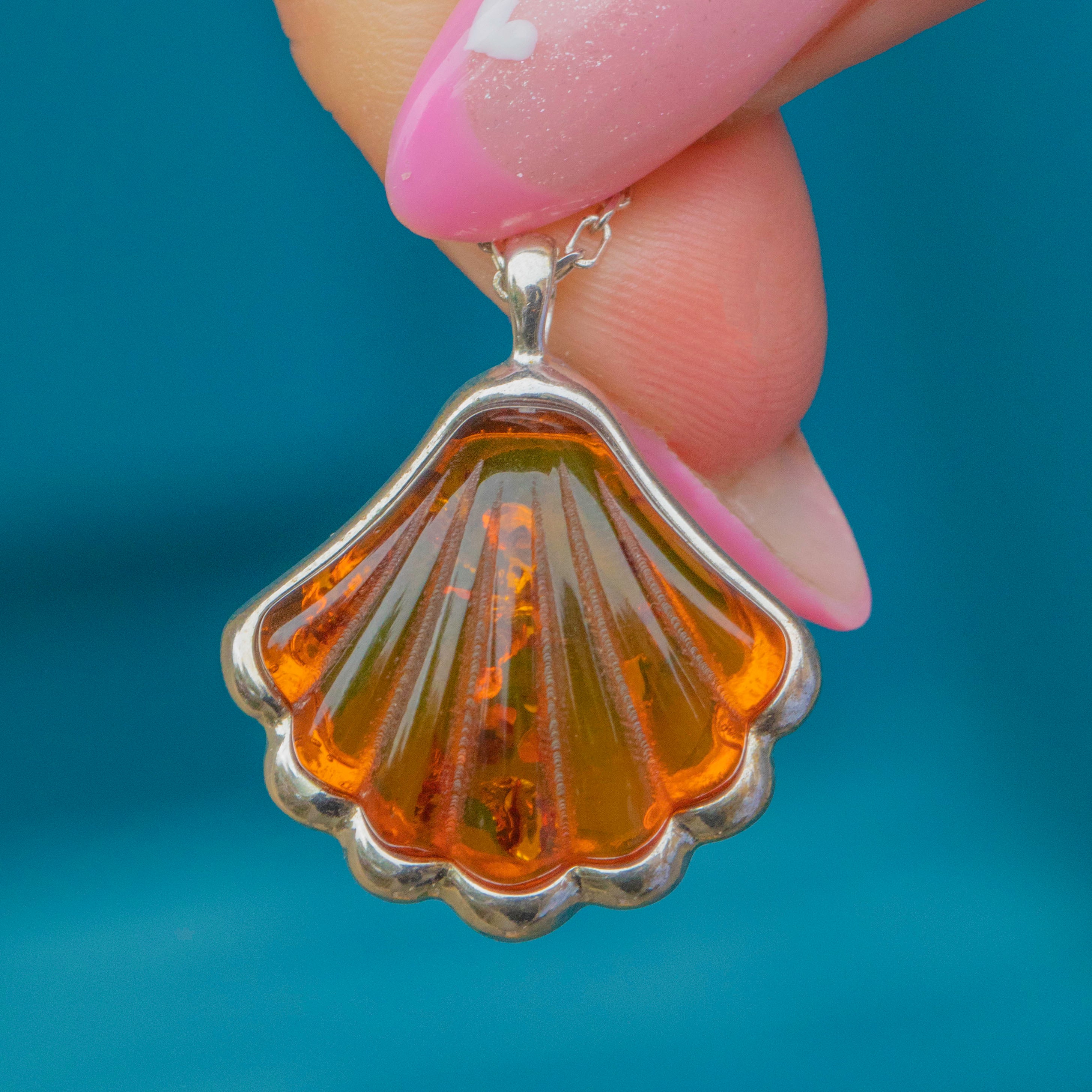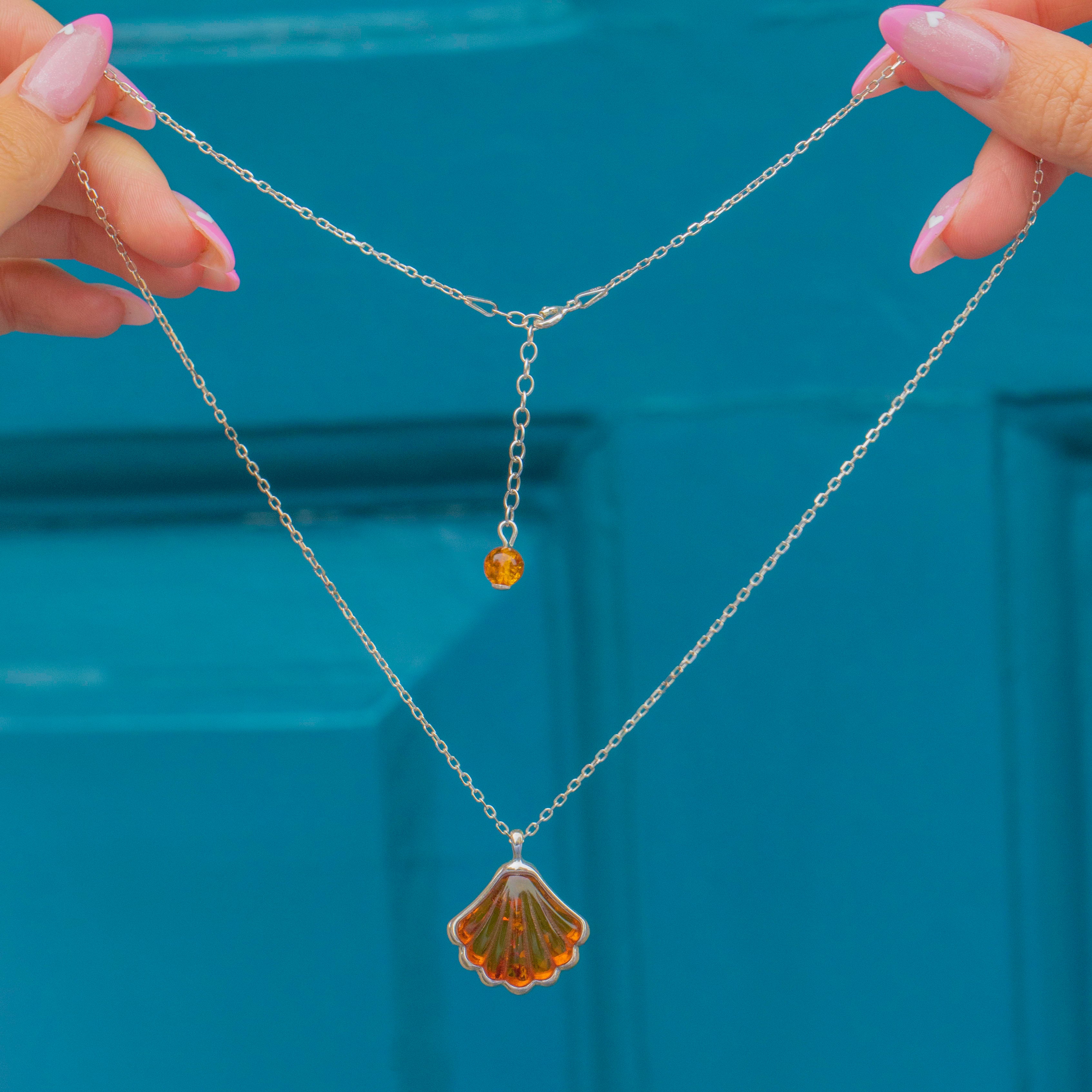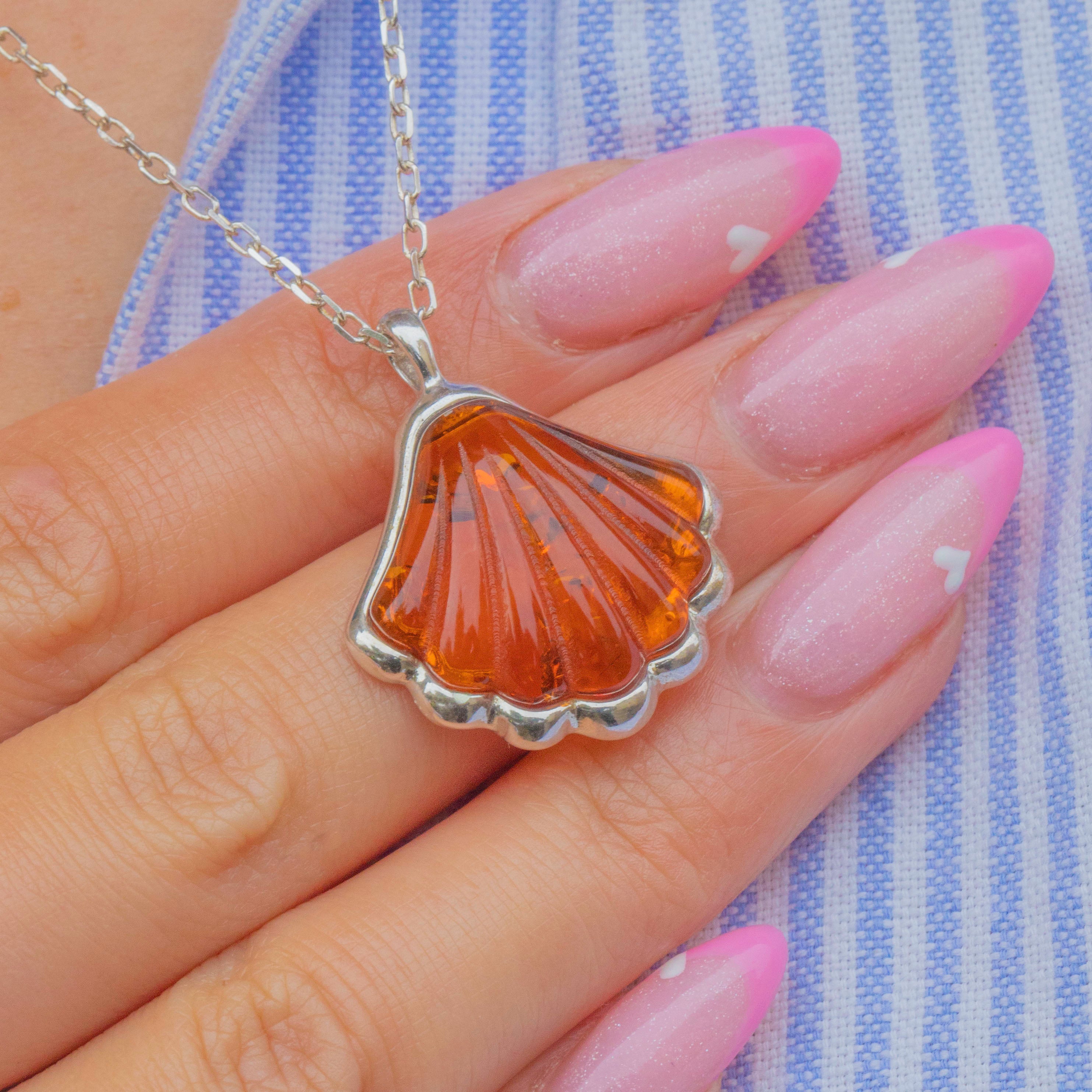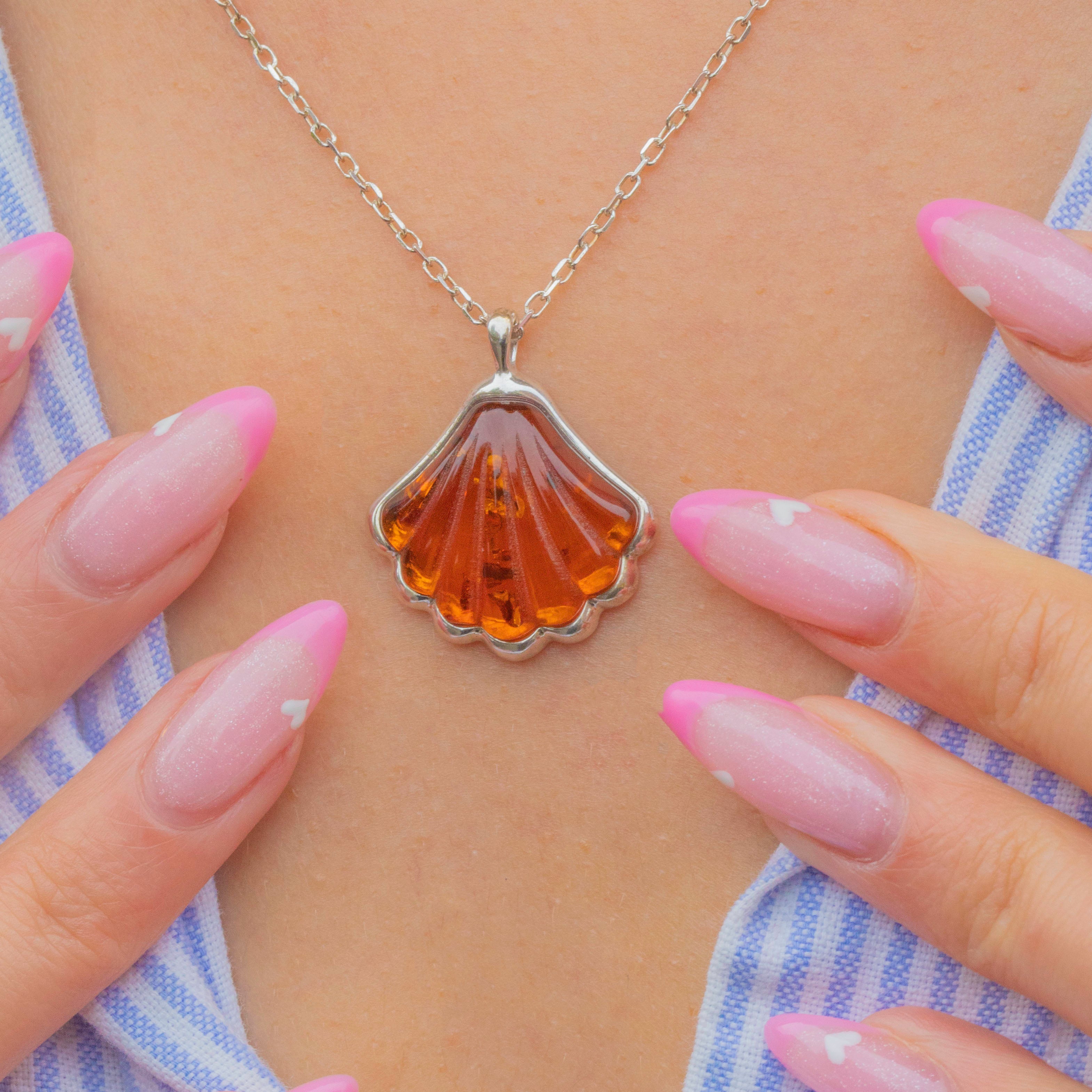 Perfect for everyday wear or as a charming gift, this Amber shell pendant brings a touch of nature’s beauty to any look.