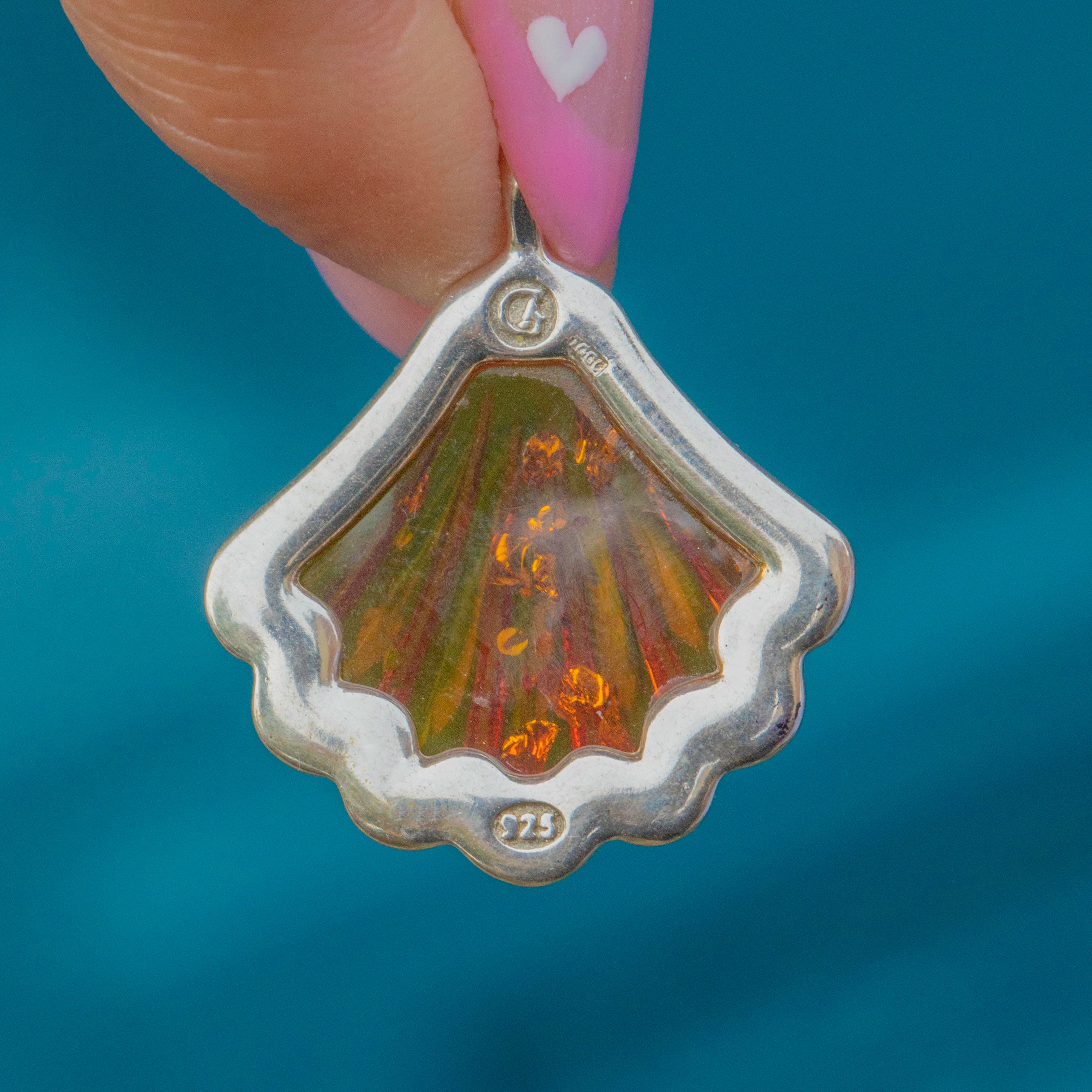 Shell pendant measures 25mm tall x 22mm wide.
