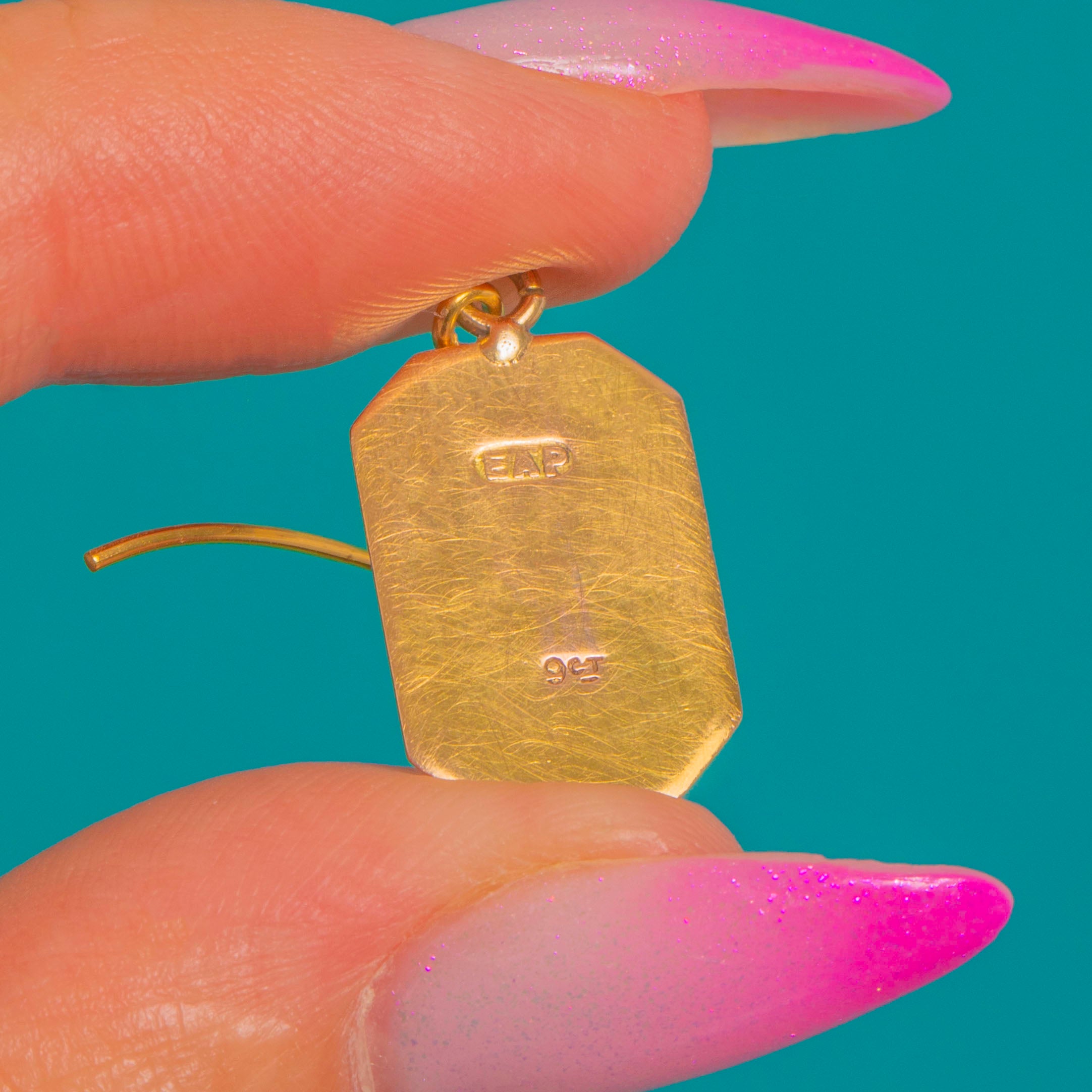 Beautifully proportioned for everyday wear, the plaques sway from simple 9ct Gold French hooks for light, fluid movement. Their crisp Enamel detailing and warm Yellow Gold make them a versatile go-to—equally striking styled solo or paired with a Deco-inspired stack.