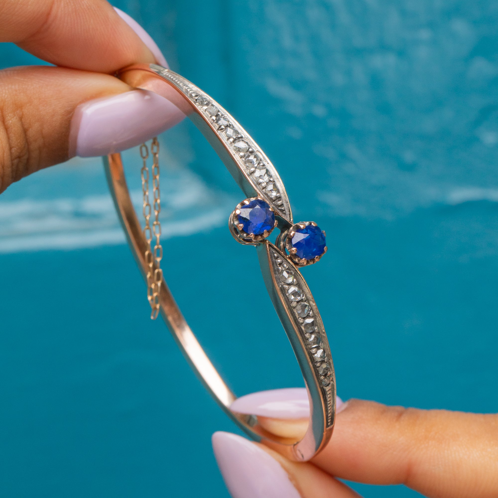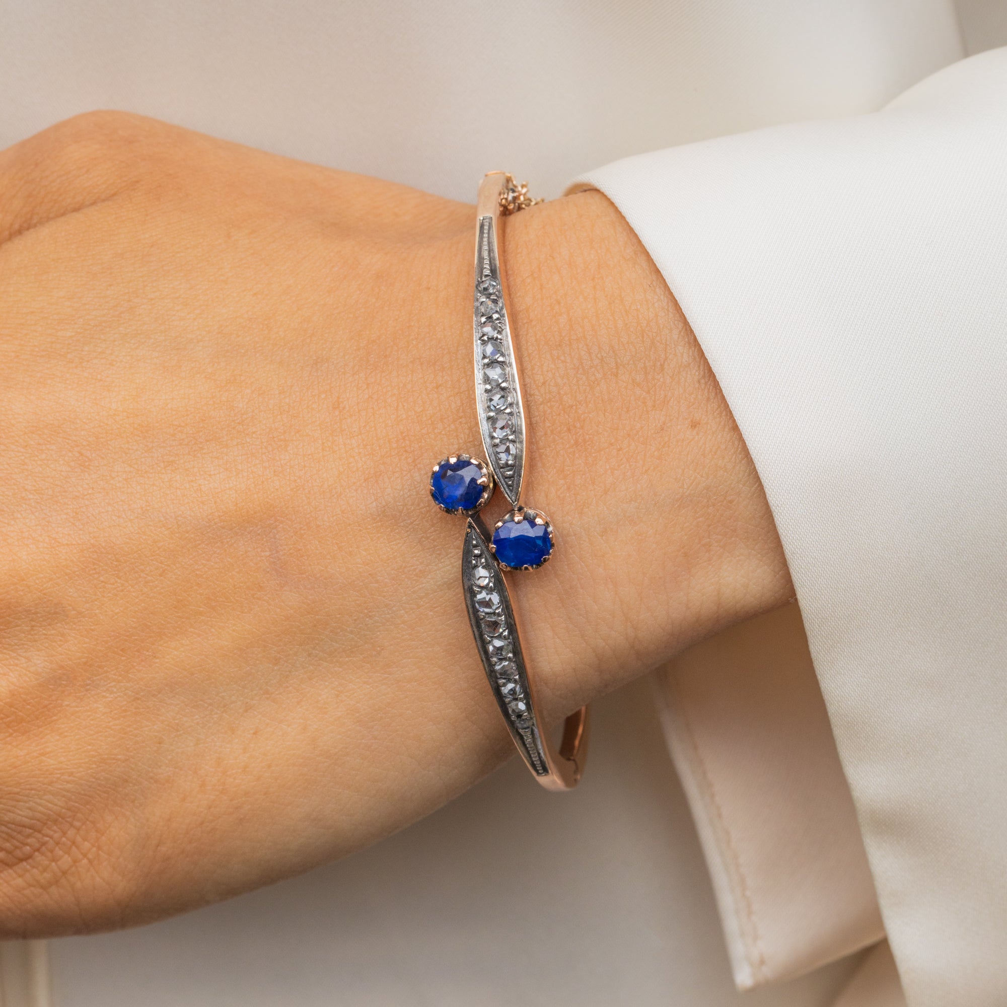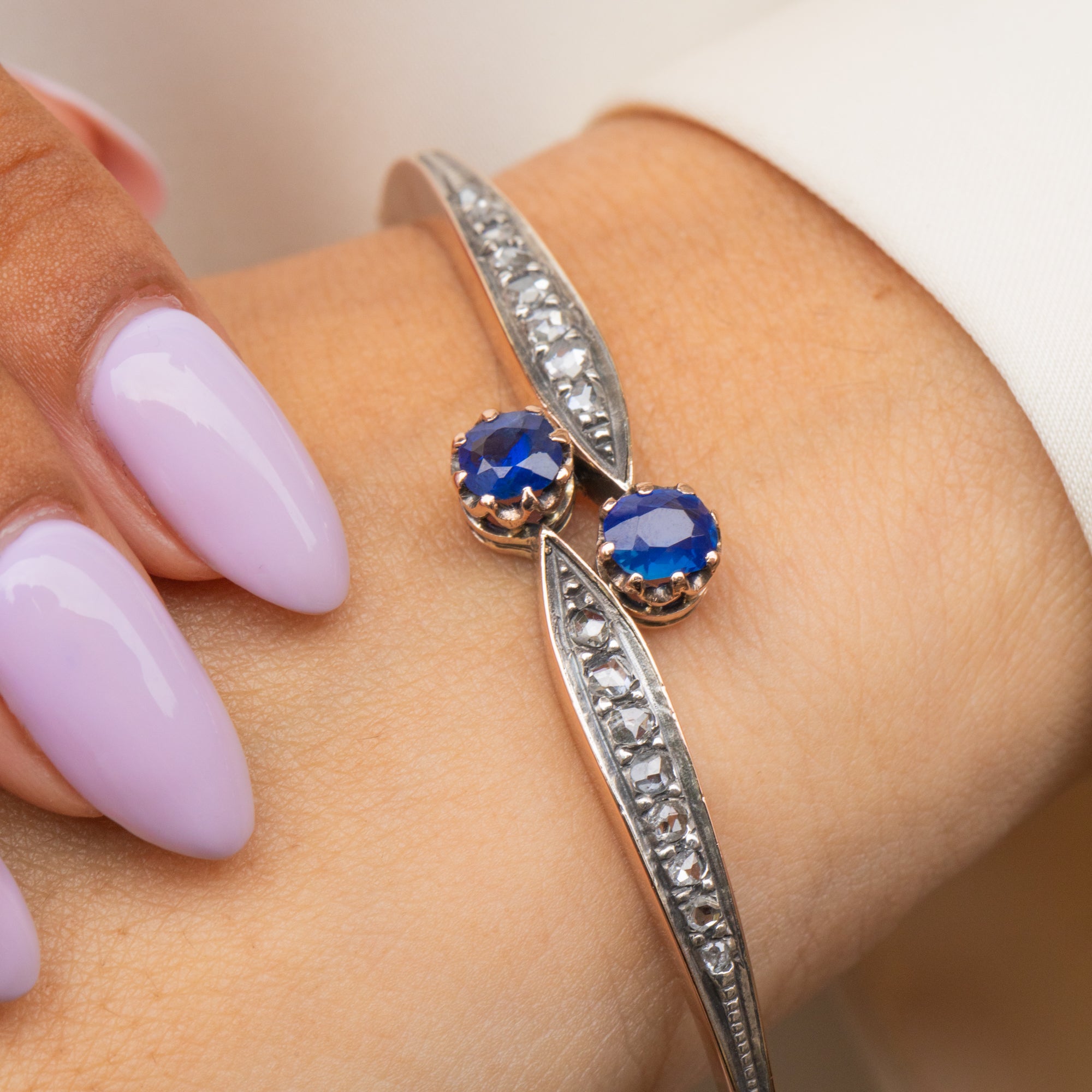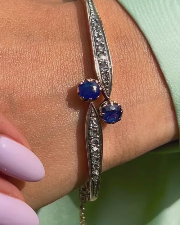 Bracelet Toi Et Moi antique en or 18 carats avec saphirs naturels de 0,75 ct et diamants