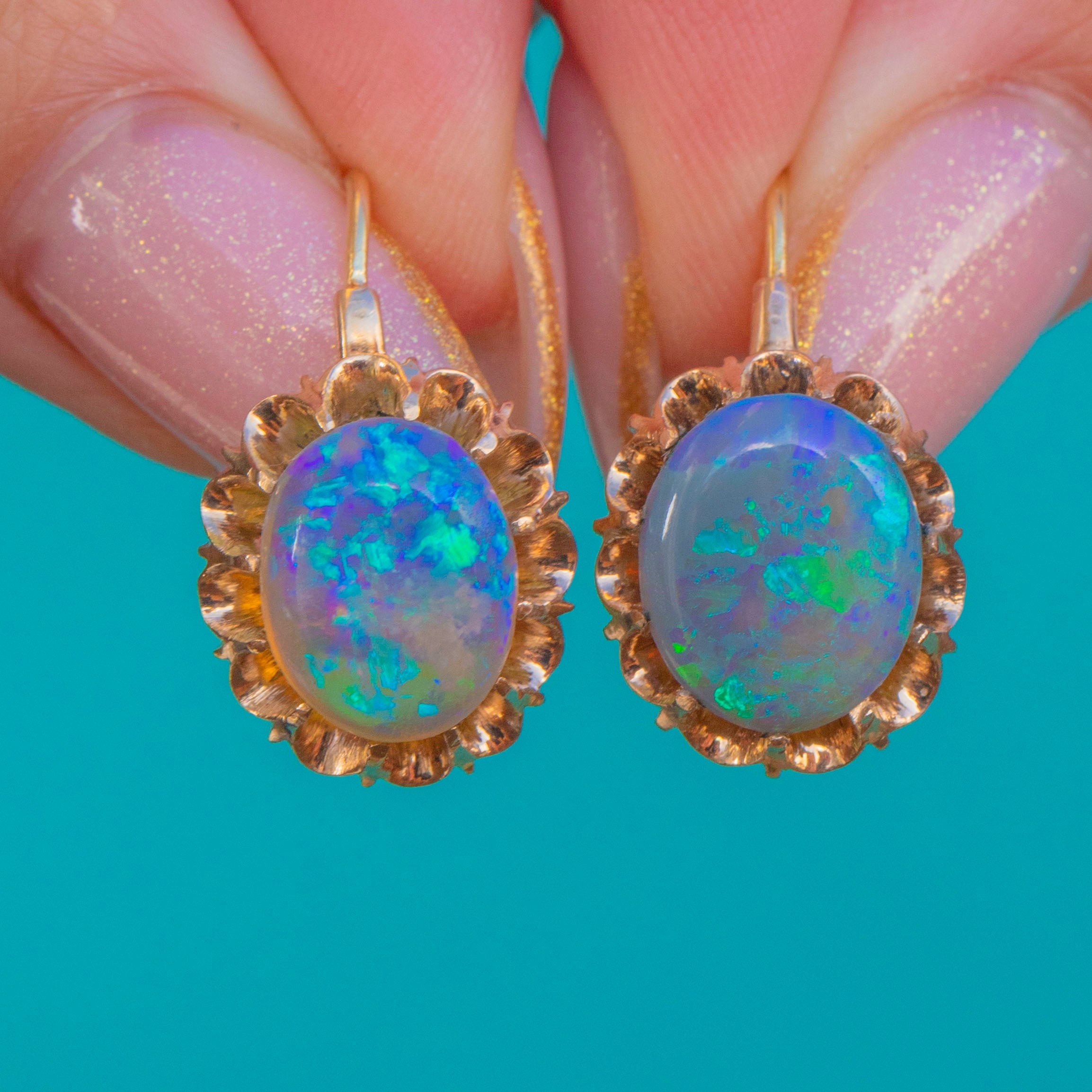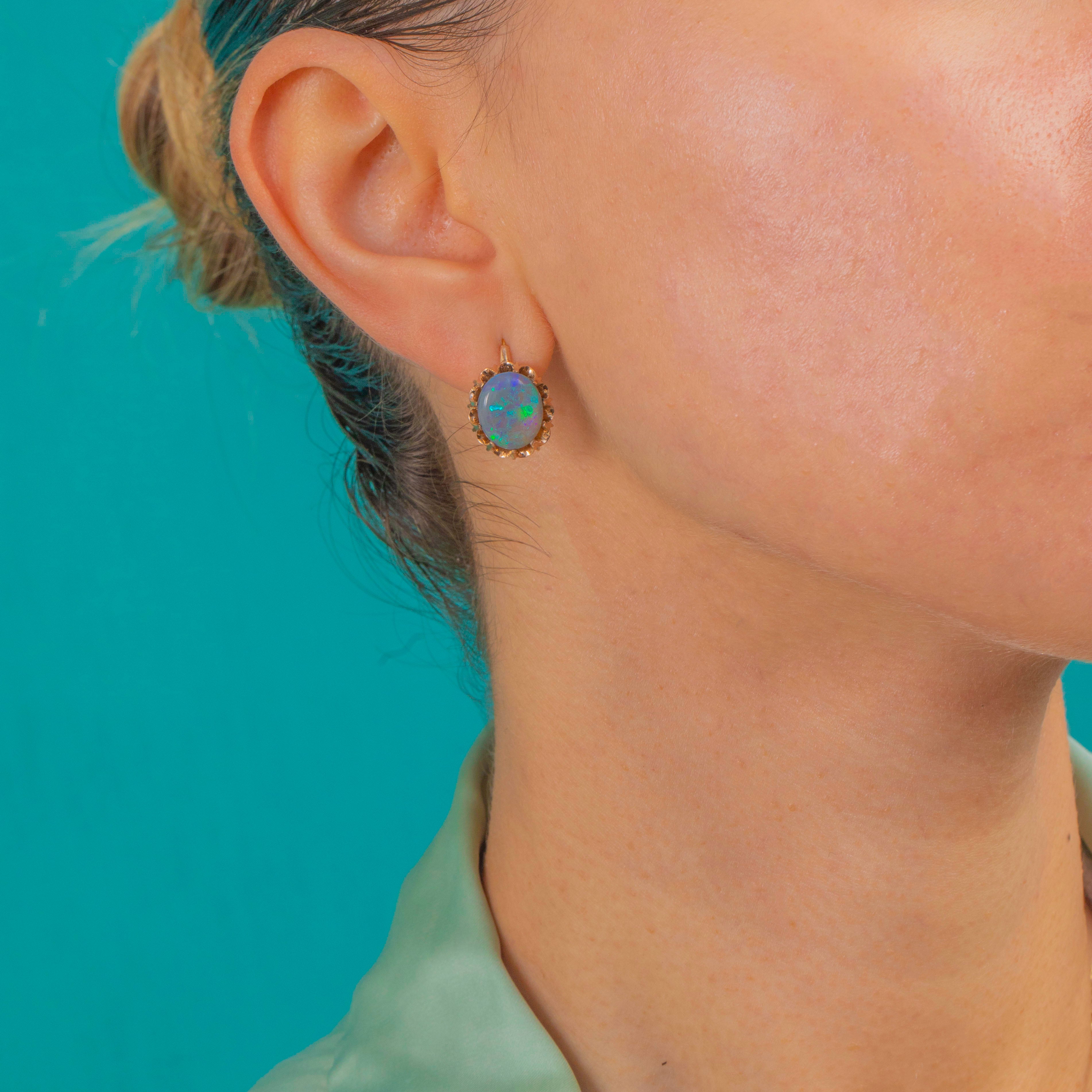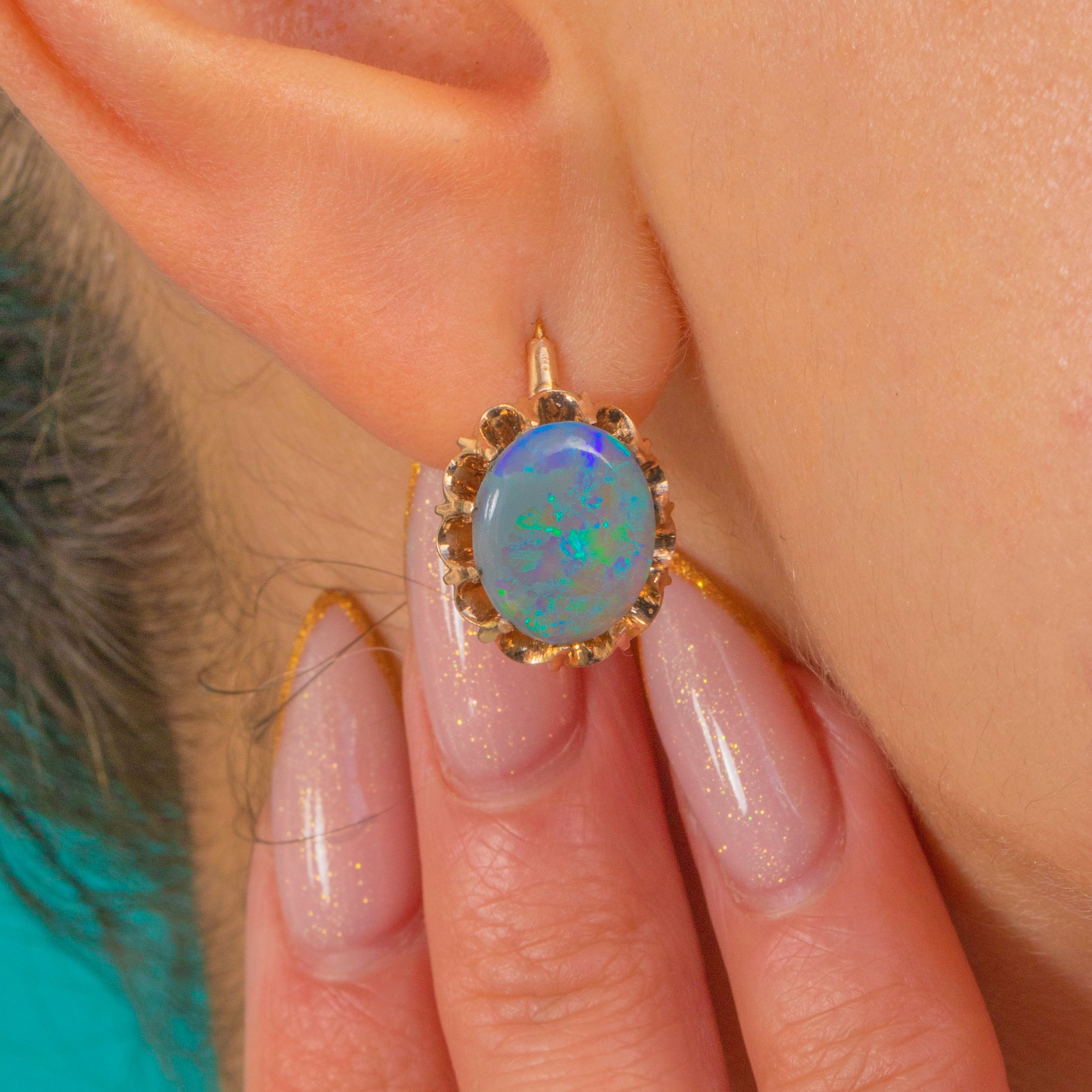 Victorian Boucles d'oreilles en or 15ct avec opale noire vers 1900