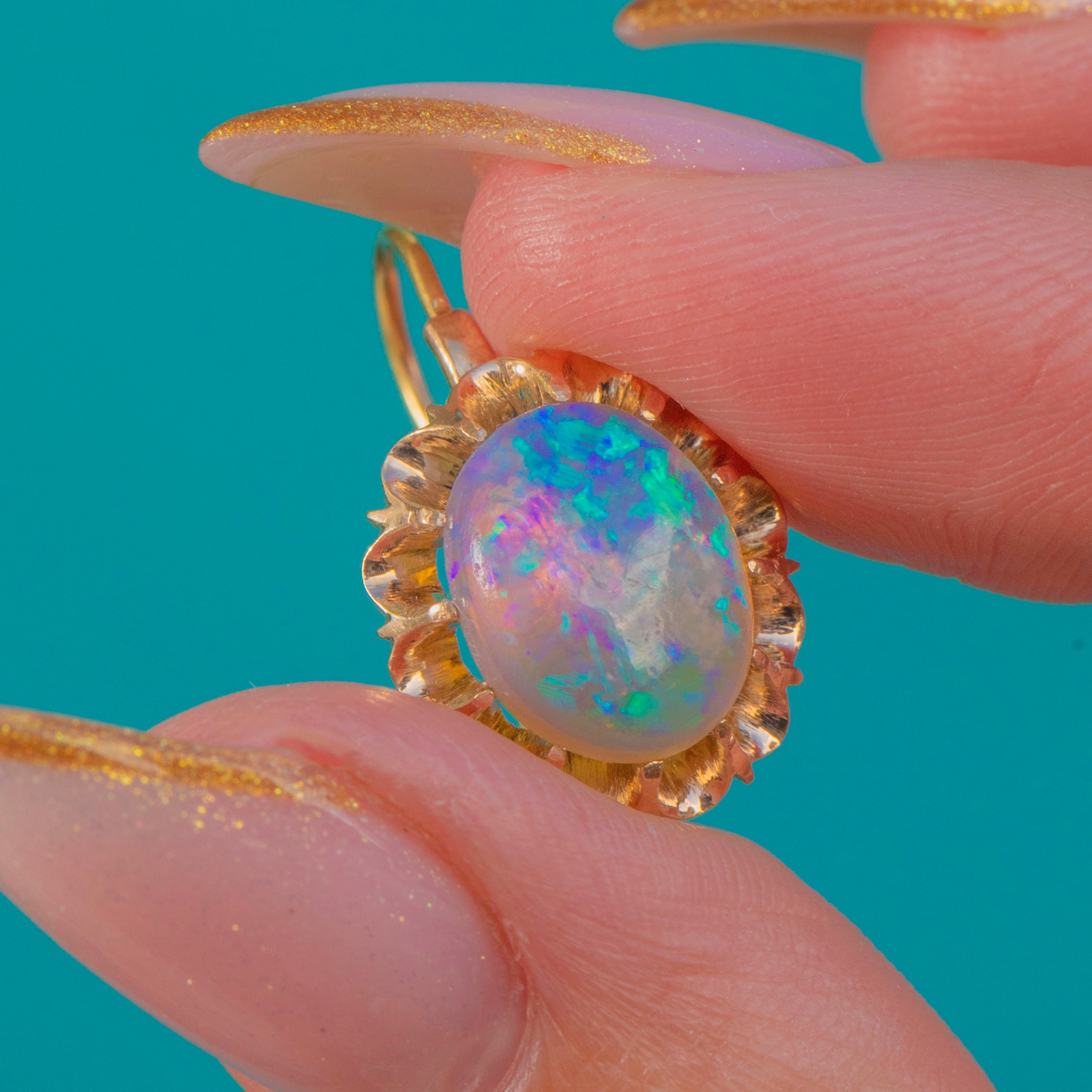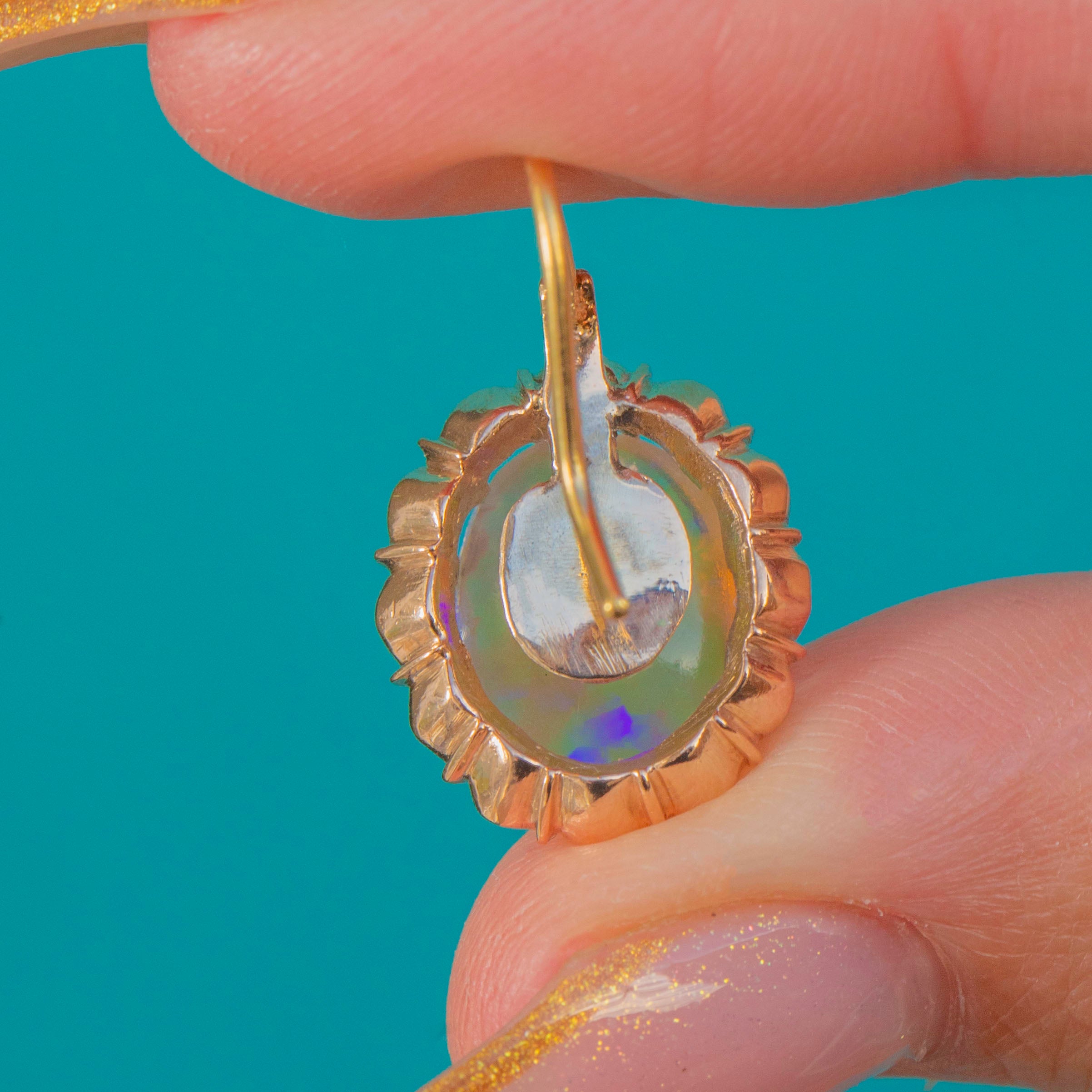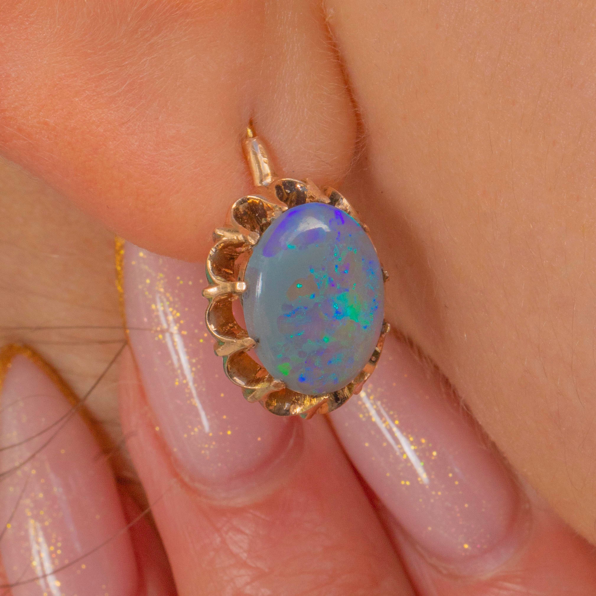 Victorian Boucles d'oreilles en or 15ct avec opale noire vers 1900