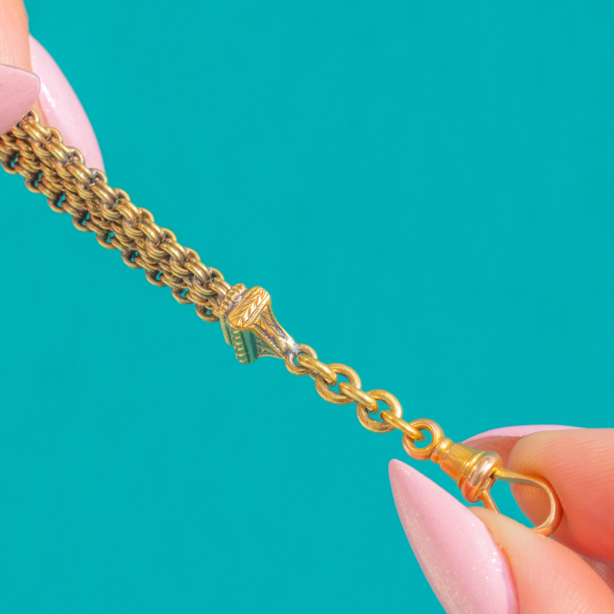 Suspended from a classic dog clip, it’s a wonderfully versatile treasure—ready to glide onto an Albert chain, watch chain or your favourite necklace for a dash of antique grandeur.