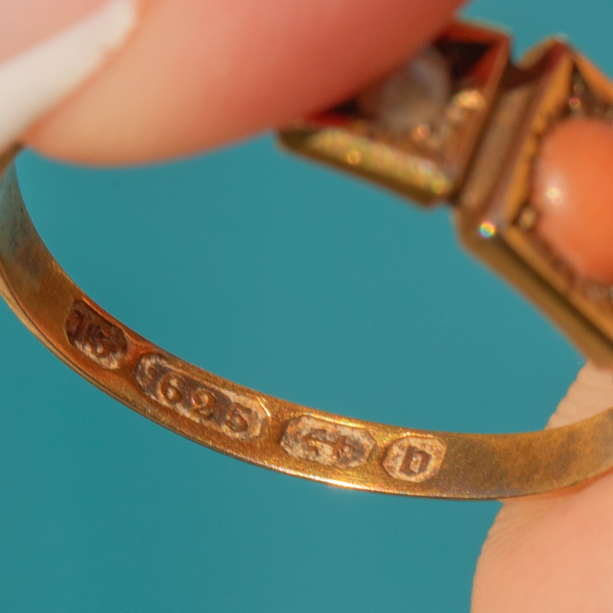 Crafted from rare 15ct Gold and with a complete set of English hallmarks dating this piece to 1876, this antique Coral ring will make a highly coveted addition to your collection. The sleek and understated design has a low profile and sits comfortably on the finger, adding a flash of peachy prettiness to your day!
