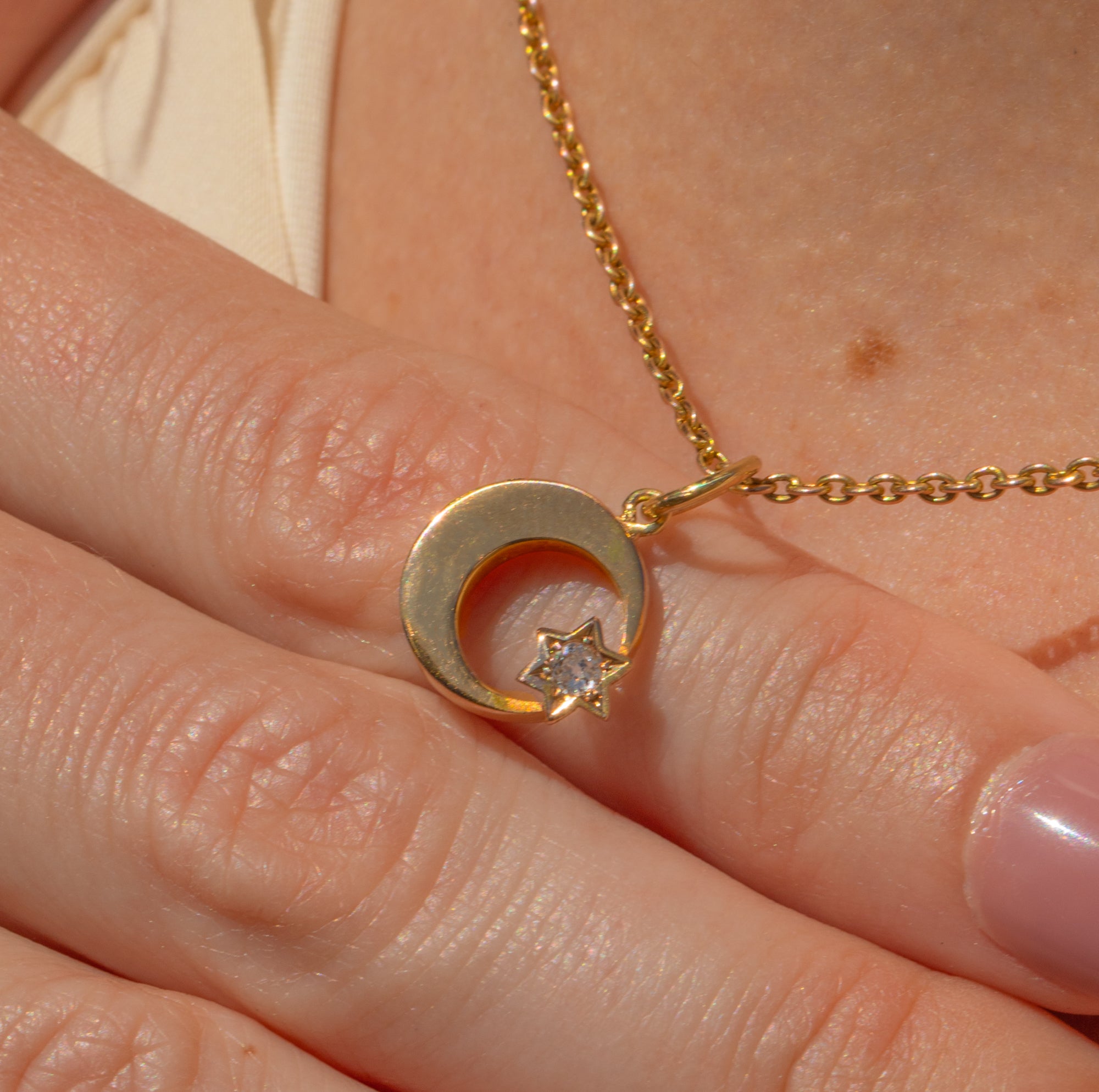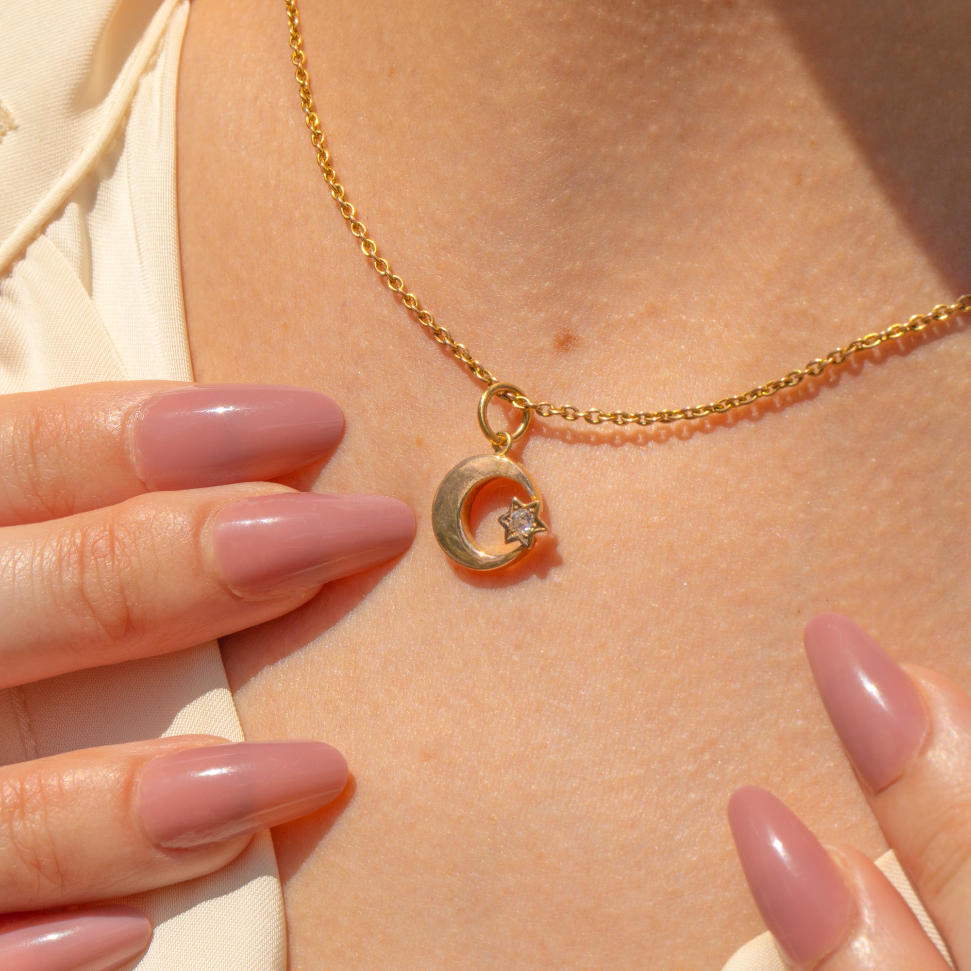 The stars will align the moment you add this sweet Victorian 15ct Gold crescent moon & Diamond star charm to your collection!