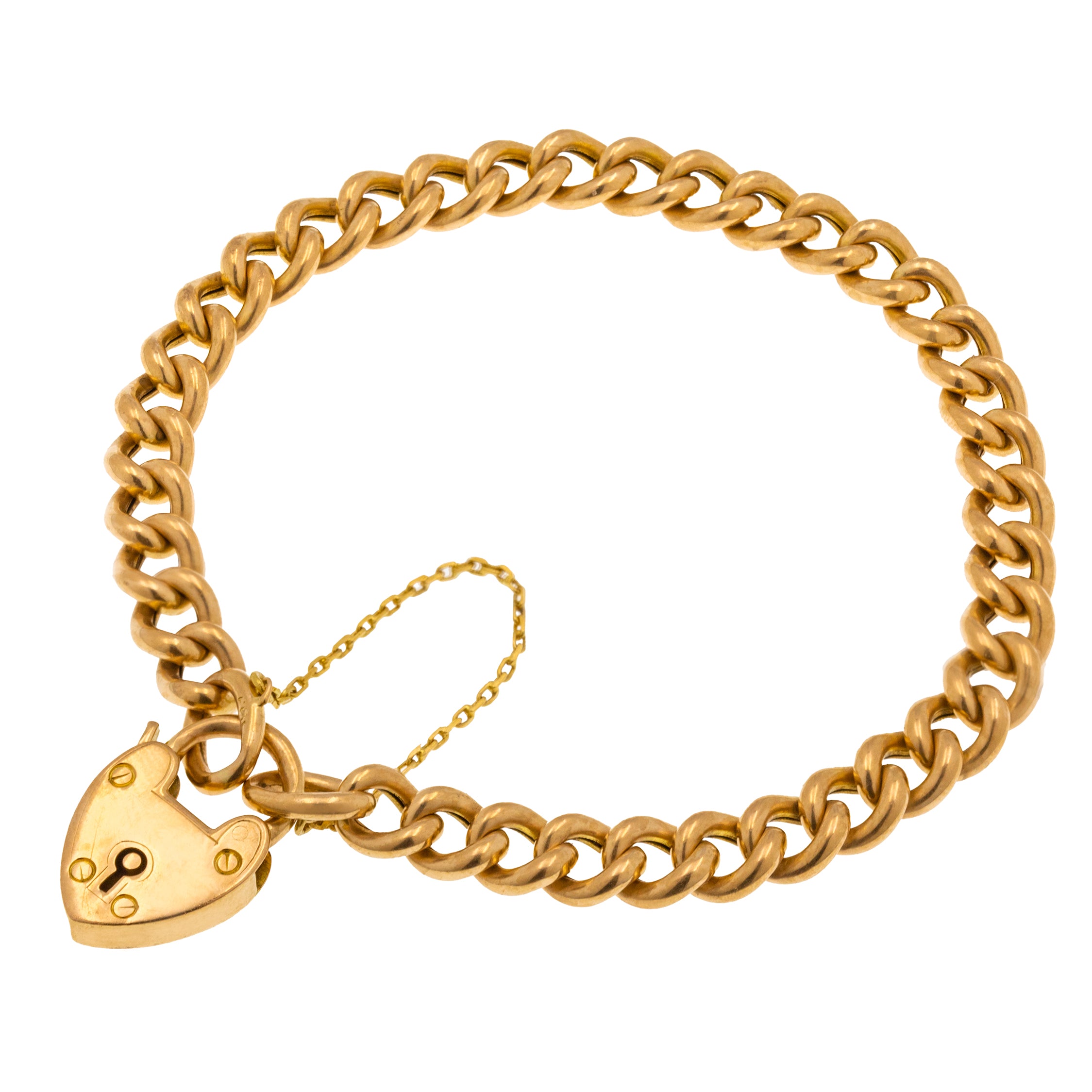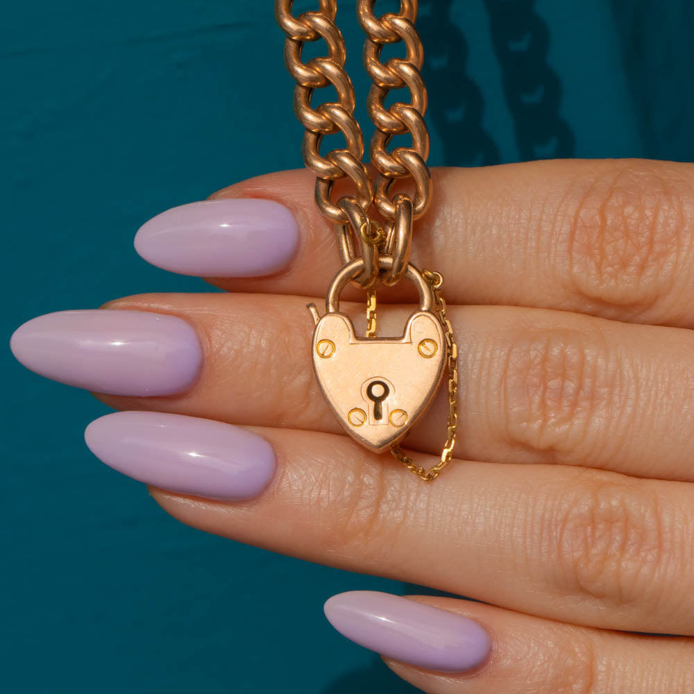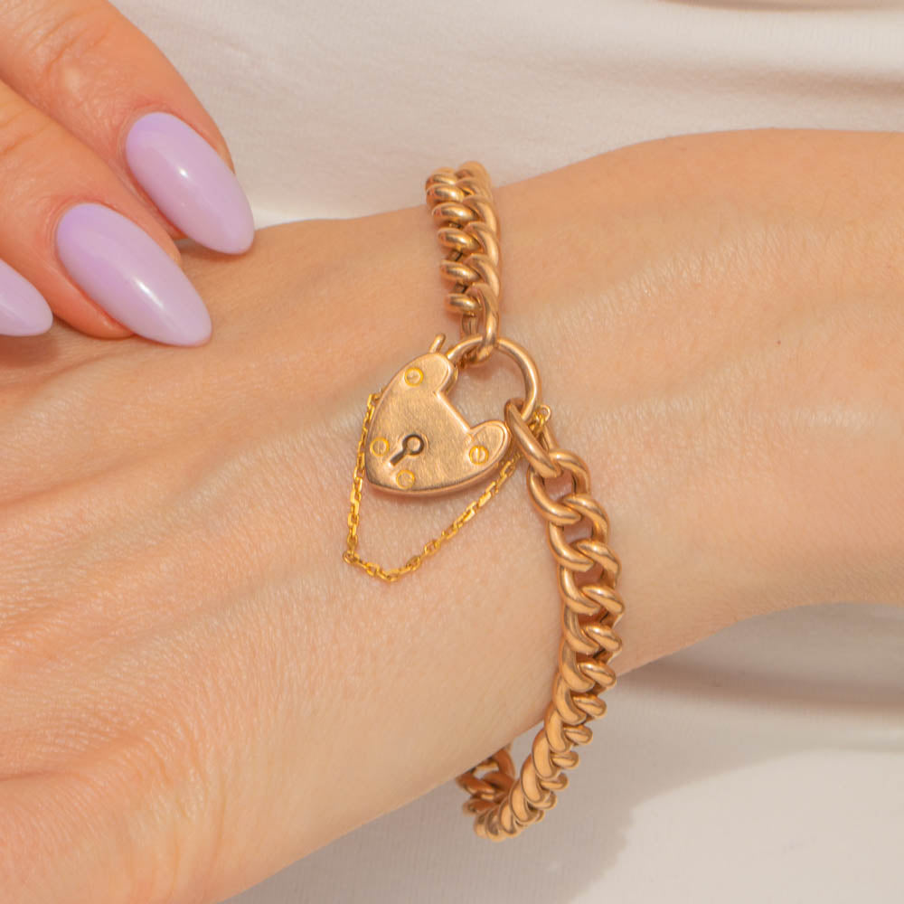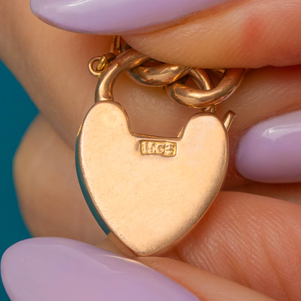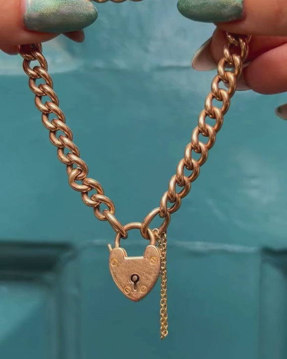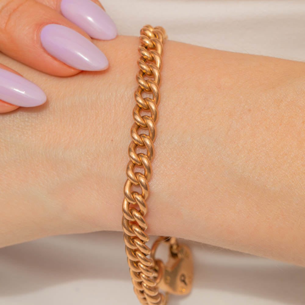 This antique 15ct Gold curb link bracelet is simply sublime! Crafted from solid 15ct Gold, this Victorian Gold bracelet boasts smooth curb links and comes complete with a cute heart padlock.