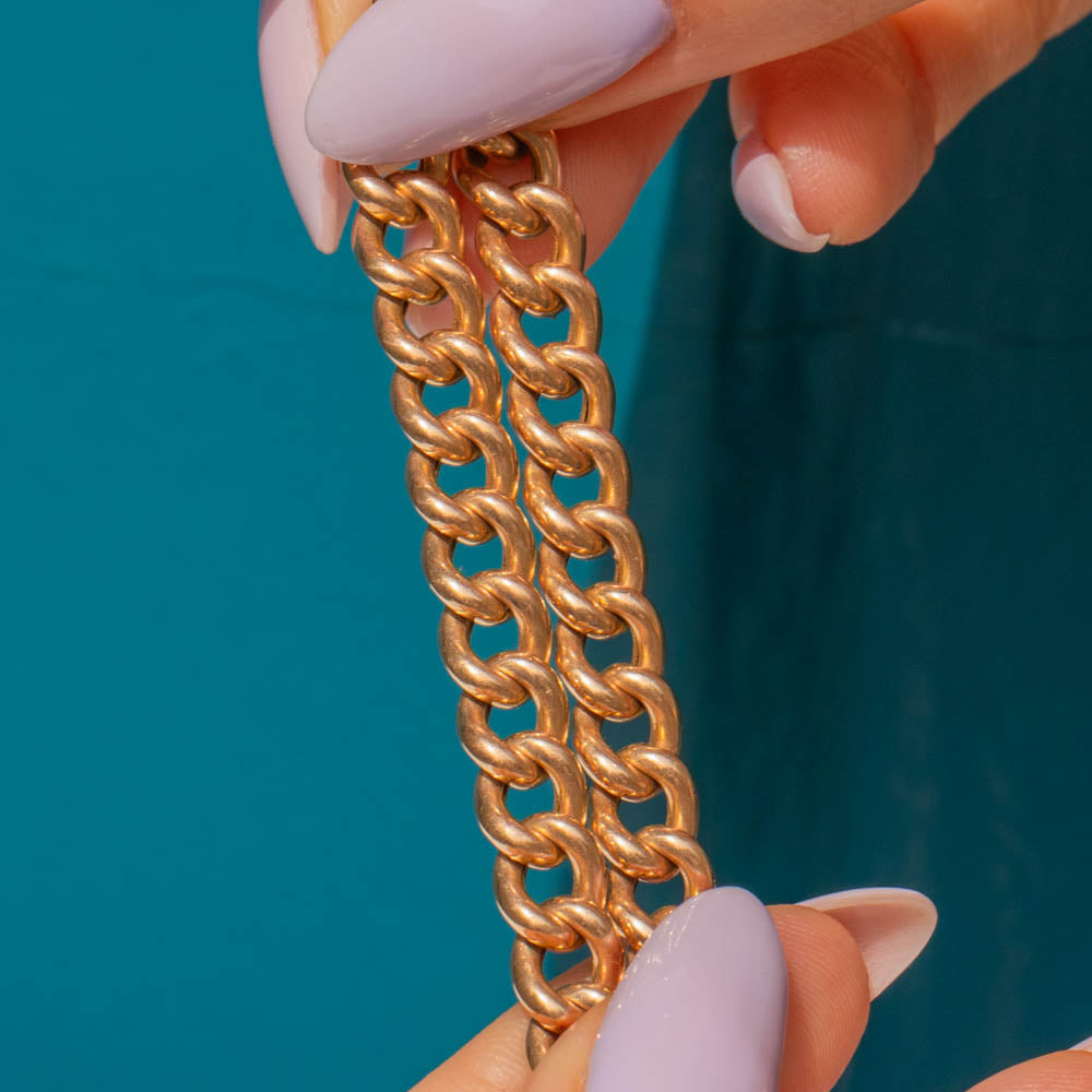 EXCELLENT. This antique 15ct Gold curb link bracelet is absolutely splendid. The Gold is saturated and the links are all secure, a true sign of its exquisite quality.