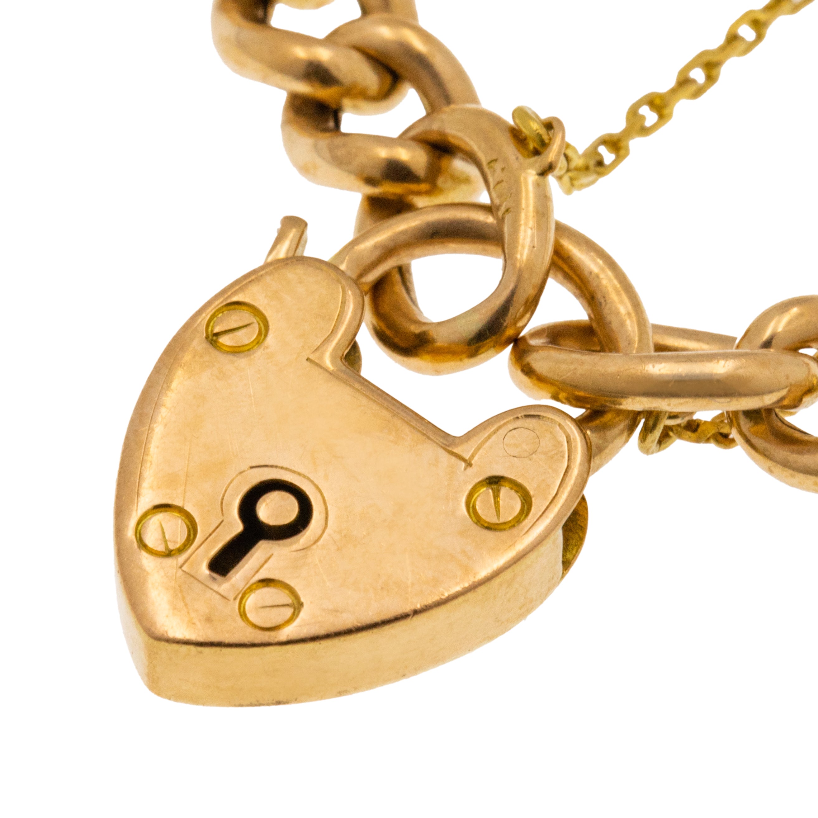 Victorian 15ct Gold Curb Link Bracelet with Heart Padlock, 13.3g