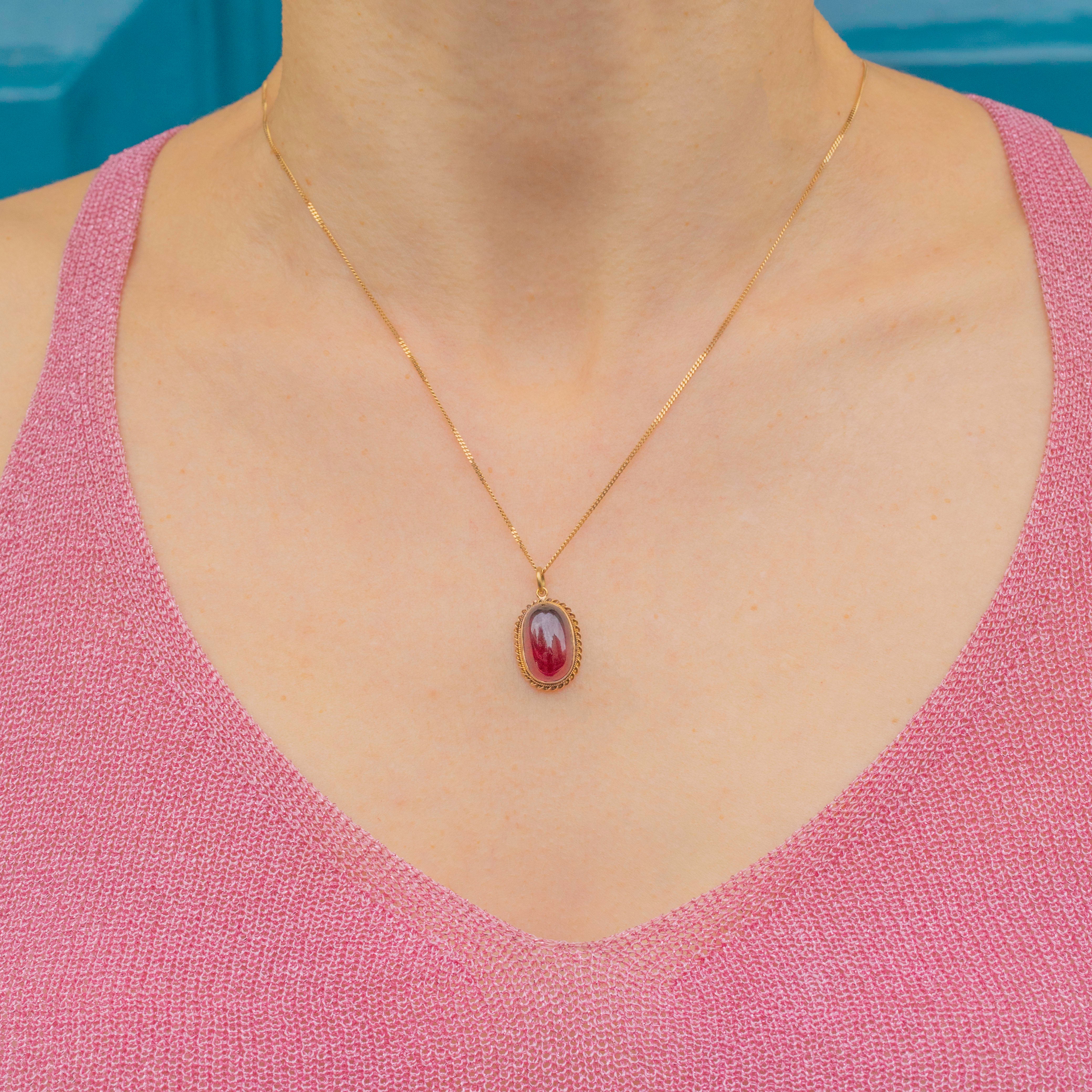 Victorian 15ct Gold Garnet Cabochon Pendant 5.95ct, Rope Border