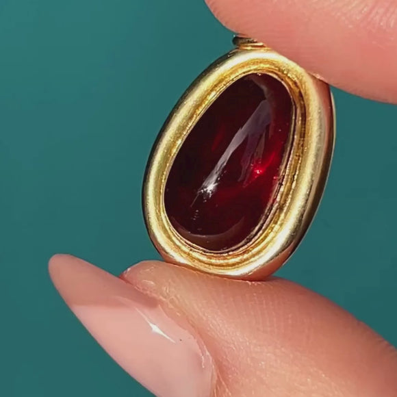 If you are looking for a pendant that packs a punch, then look no further than this Victorian 15ct Gold Garnet cabochon pendant! The smoothly cut 5.95ct Garnet boasts a delicious dark merlot red with flashes of crimson as the light hits.