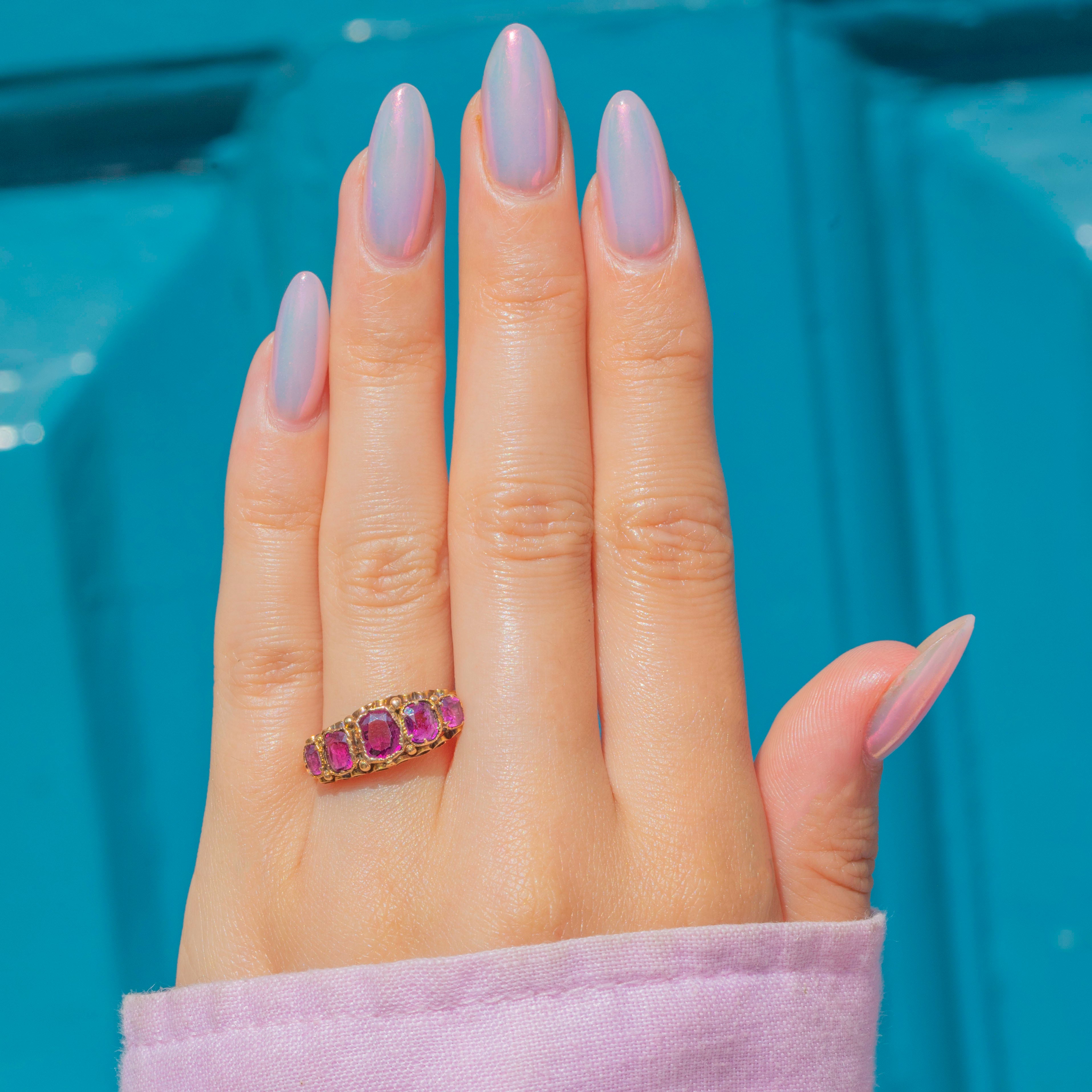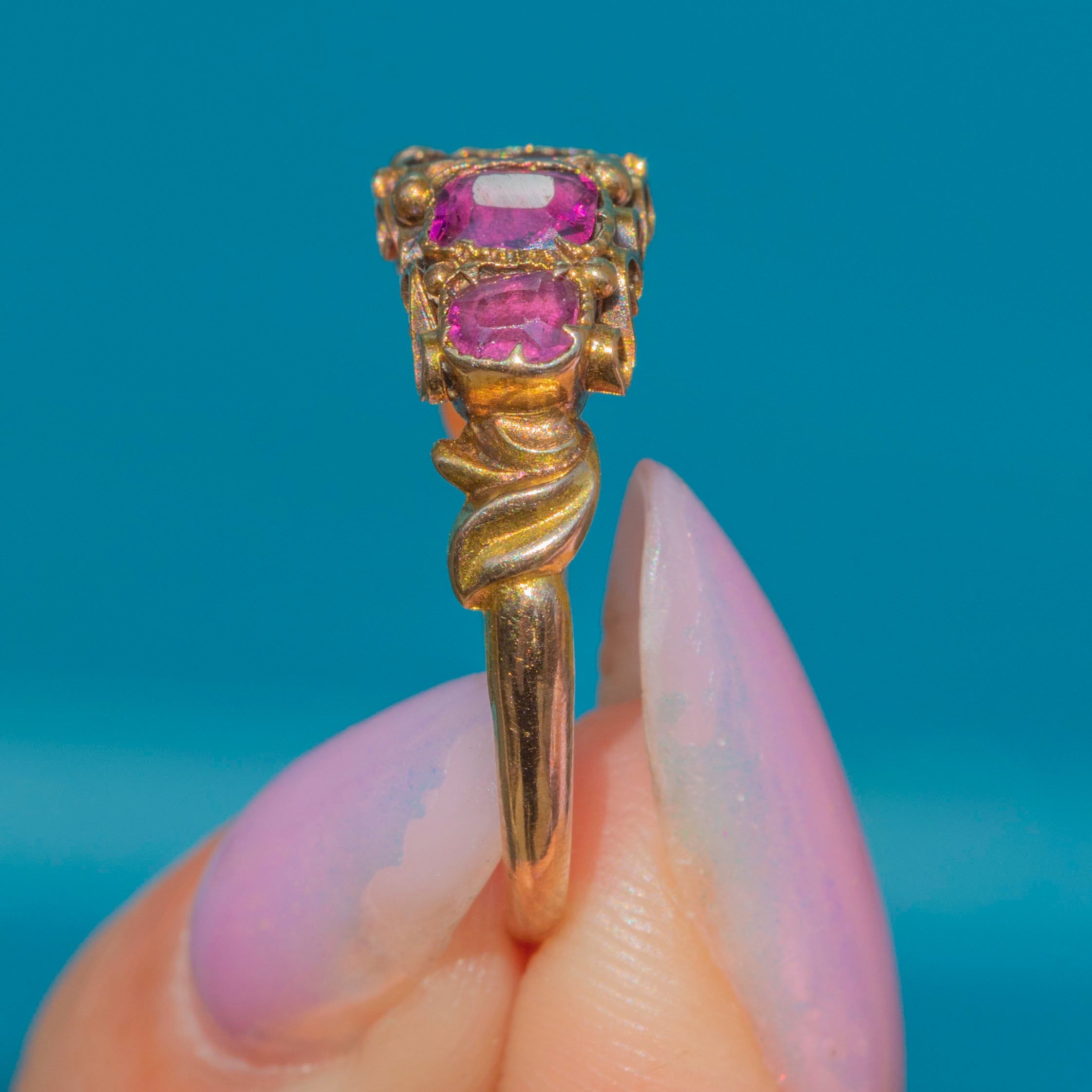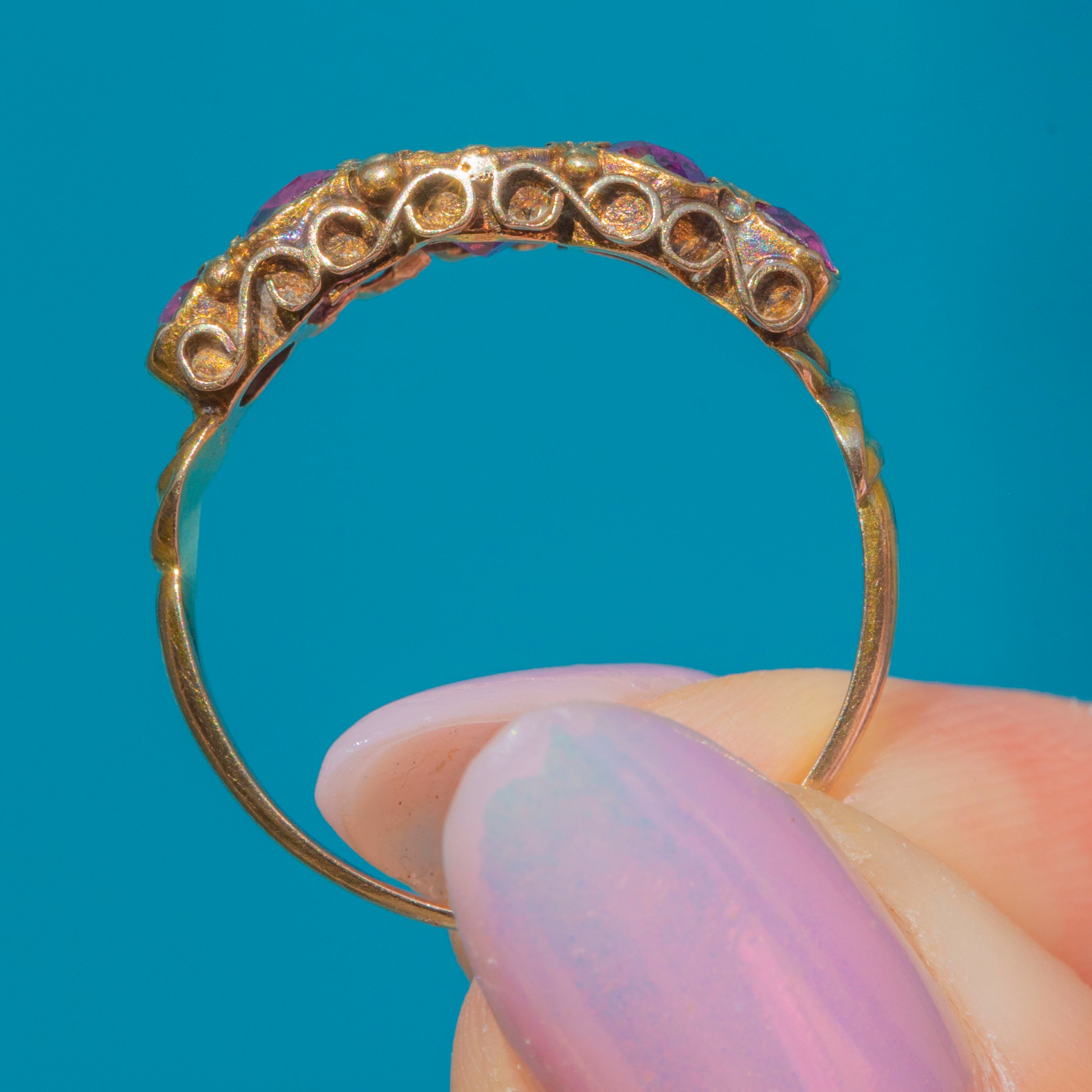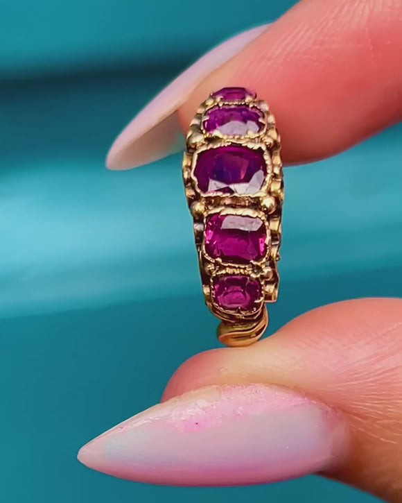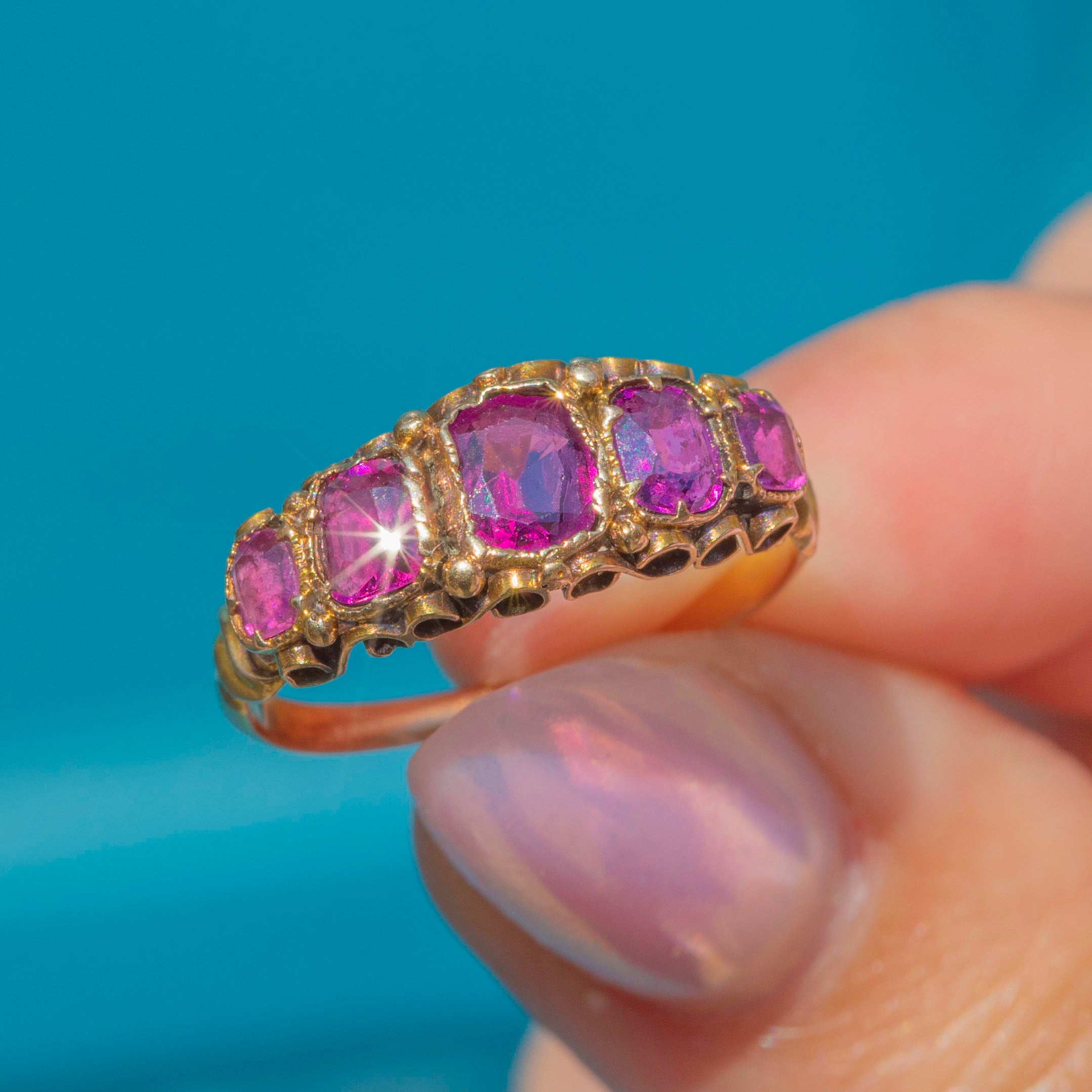 Victorian 15ct Gold Pink Rhodolite Garnet Five Stone Ring, 1.00ct