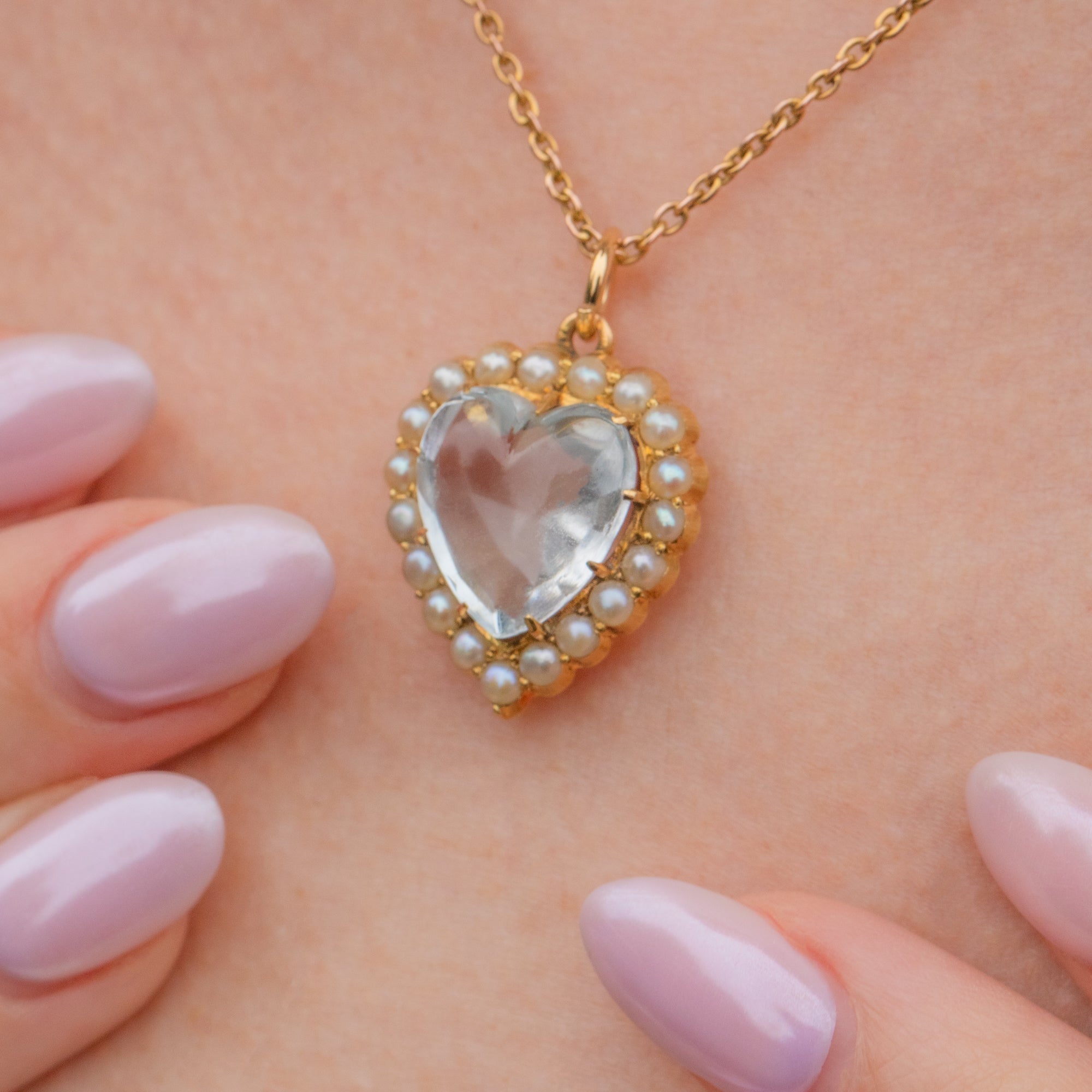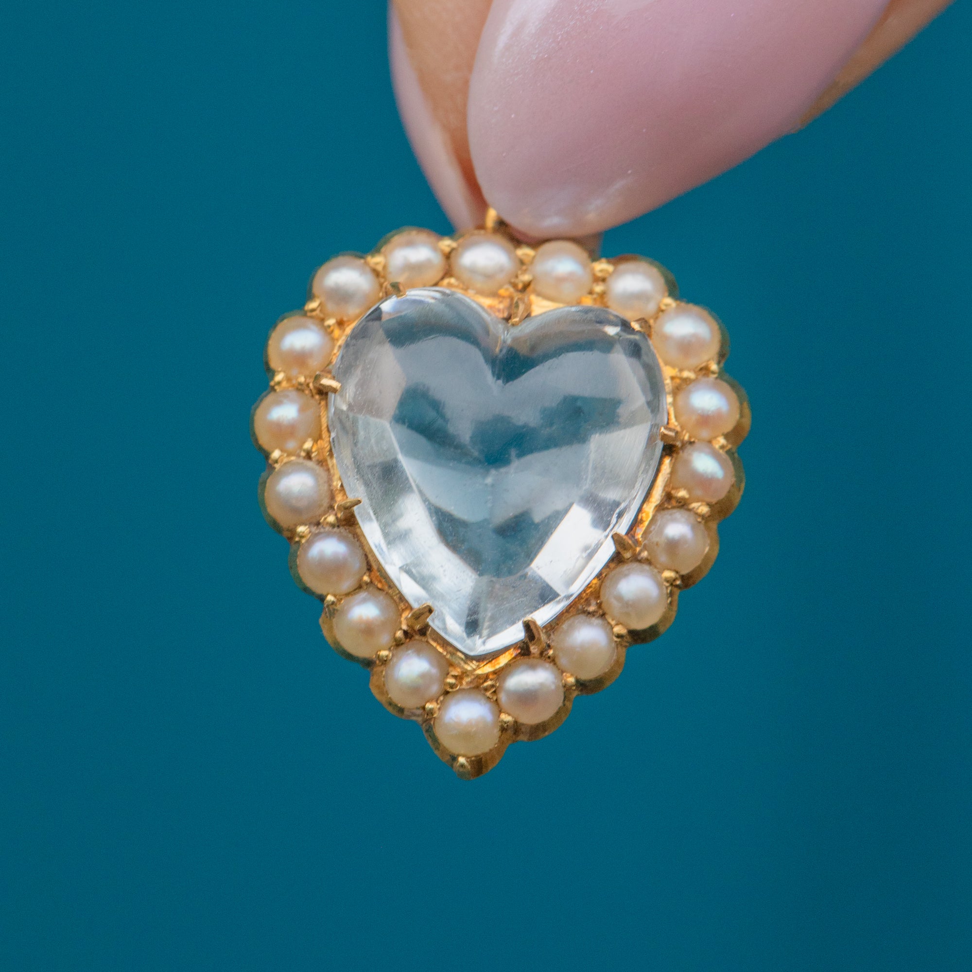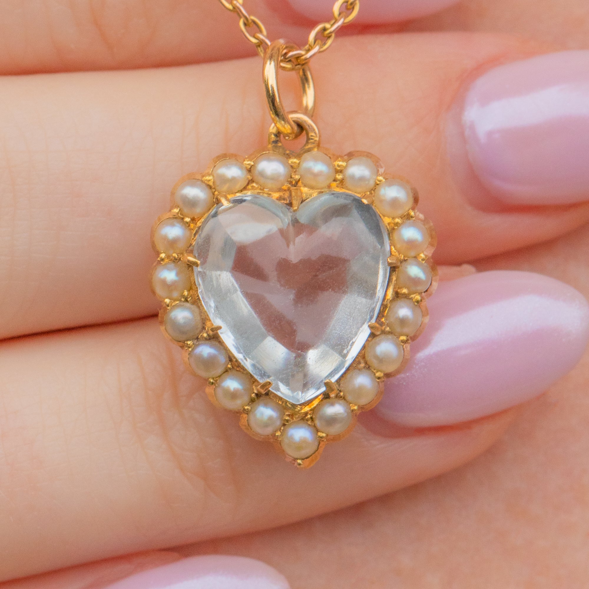 Victorian 15ct Gold Rock Crystal Pearl Heart Pendant, 3.00ct
