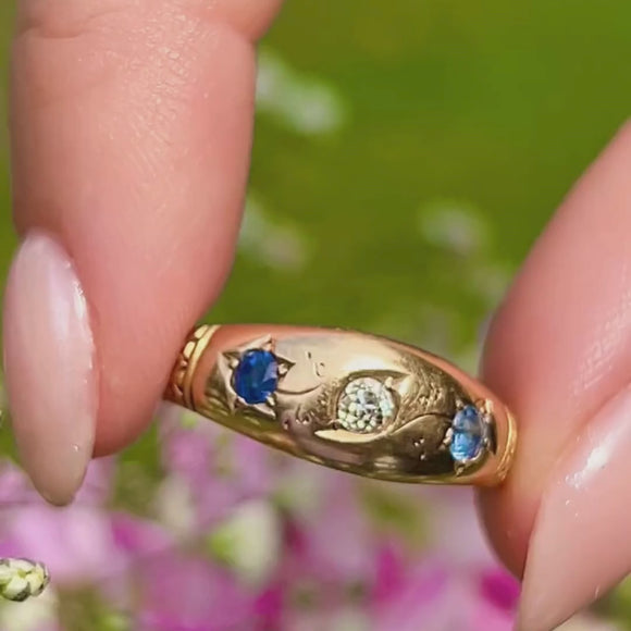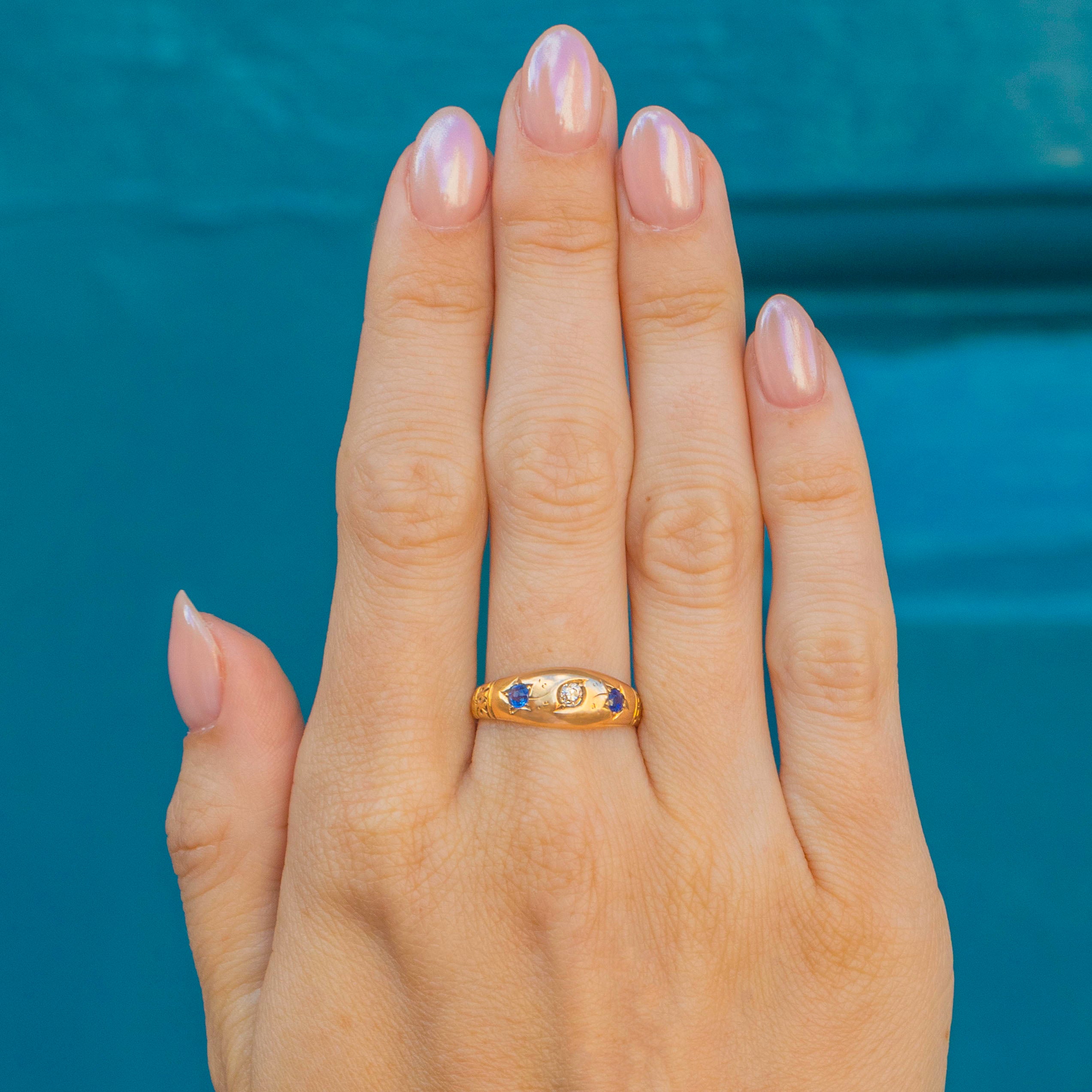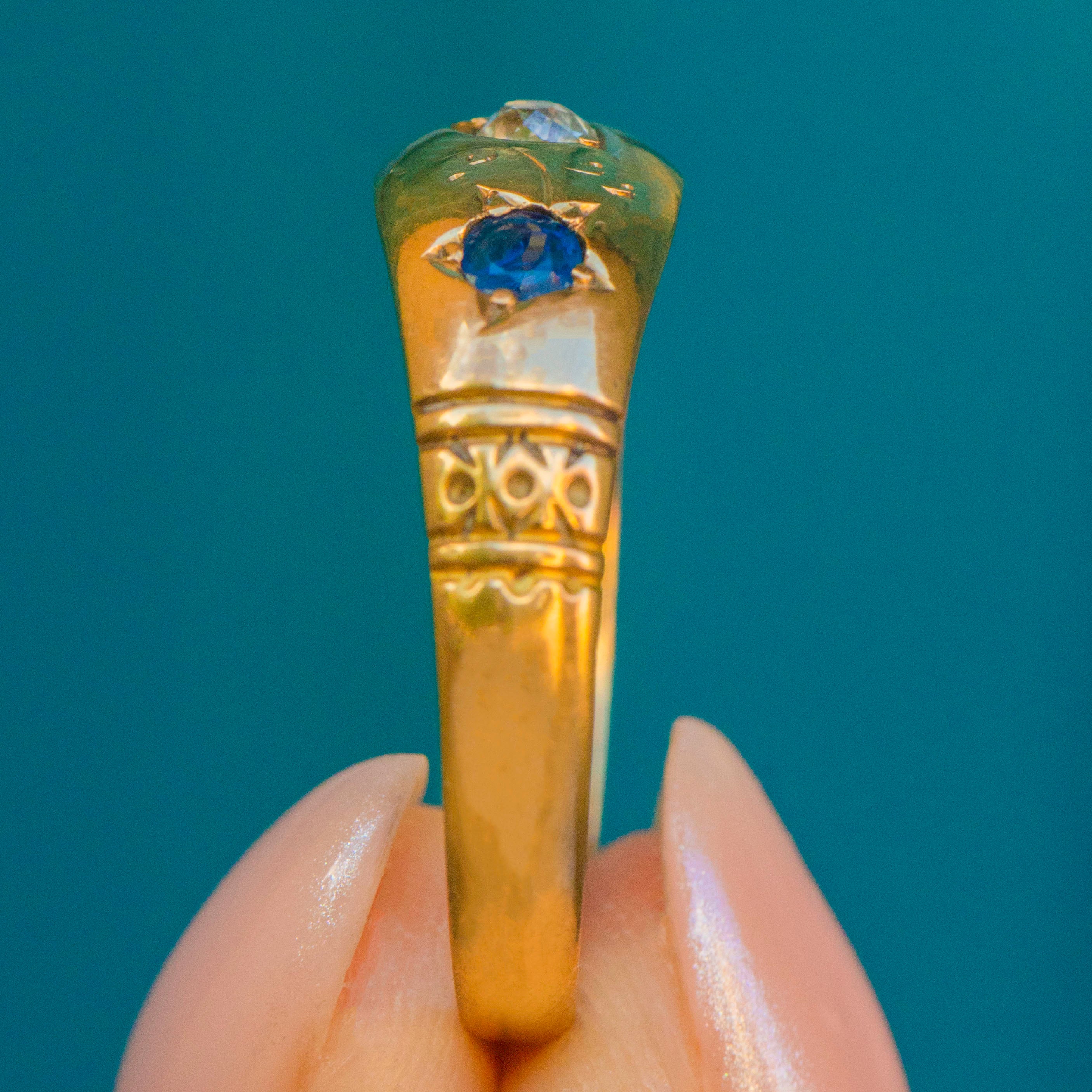 Victorian 15ct Gold Sapphire Diamond Gypsy Ring, c.1896