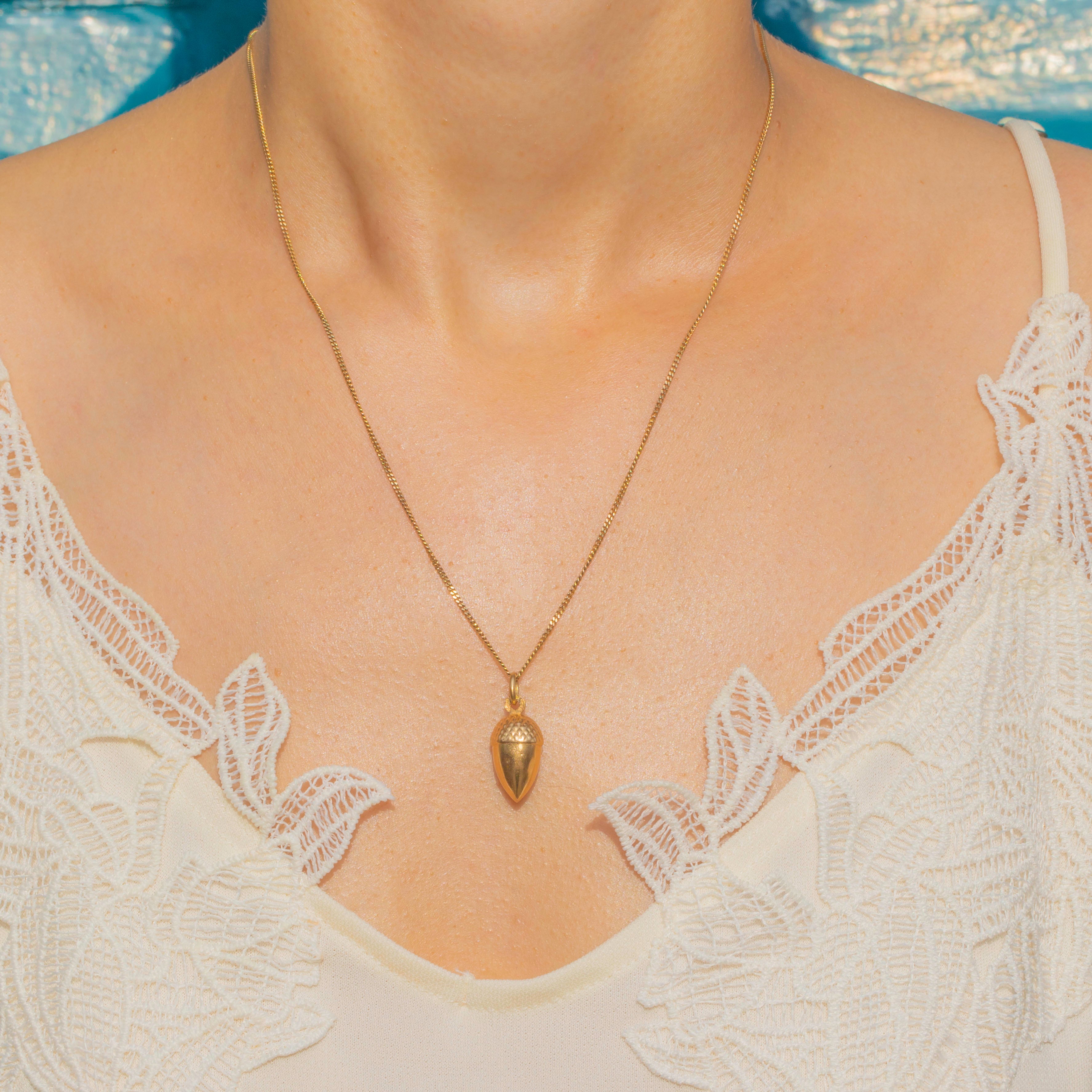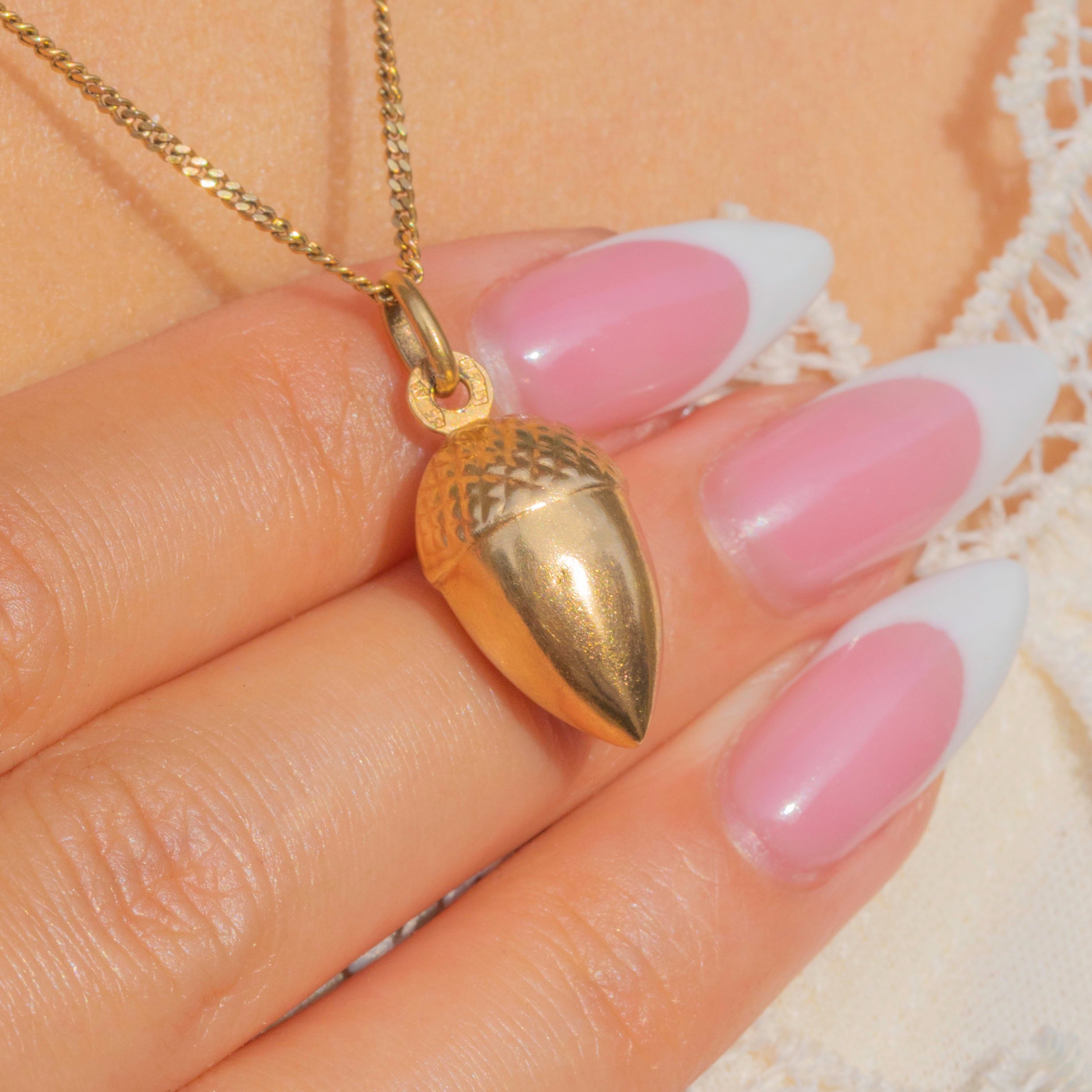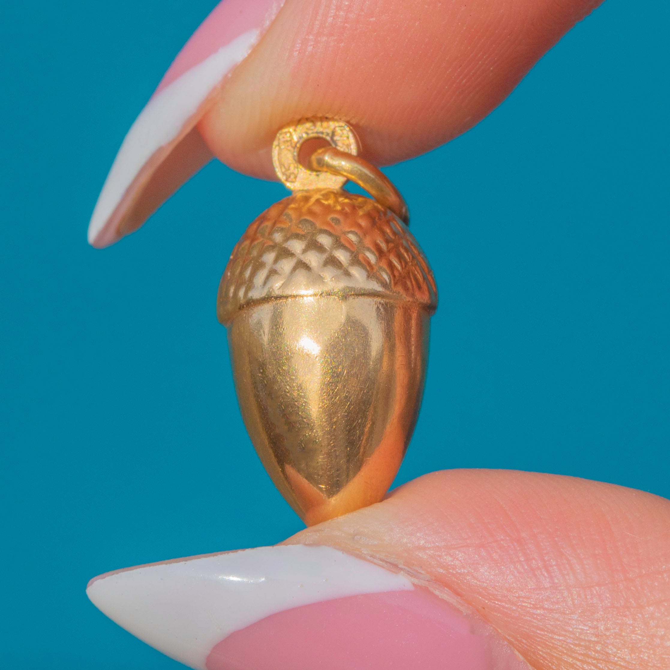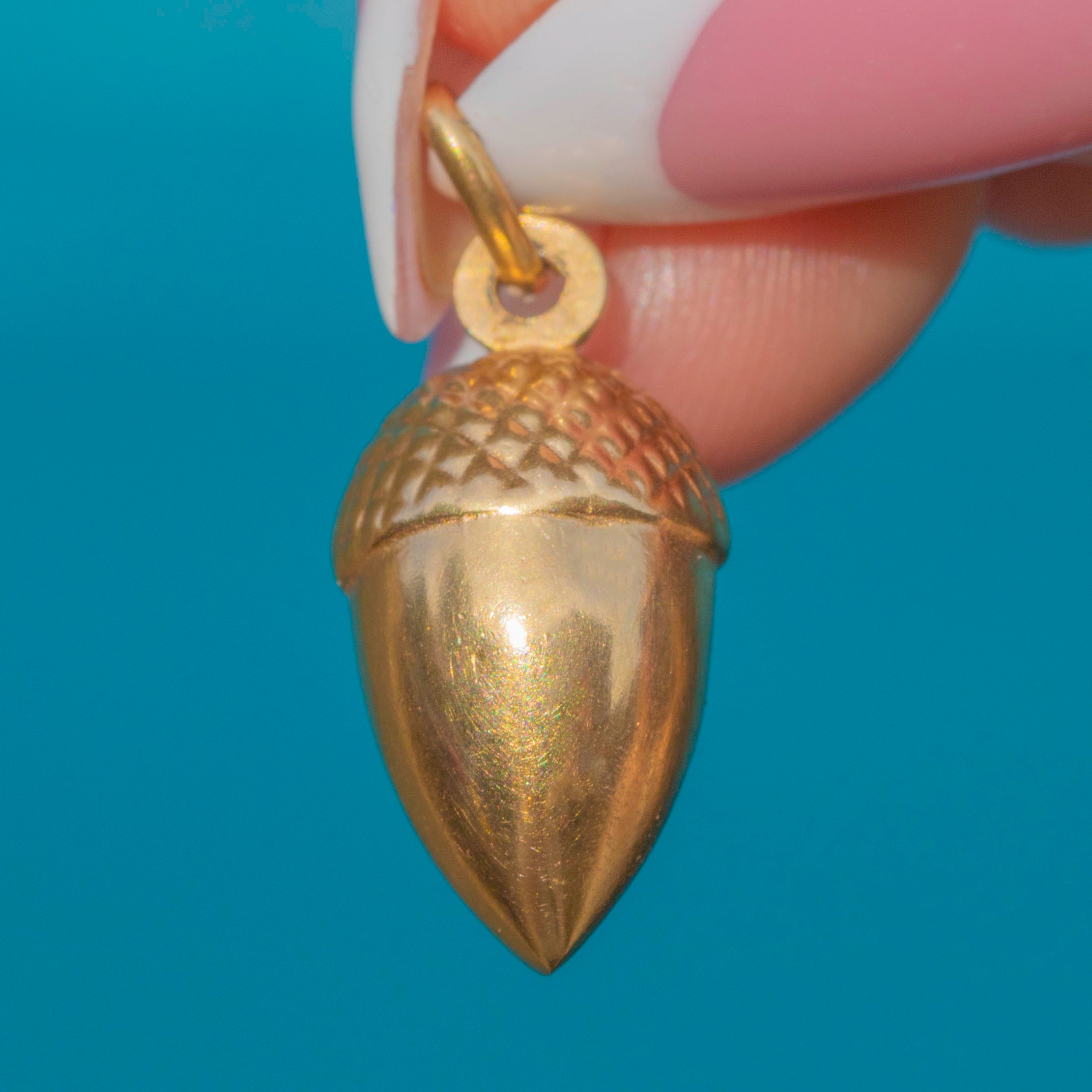 EXCELLENT: This Acorn is in excellent condition, with a smooth, high-polished surface free from scratches or dents. The gold retains its warm, rich glow, and the piece shows minimal signs of wear, reflecting careful use and preservation.