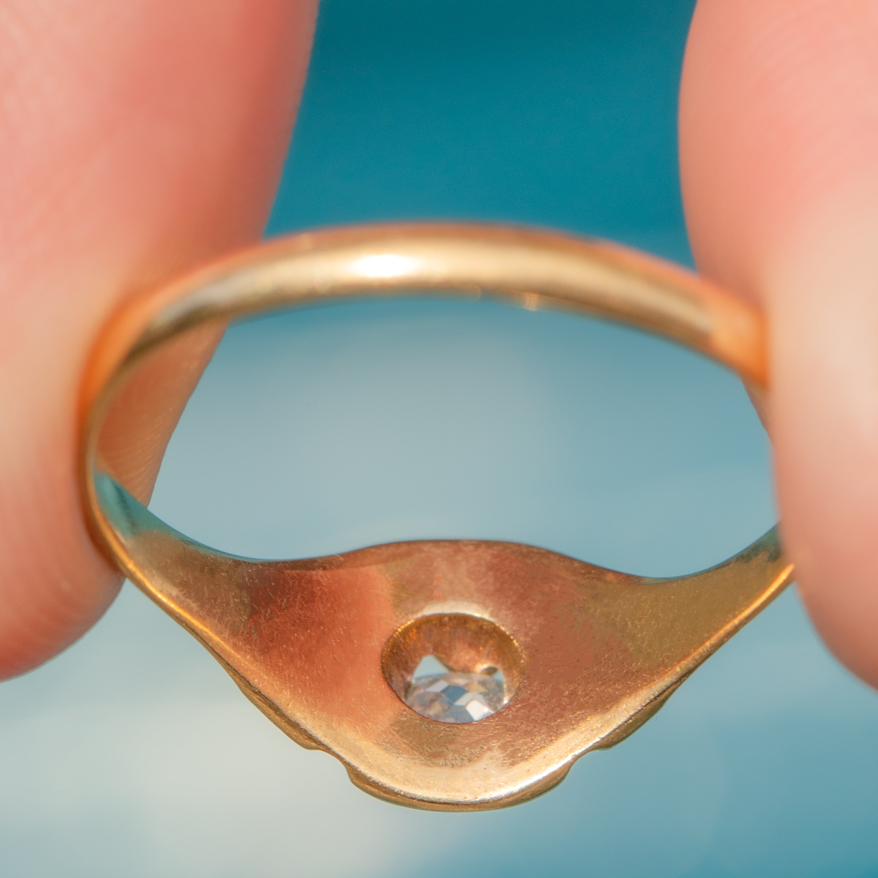 MATERIALS: Tests as 18ct Gold, Old-Mine-Cut Diamond.