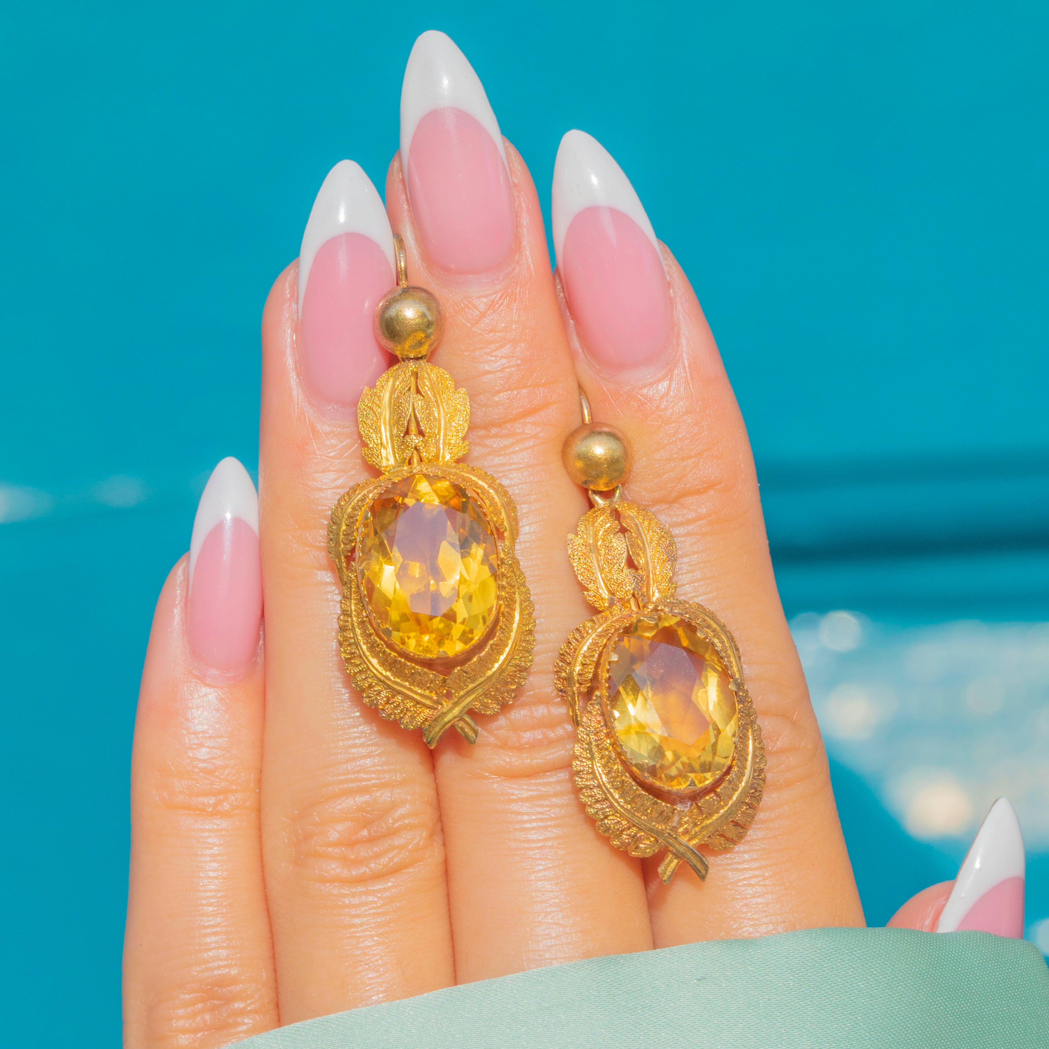 EXCELLENT: The earrings are in outstanding condition with no missing leaves and no chips to the Citrines, preserving their vibrant colour and intricate goldwork.