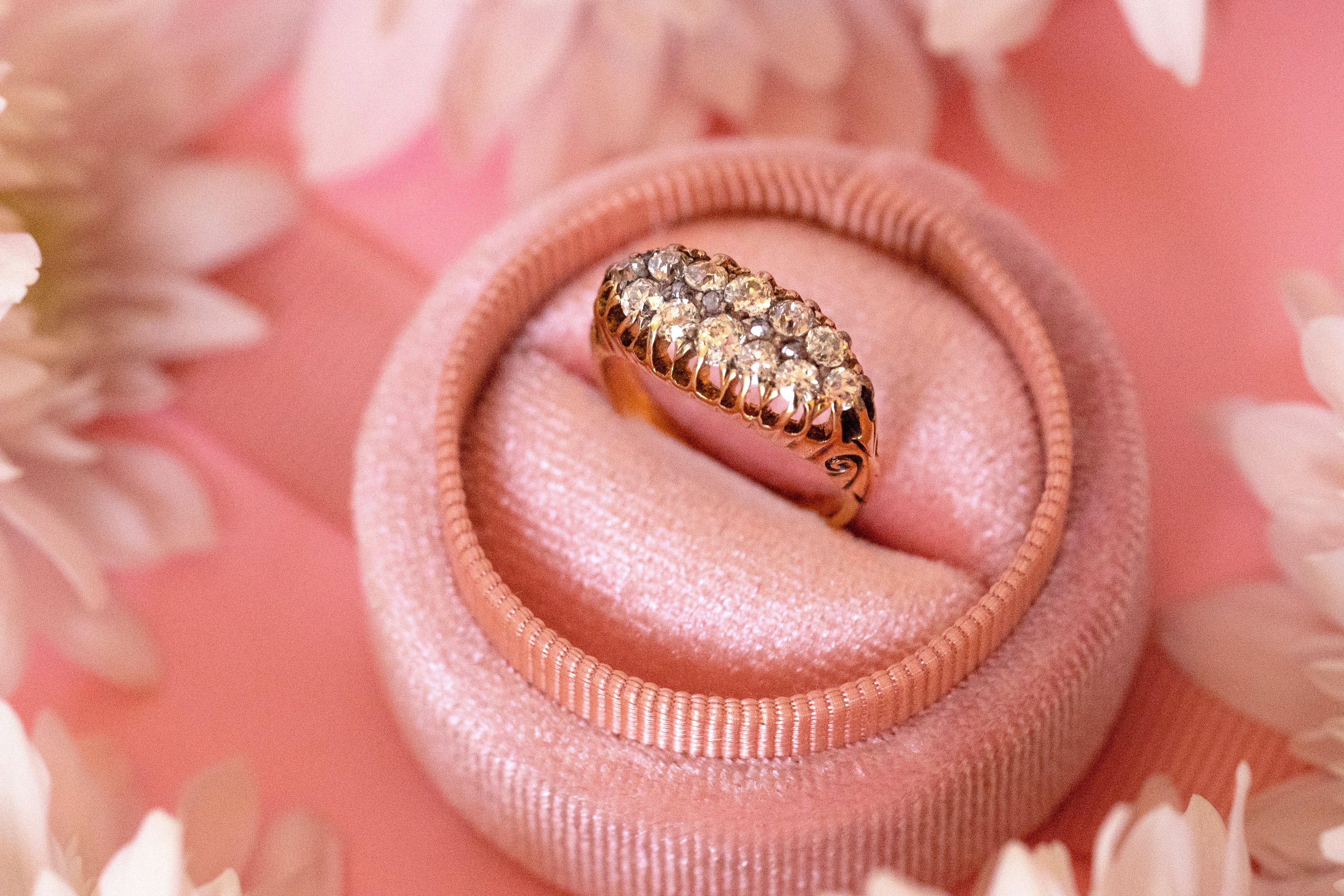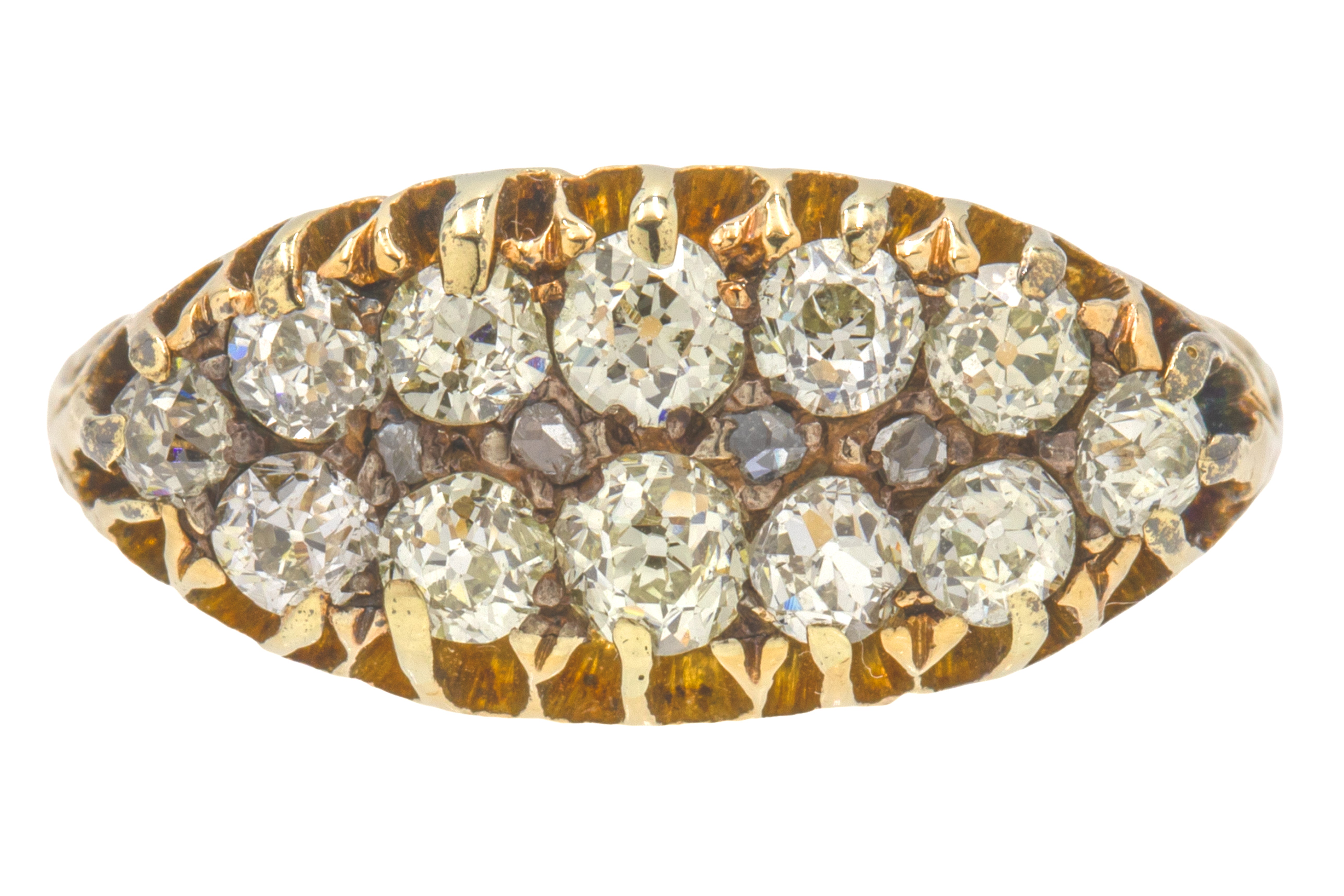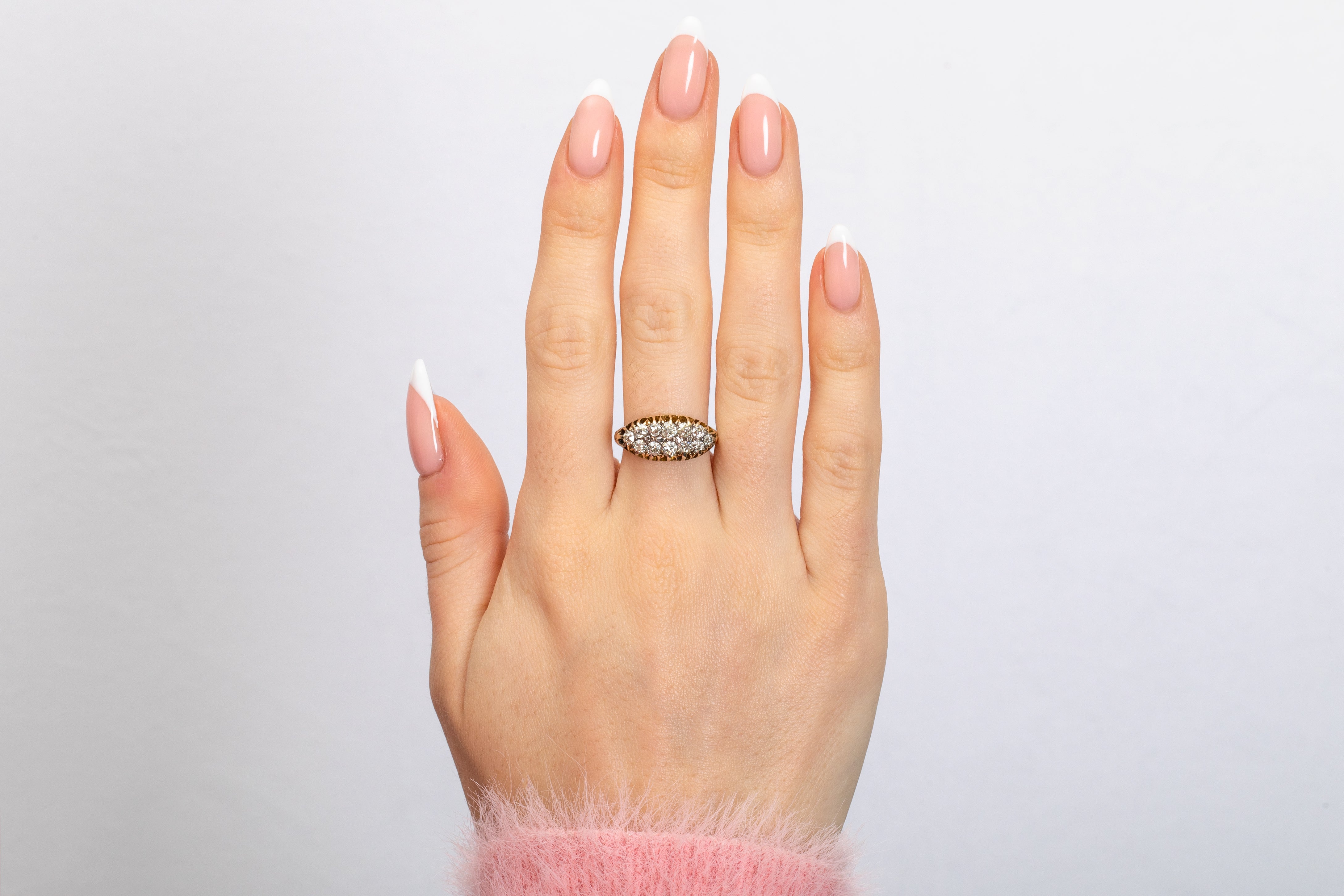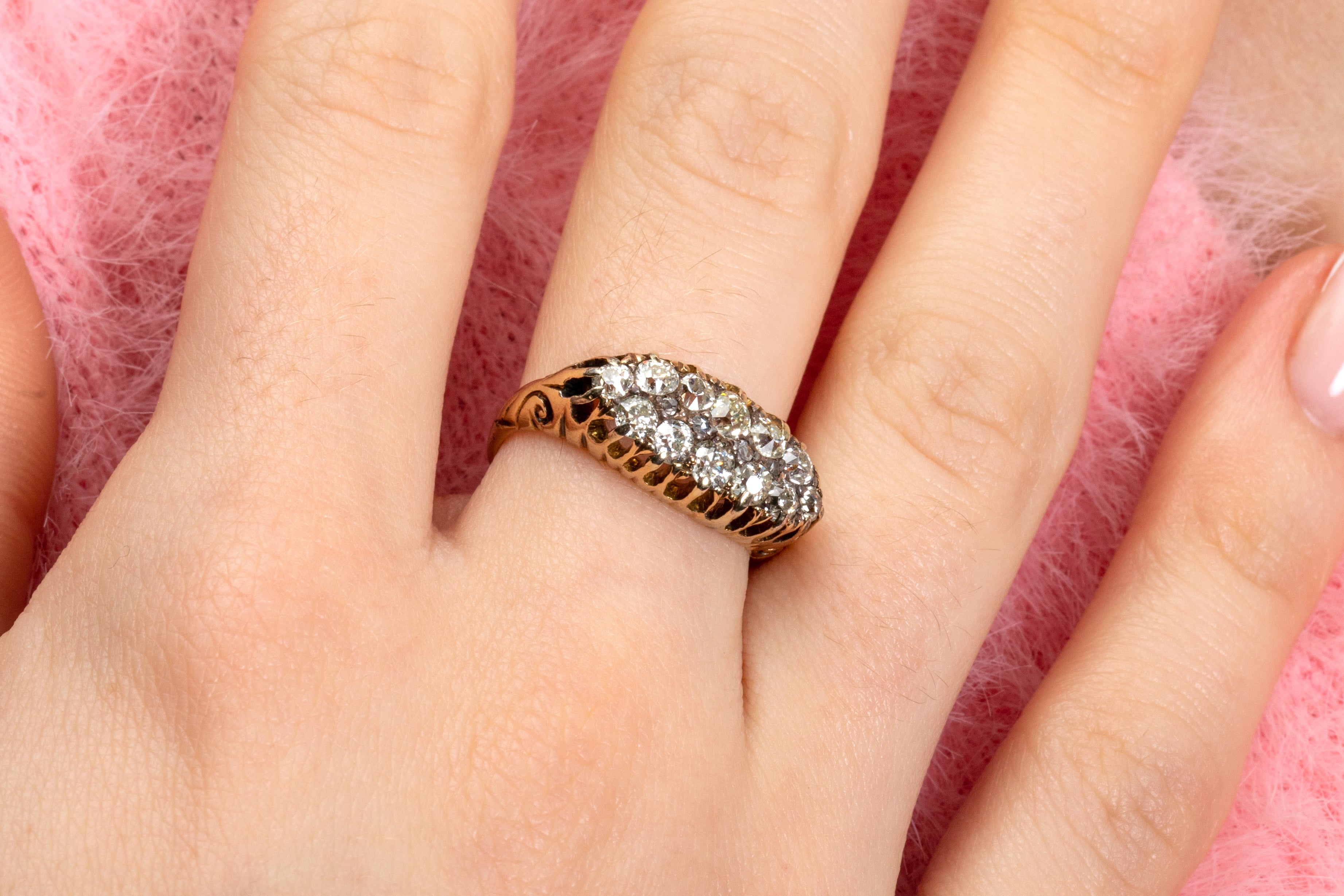 Bague bateau double rang en or 18 carats et diamants victoriens, 0,75 ct