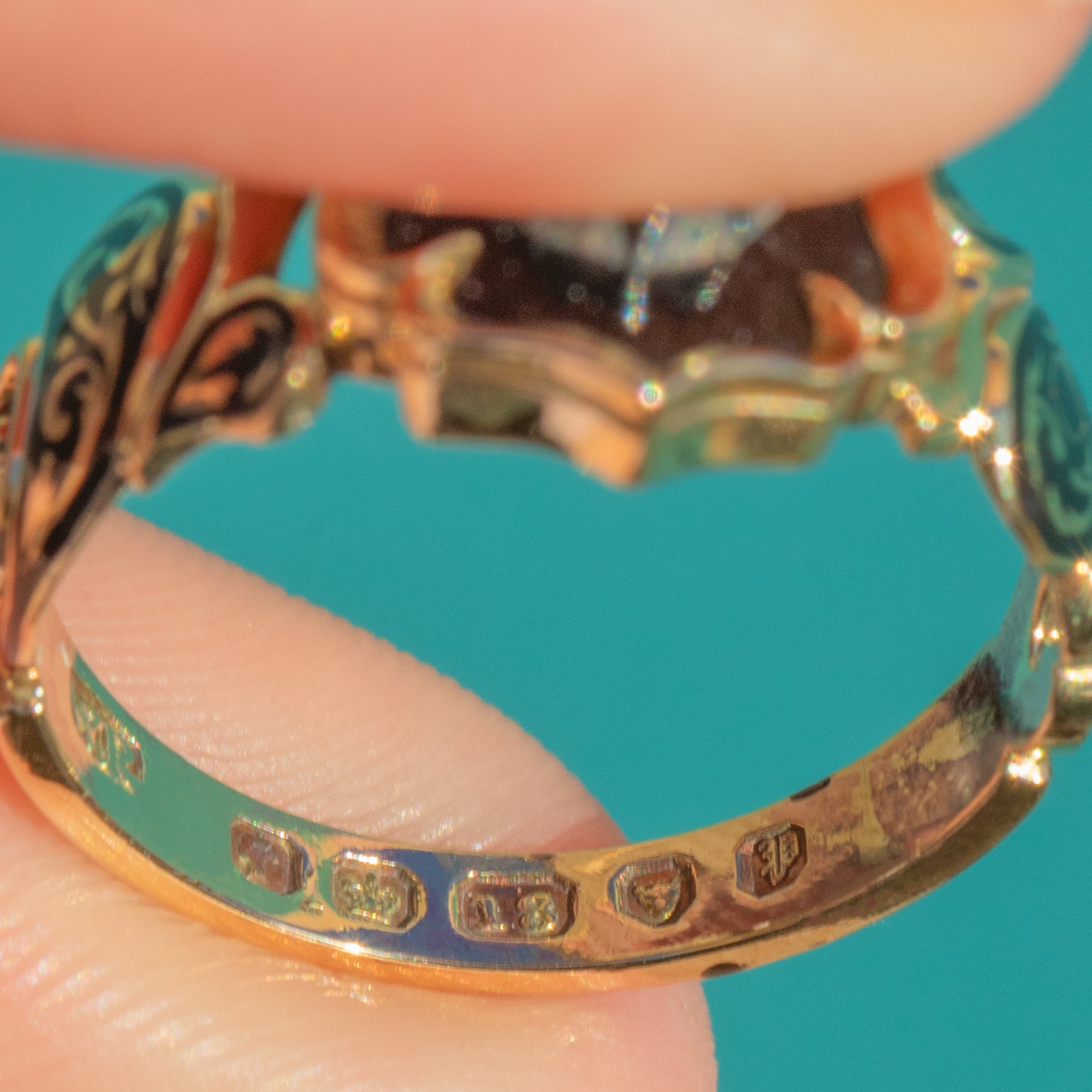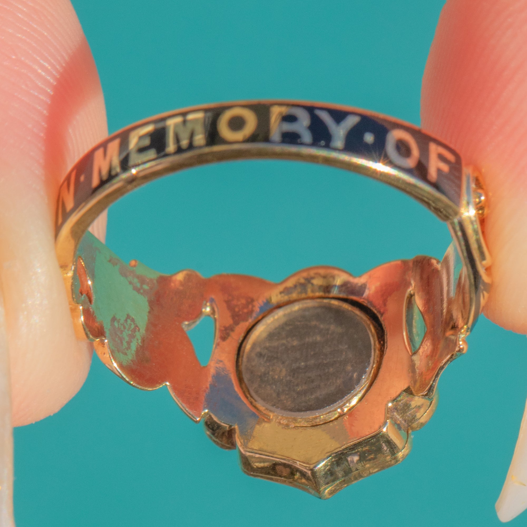 Victorian 18ct Gold Diamond Enamel Mourning Ring c.1850