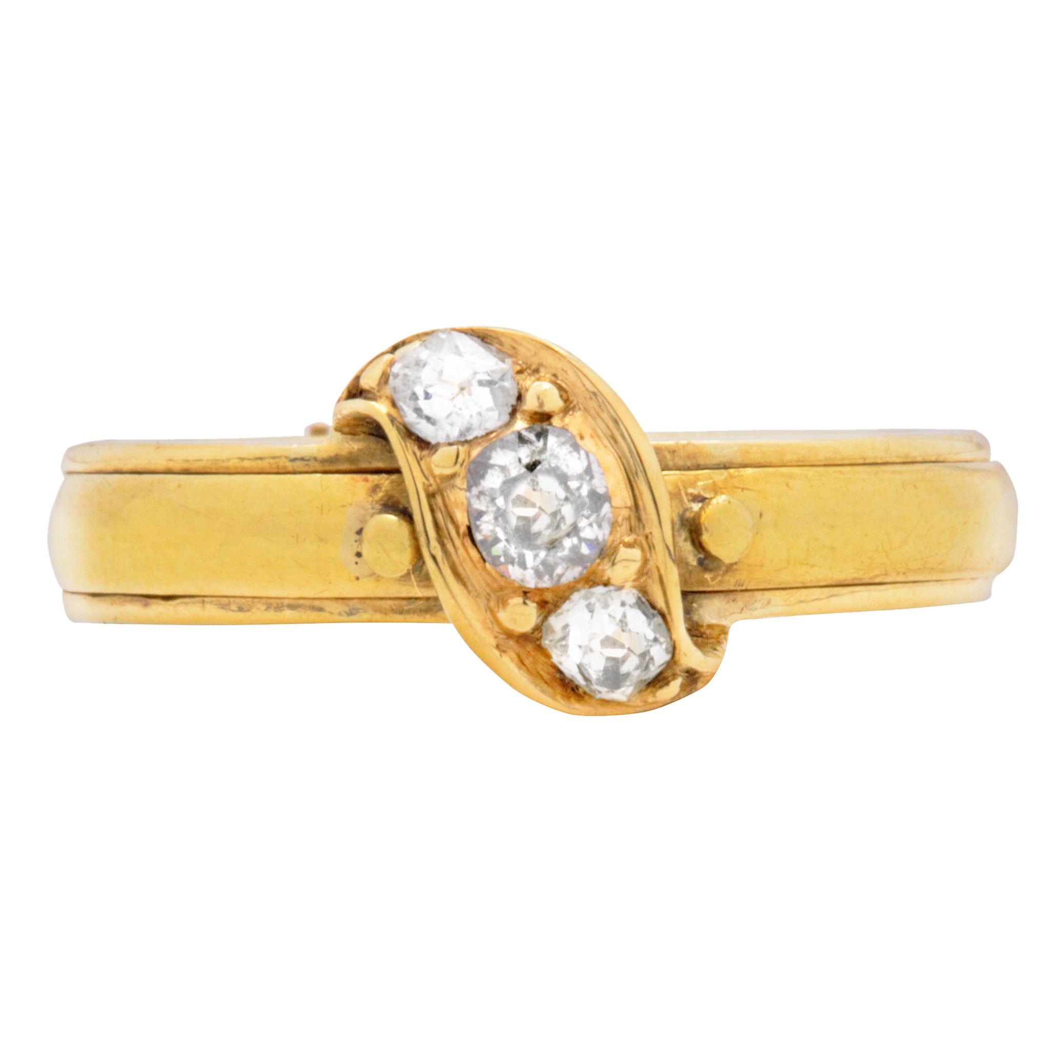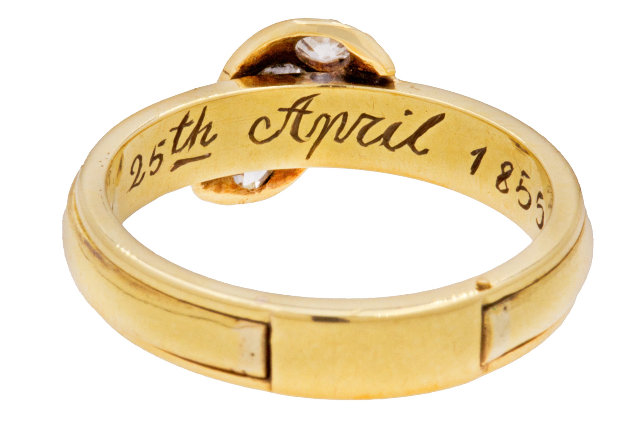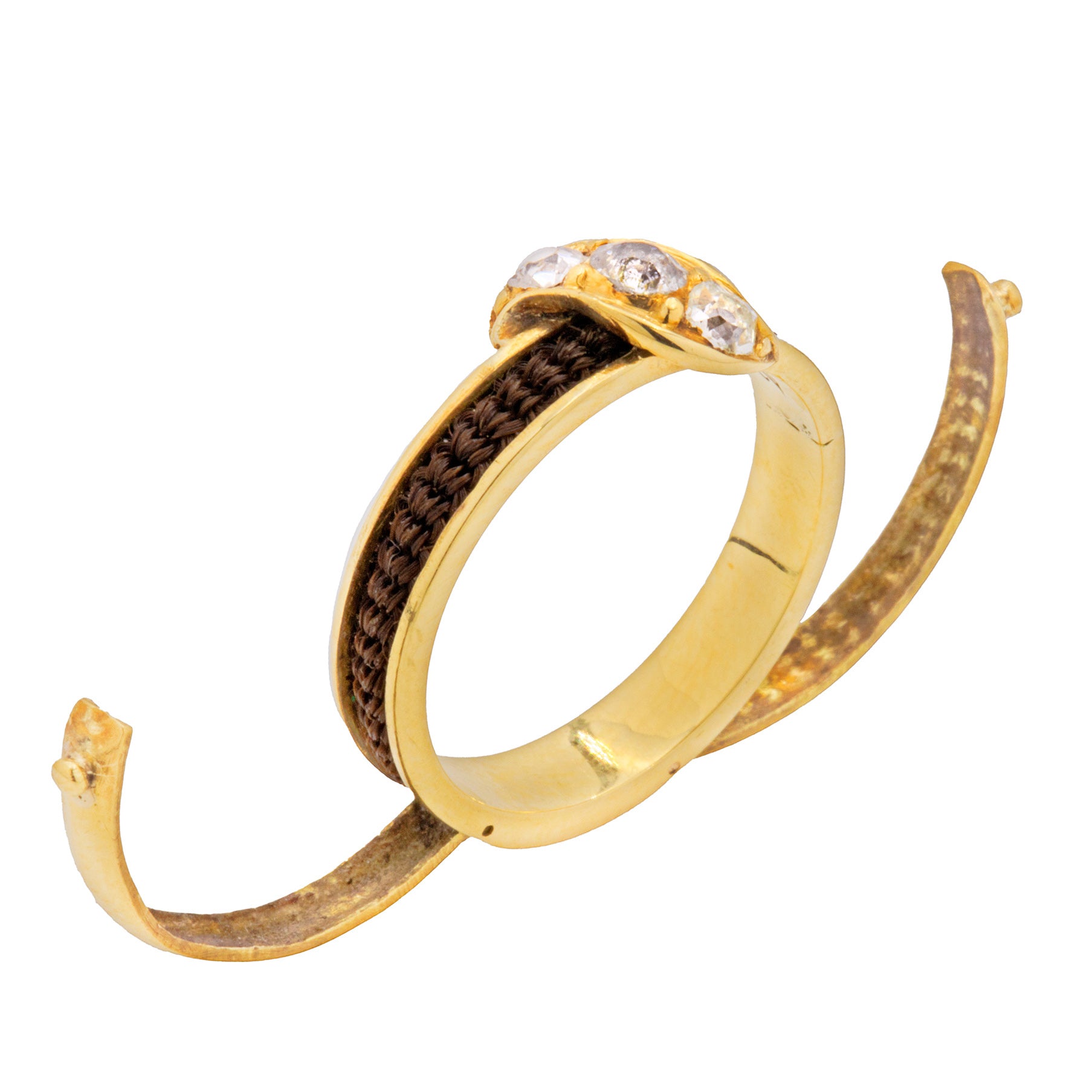 Bague de deuil victorienne en or 18 carats avec diamants, compartiments secrets