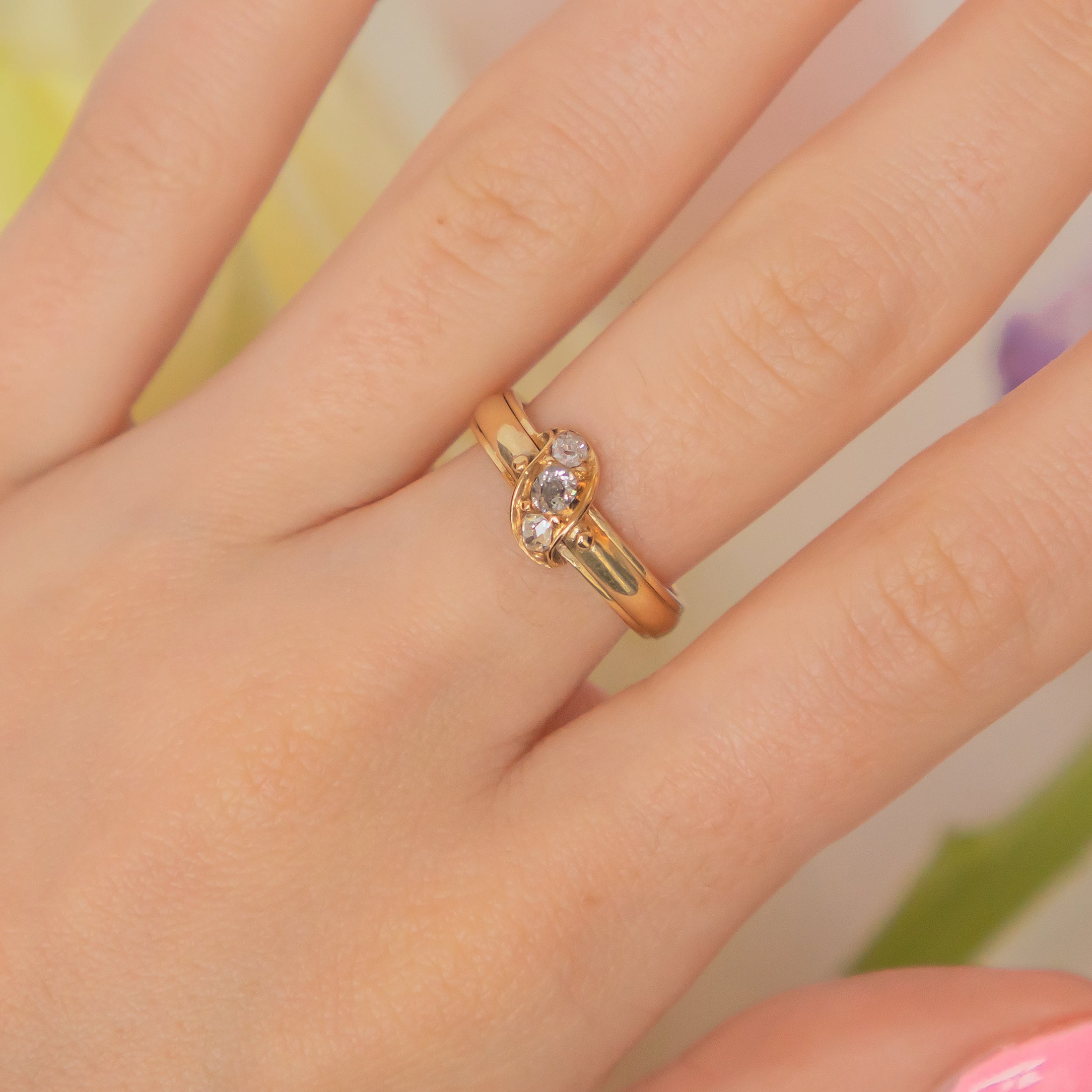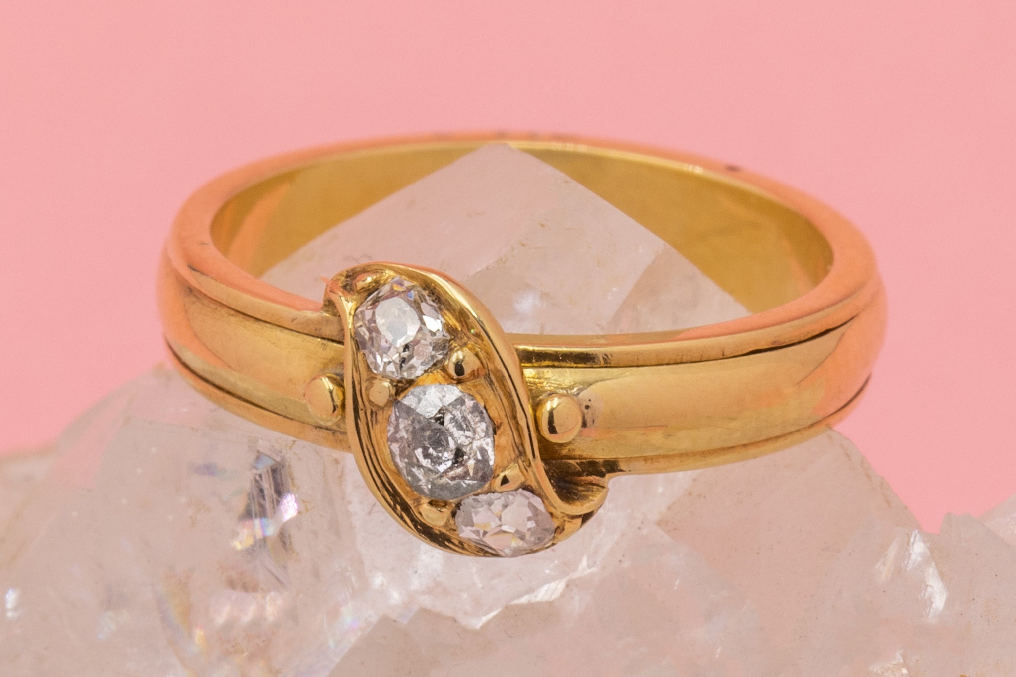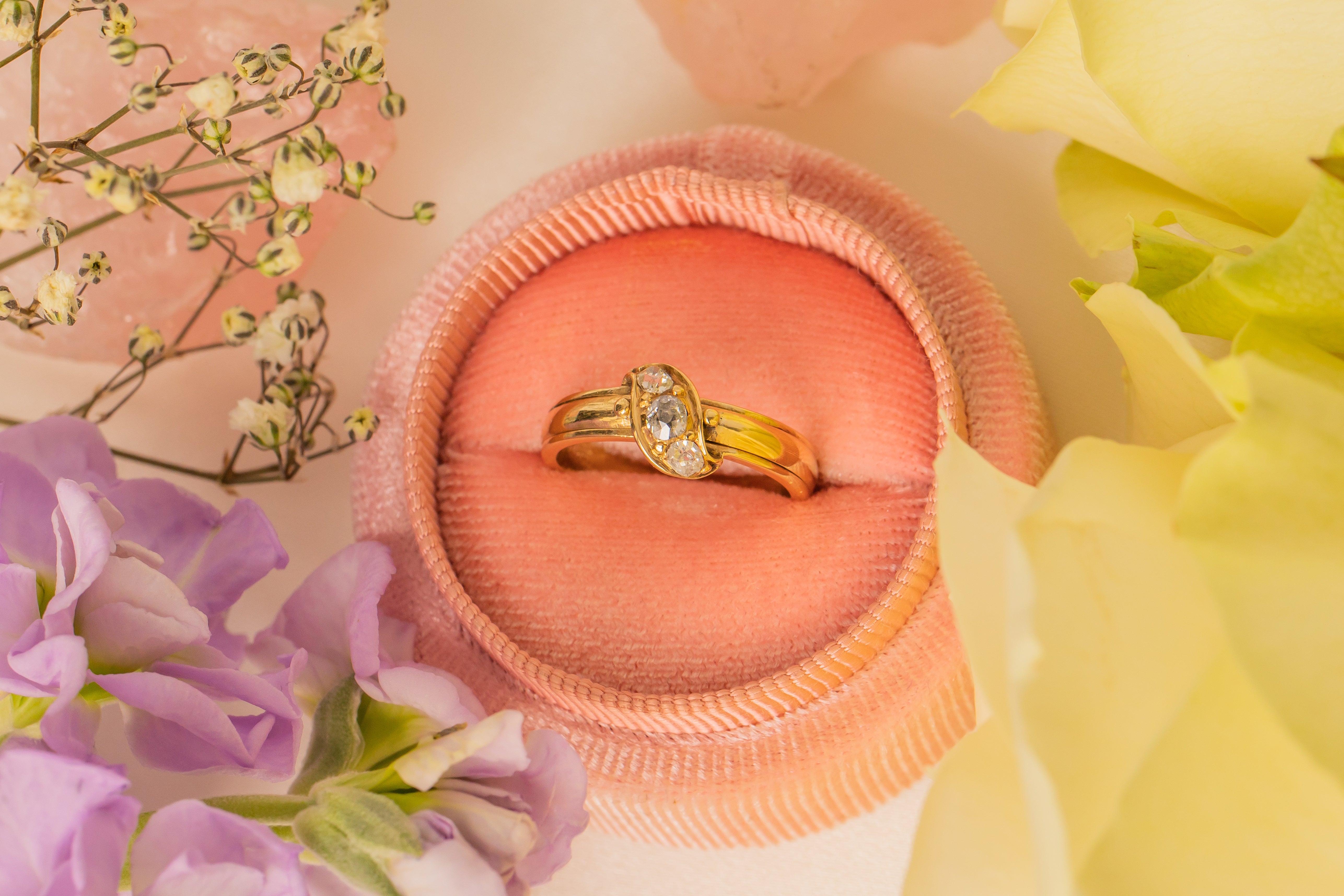 Bague de deuil victorienne en or 18 carats avec diamants, compartiments secrets