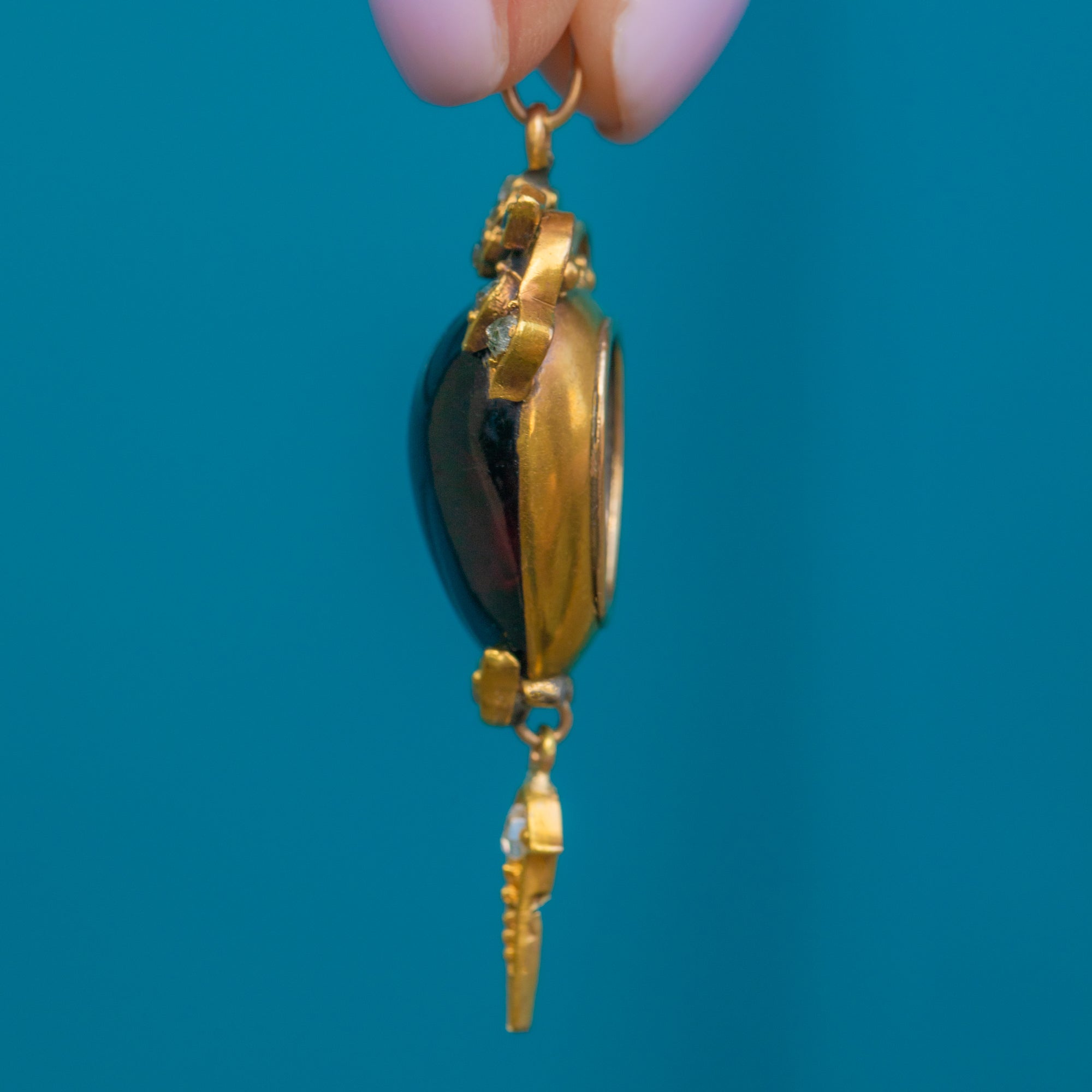 Victorian 18ct Gold Garnet Cabochon Diamond Pendant 17.00ct, Locket Back