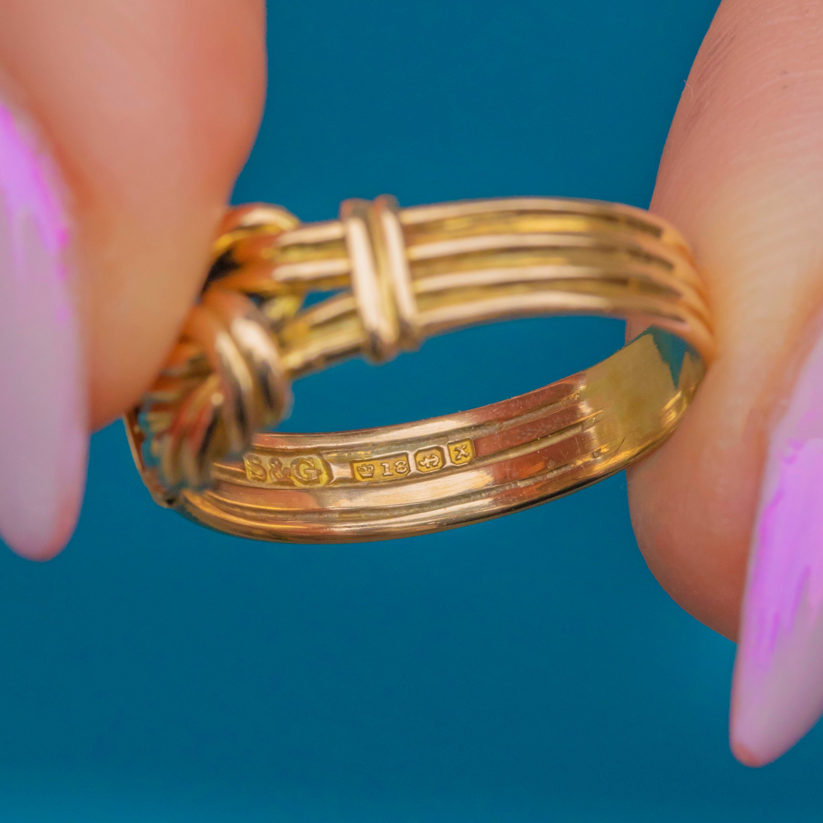 This elegant Victorian knot ring is crafted in rich 18ct Gold, symbolising eternal love and unity. The knot motif, timeless and romantic, is beautifully executed, with soft curves and a bright, buttery finish that glows with warmth and history.