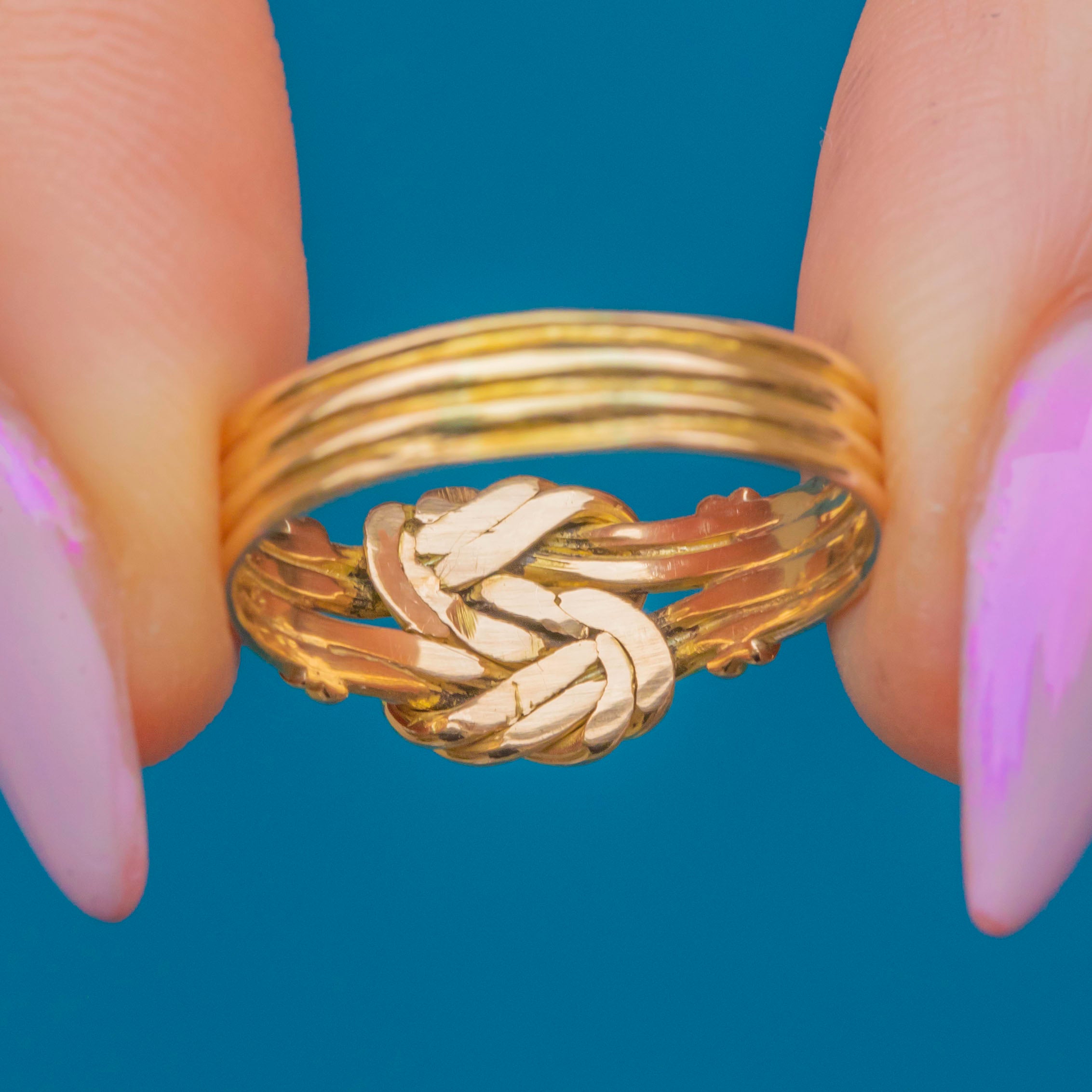 EXCELLENT: The Gold retains a beautiful antique patina with minimal surface wear. Hallmarks are clear and crisp. A superbly preserved Victorian knot ring full of symbolism and charm.