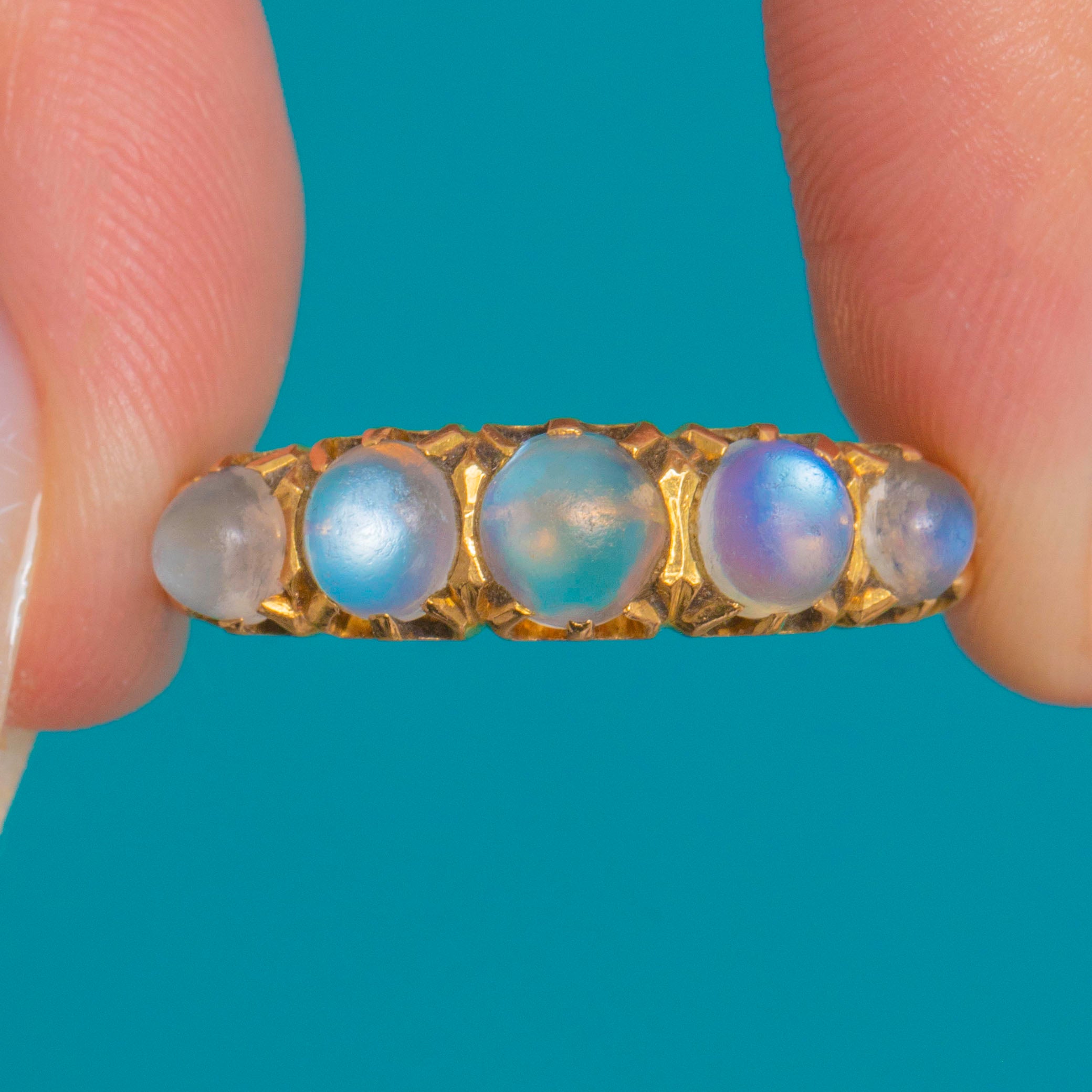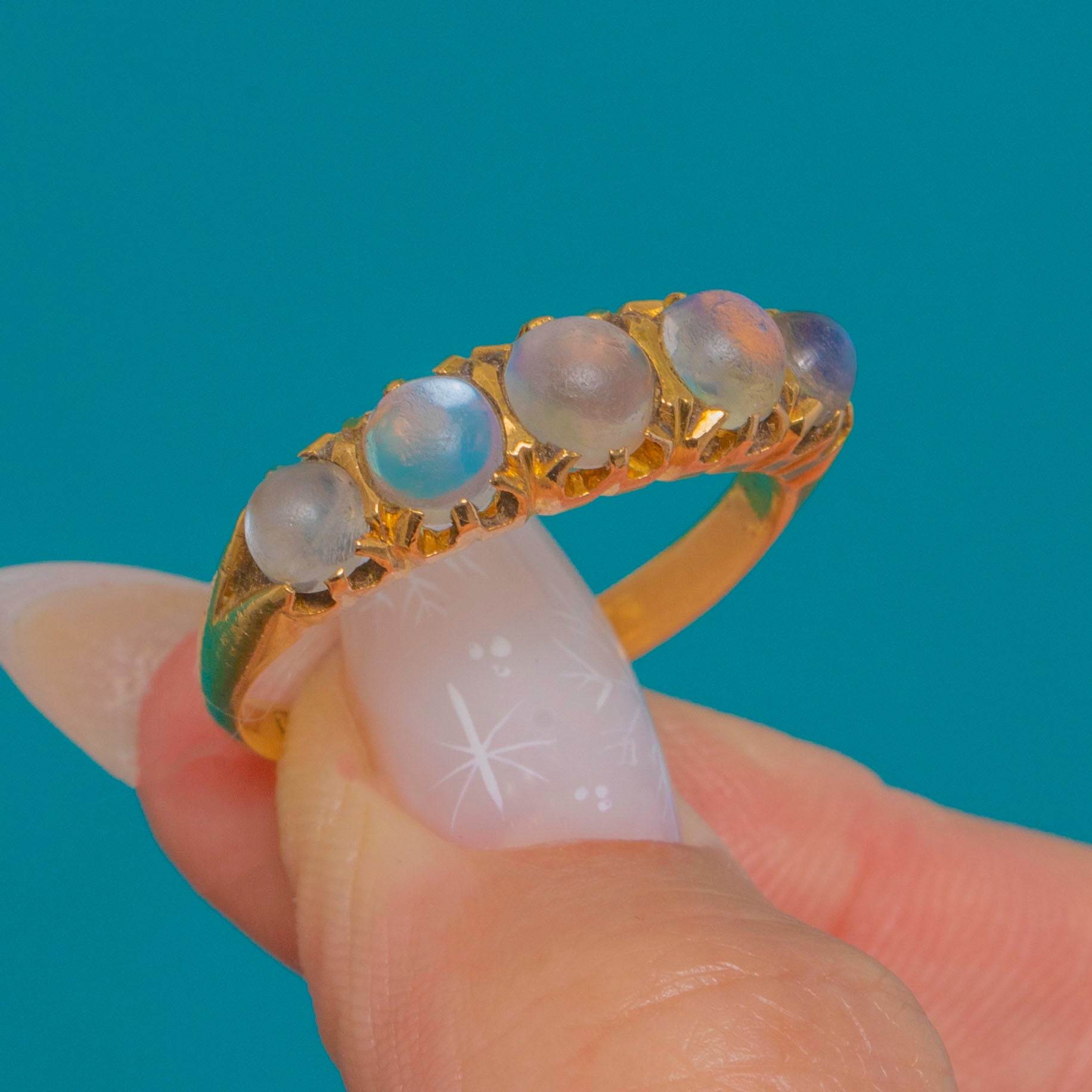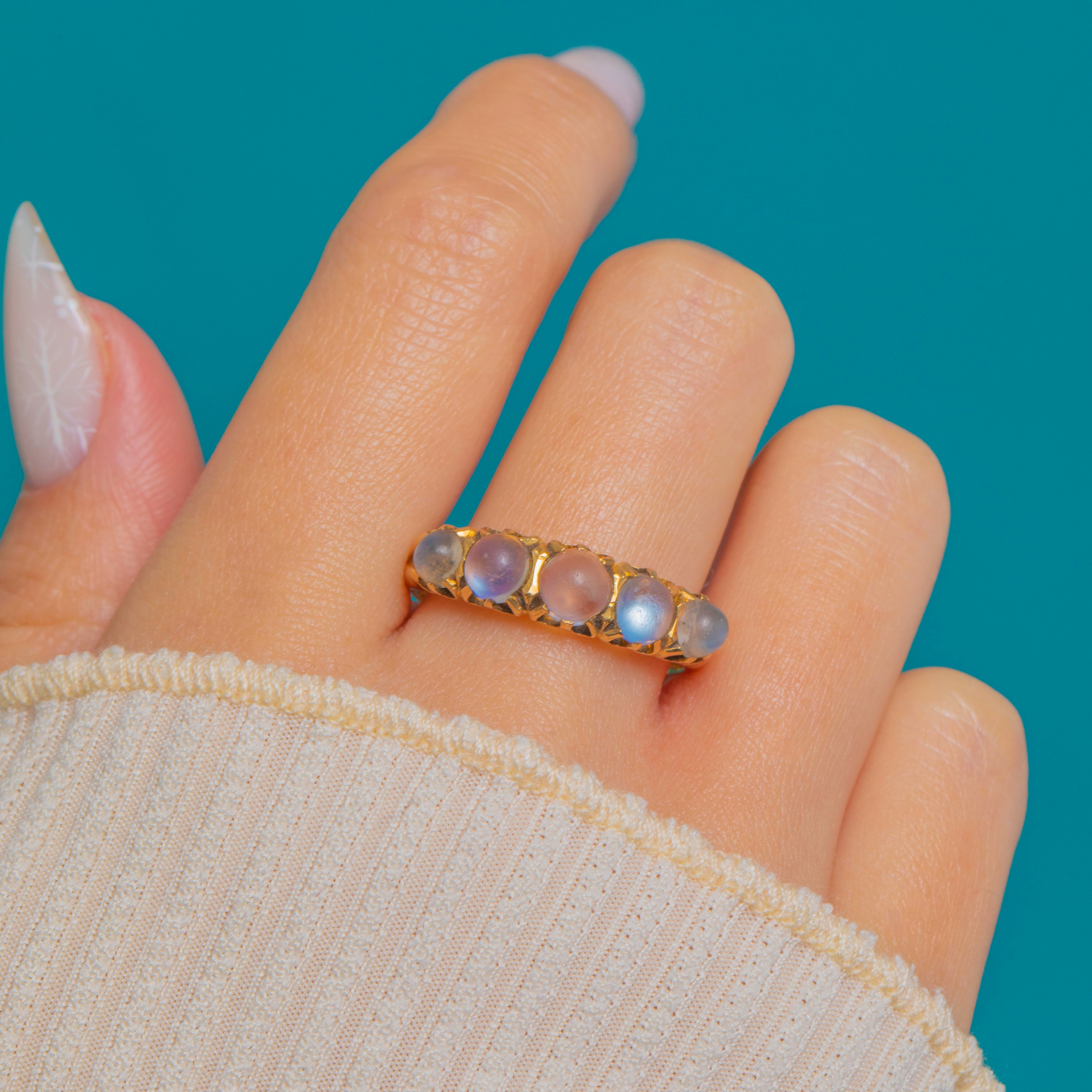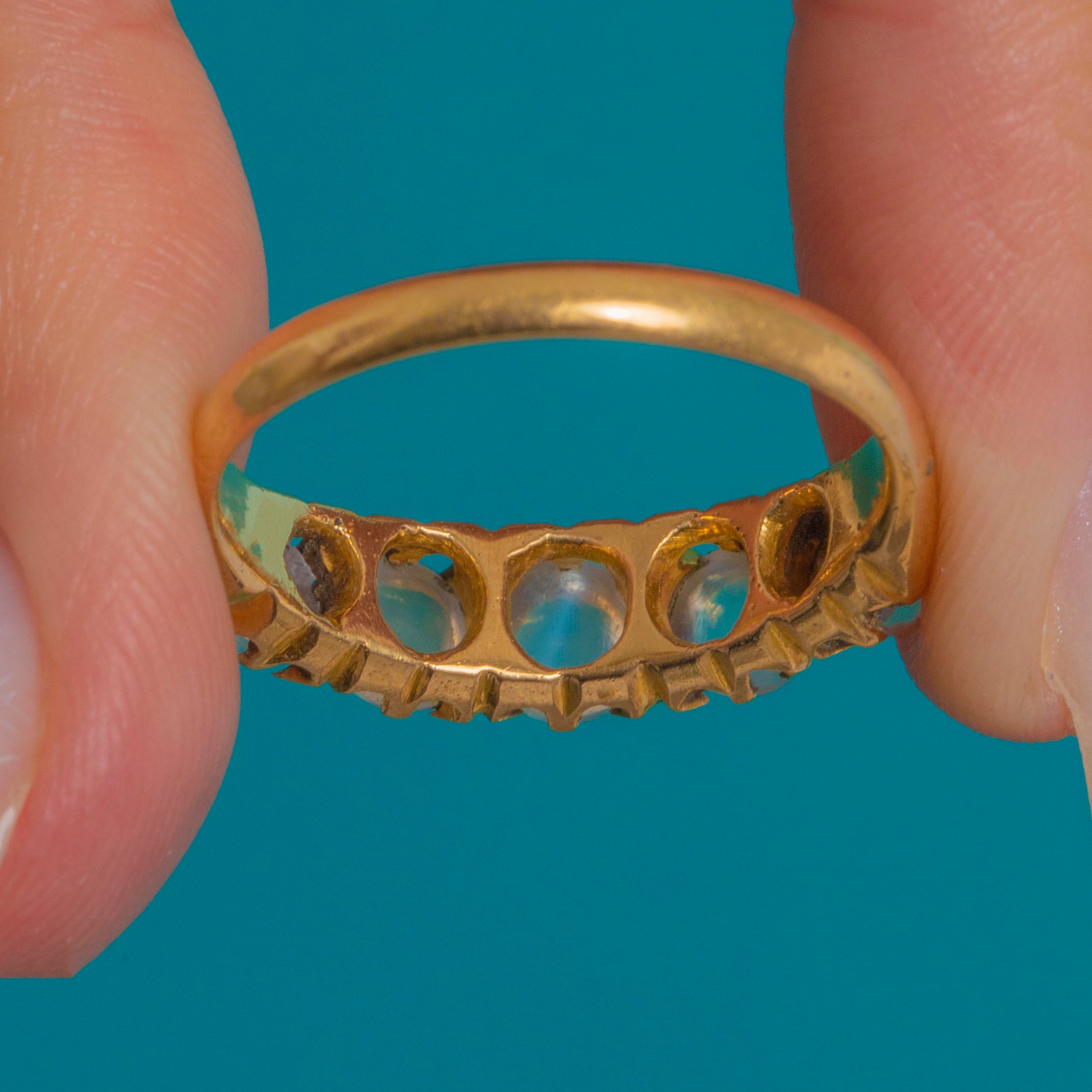 Victorian 18ct Gold Moonstone Cabochon Five-Stone Ring c.1899