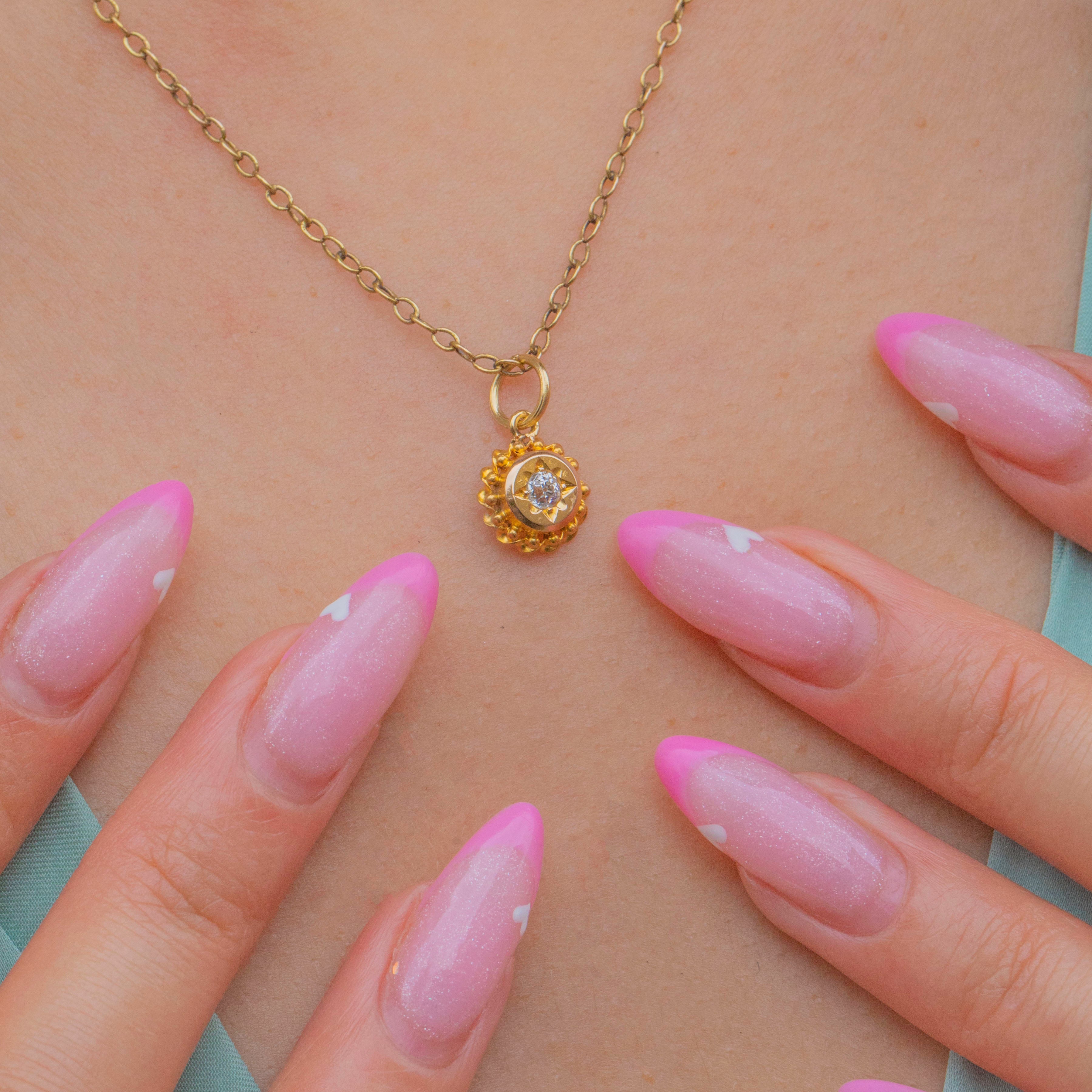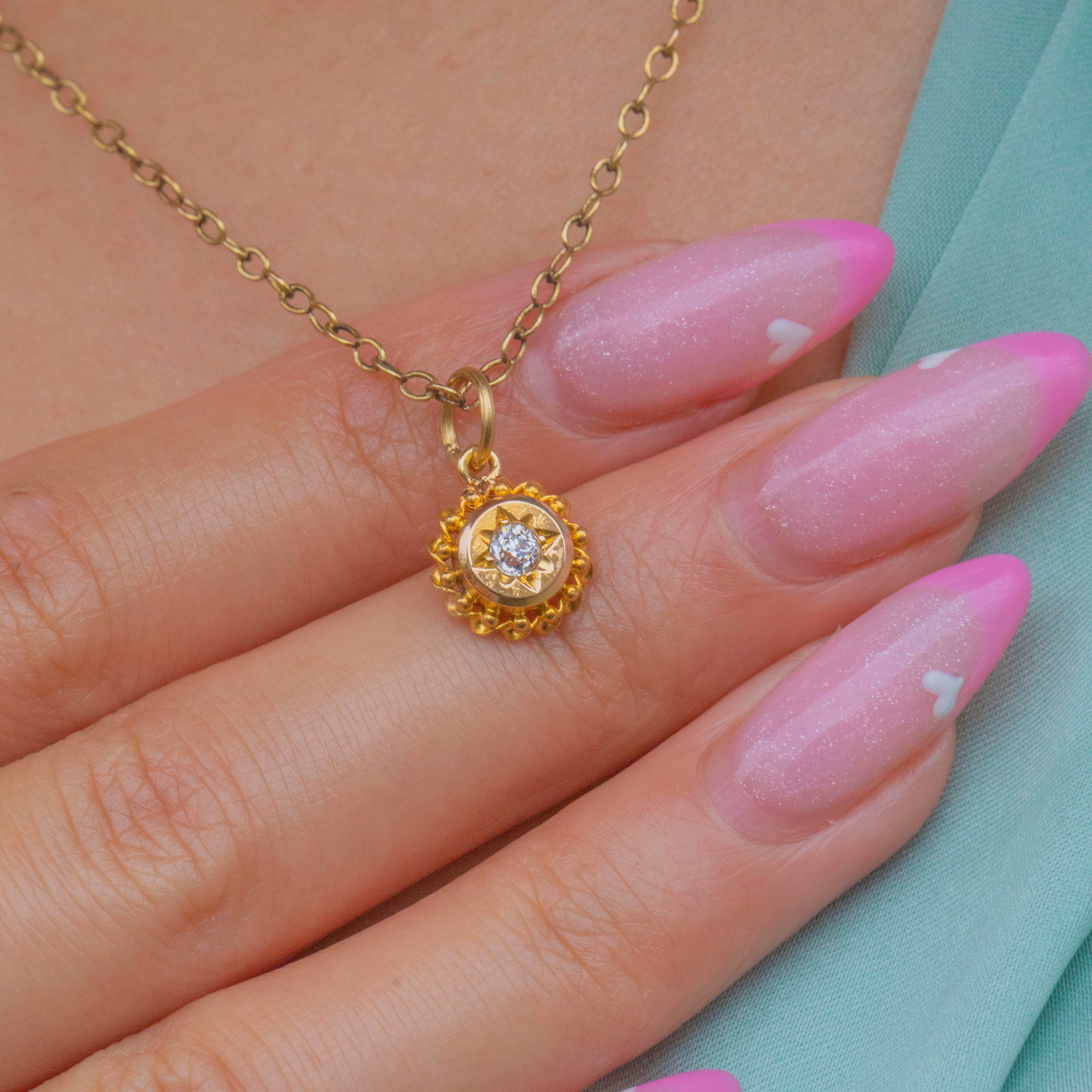 Petite yet full of character, this piece captures the antique fascination with ancient design and adds the perfect hint of sparkle for everyday wear or layering with other antique charms.