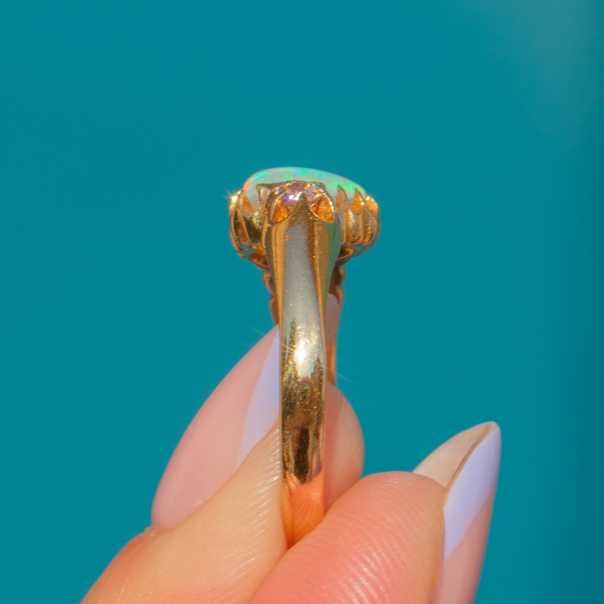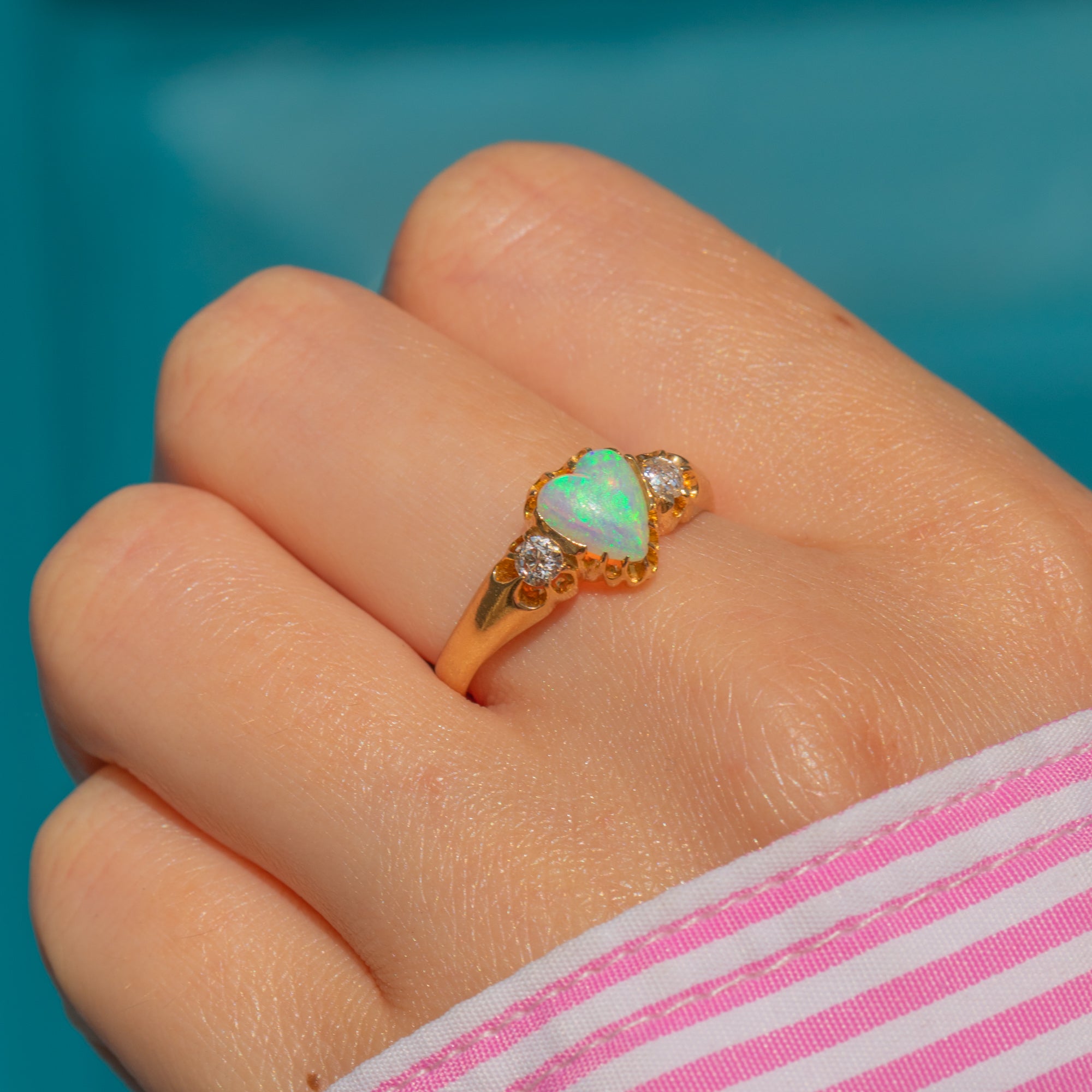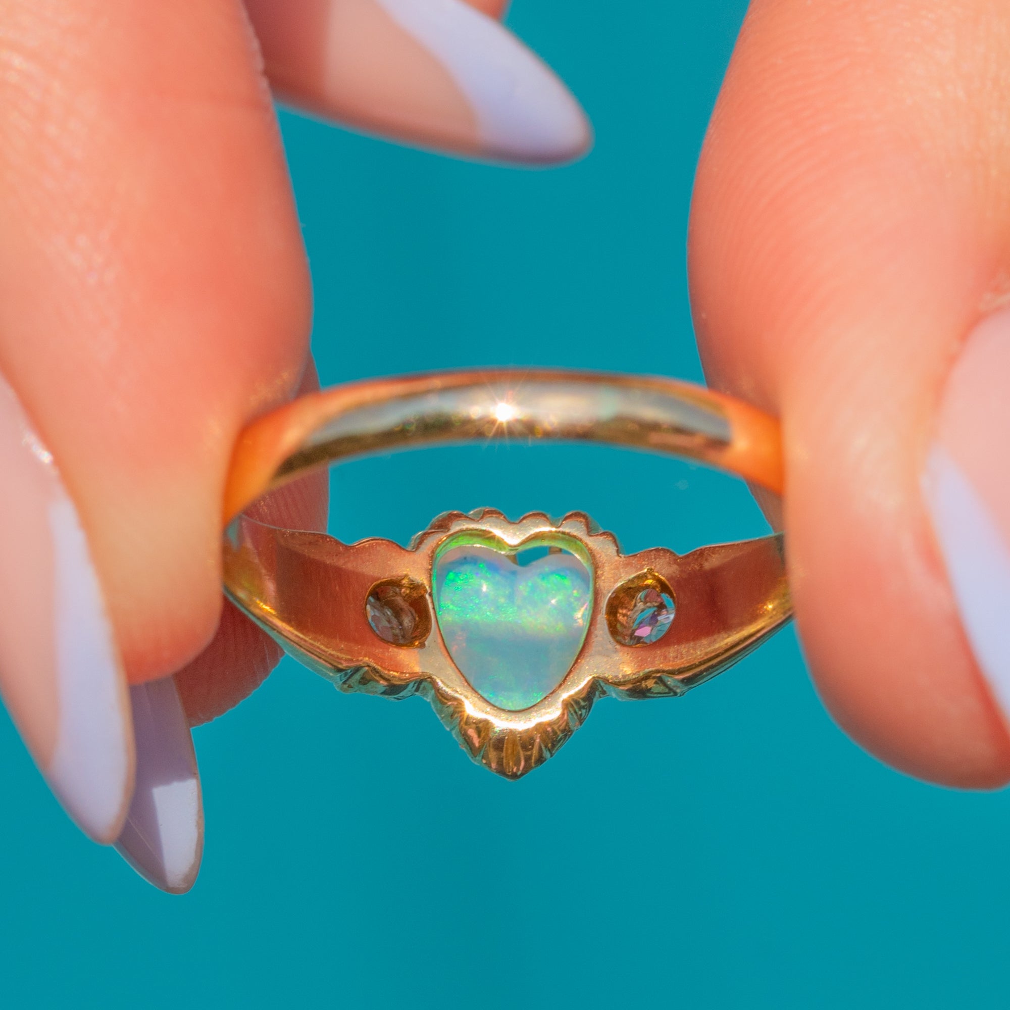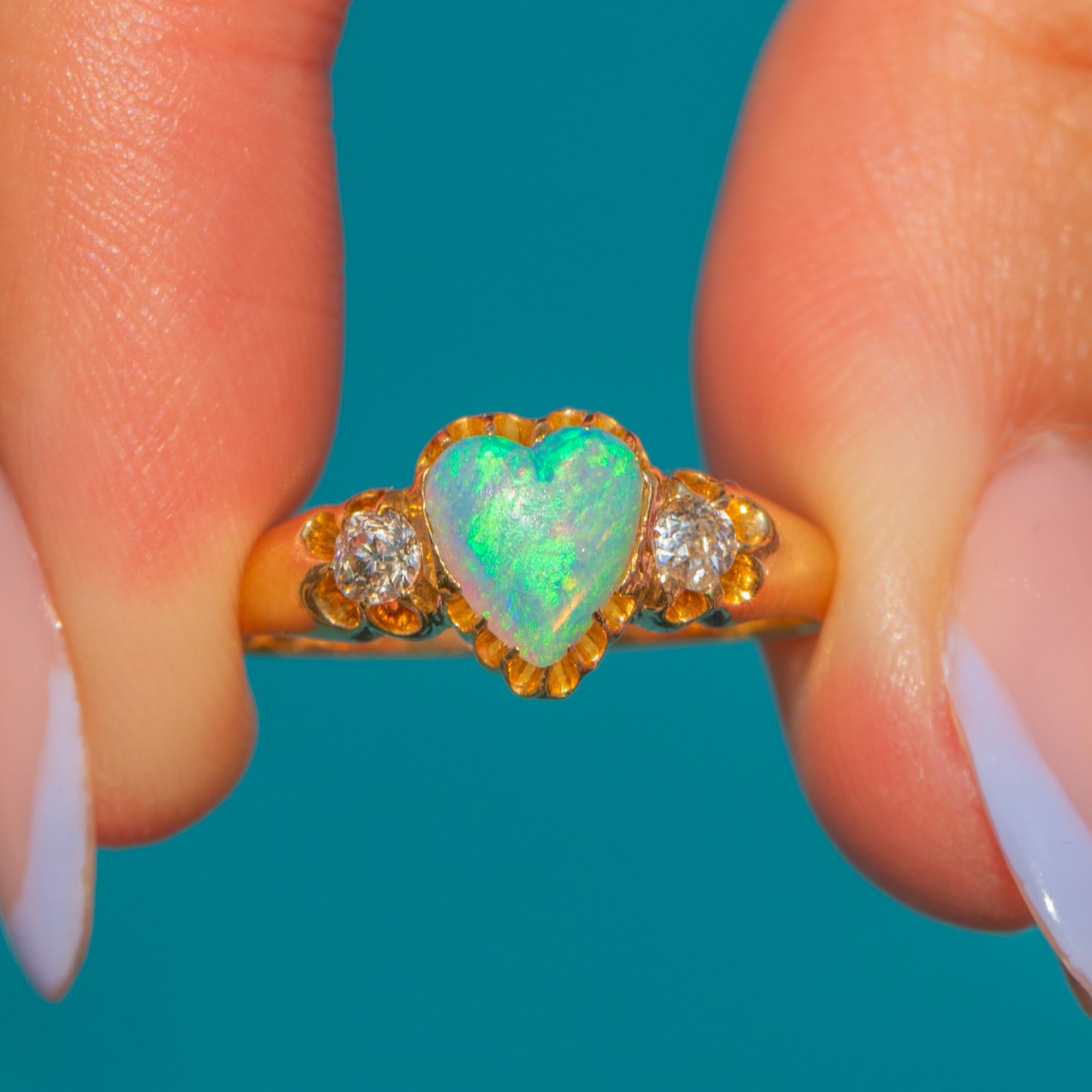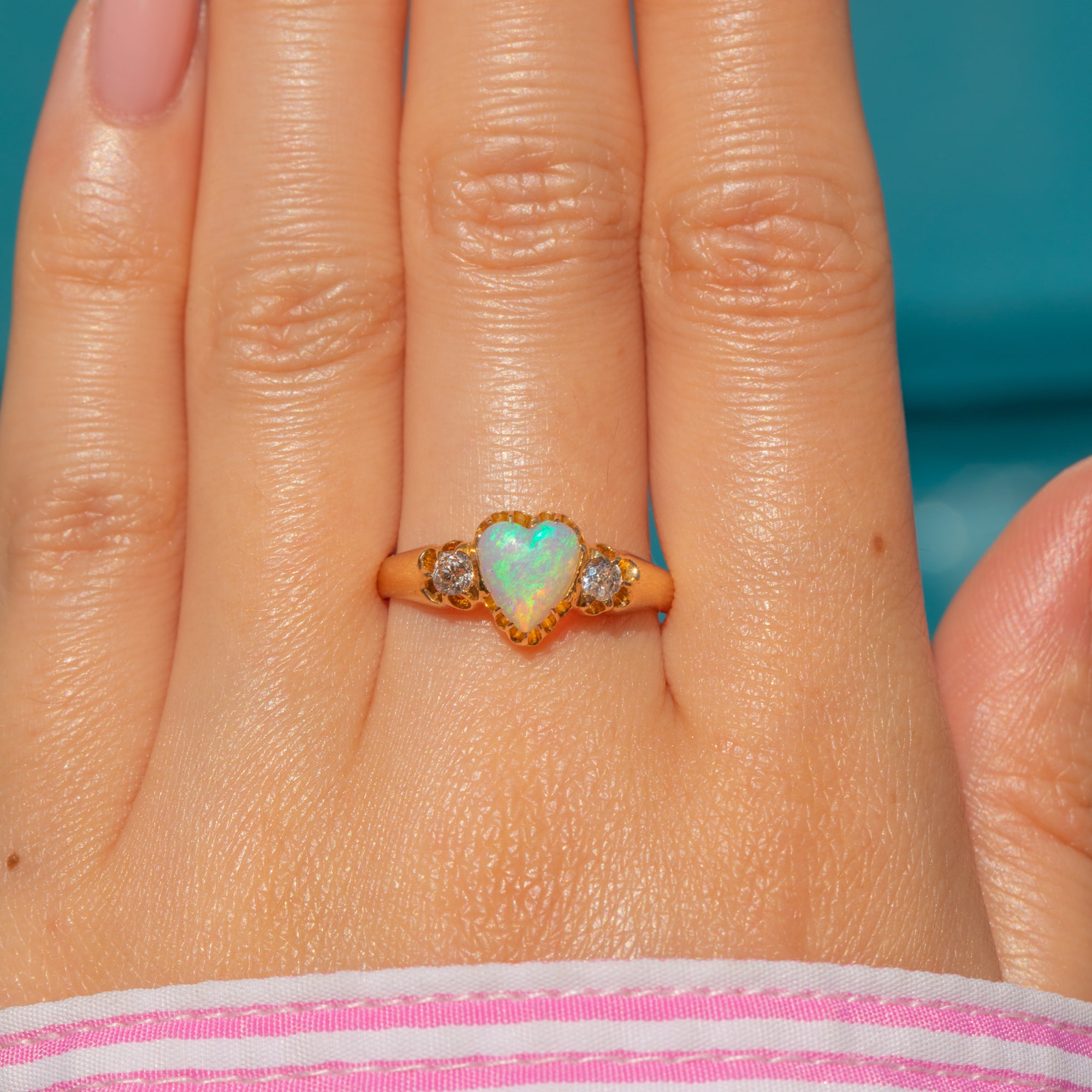 This cute Victorian 18ct Gold Opal heart Diamond ring deserves a prime spot in your antique jewellery collection!