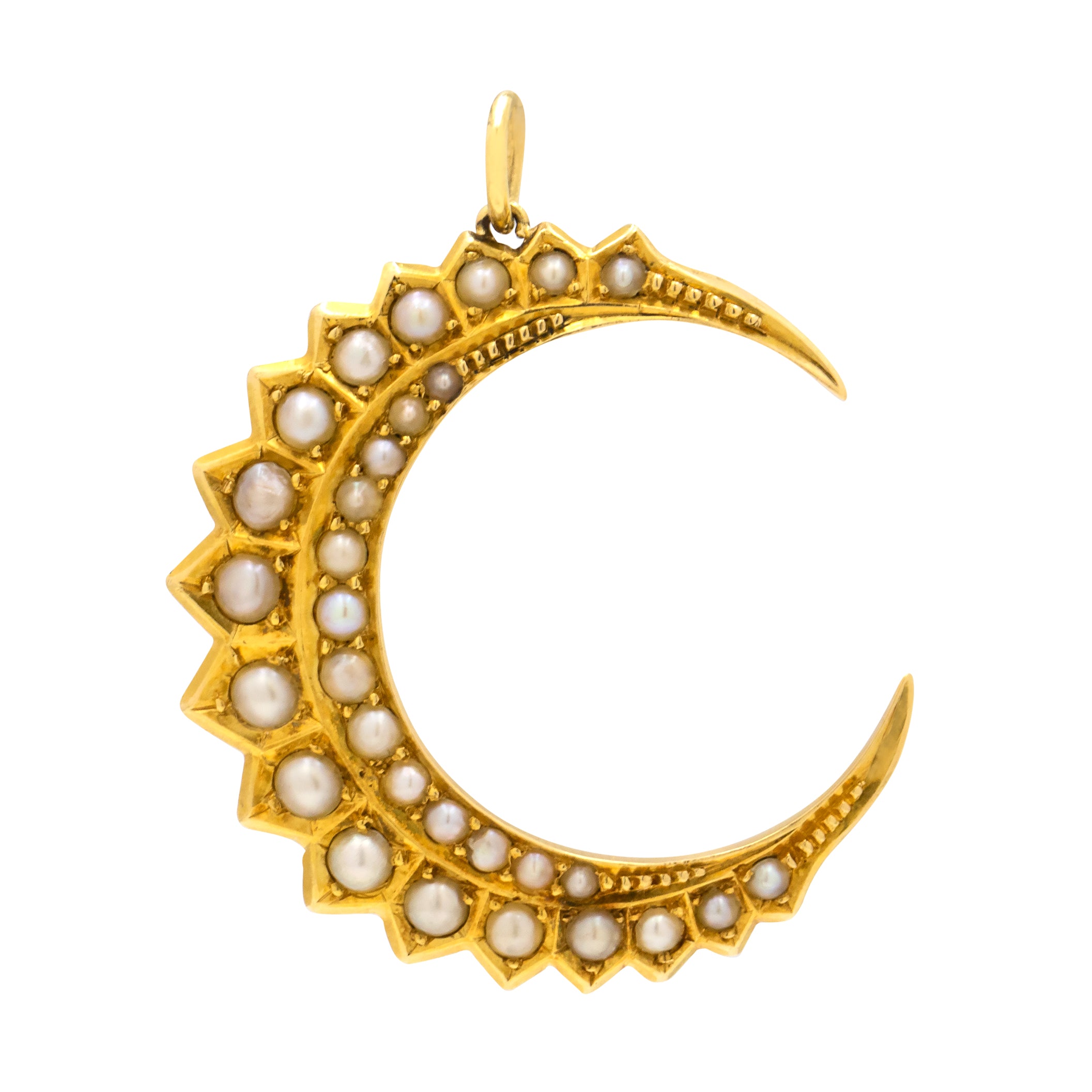 Victorian 18ct Gold Pearl Crescent Moon Pendant