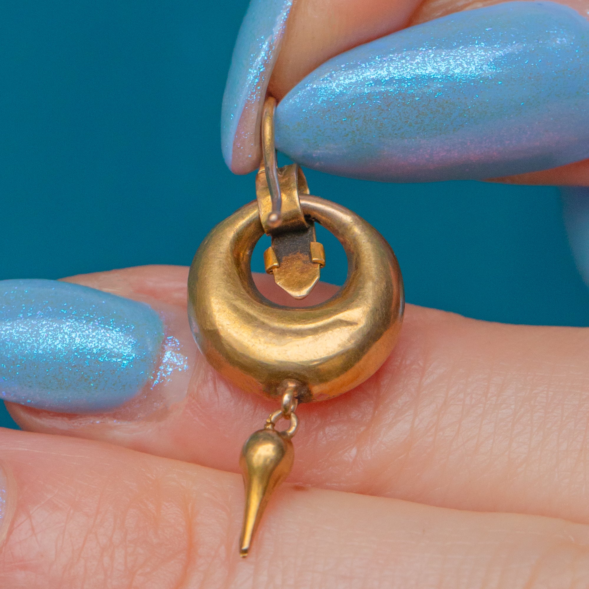 With a unique buckle motif and an articulated drop adorning each earring, these Gold hoops are bursting with character, while remaining lightweight for comfortable wear. Dancing with movement from your lobes, this Victorian duo will elevate an everyday outfit, making you feel chic and glamorous in an instant. We have never seen a pair of hoops packed with so much character!