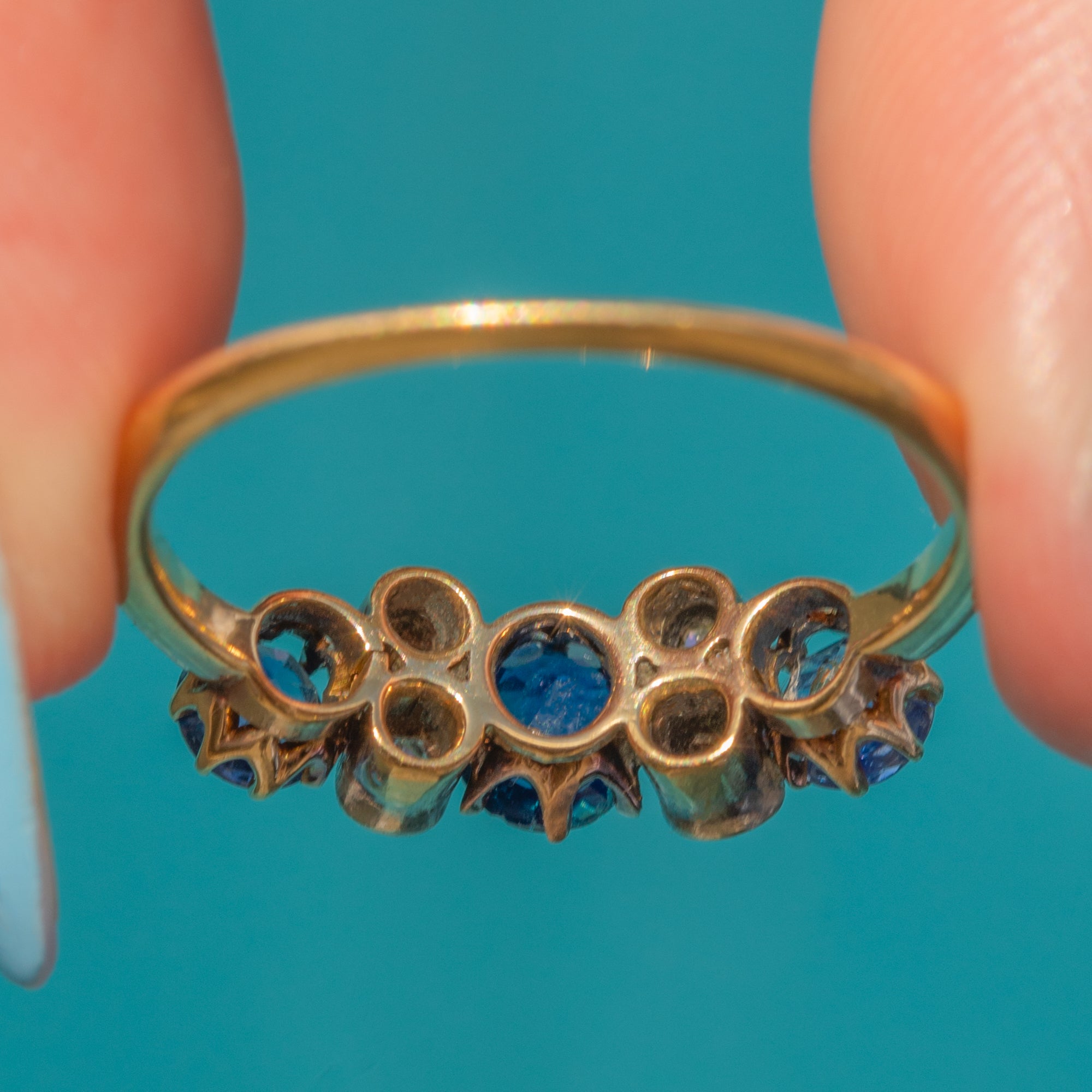 Victorian 18ct Gold Sapphire Diamond Seven Stone Ring